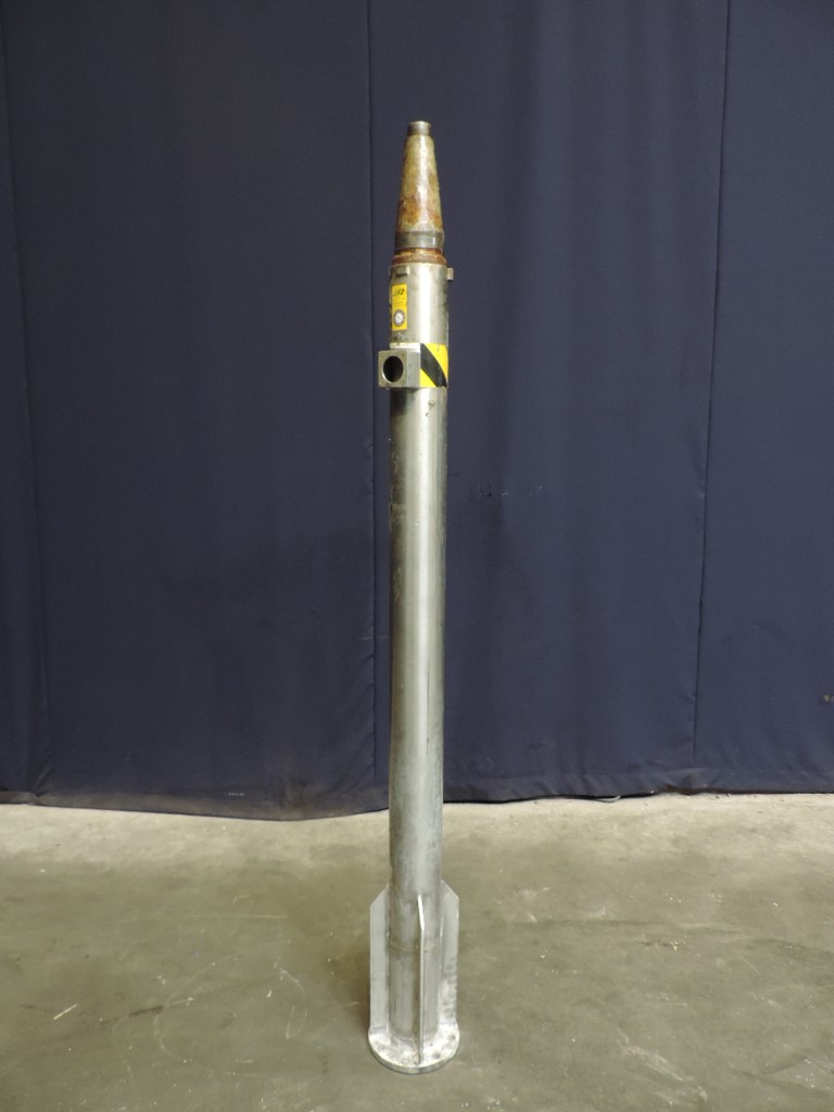 Stainless steel pole with swing arm and Demag hoist. Crane to lift out the bowl of a separator. Complete with baseframe. Lifting weight: 500 kg. Total dimensions: 200 x 160 x 360 cm.