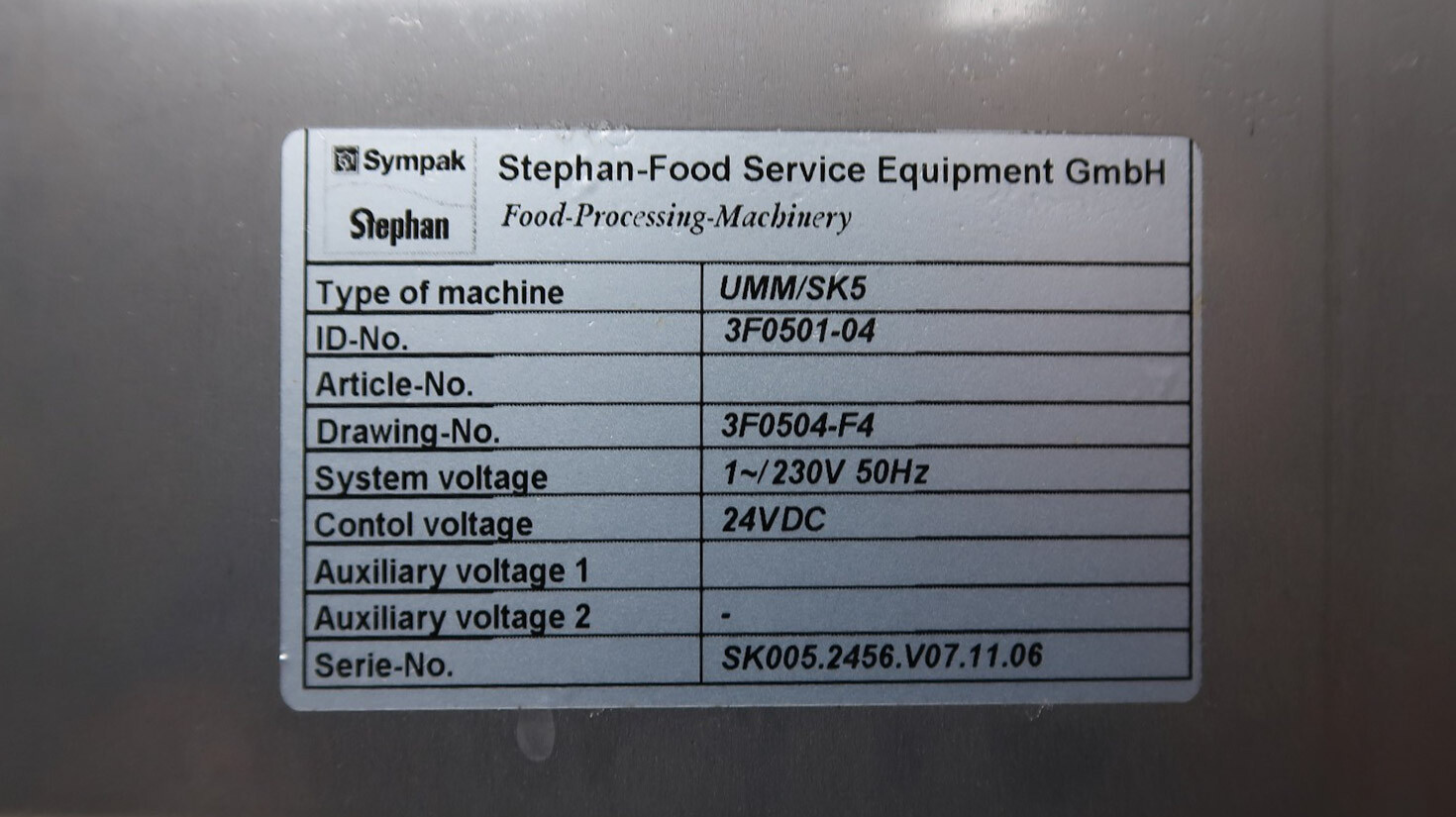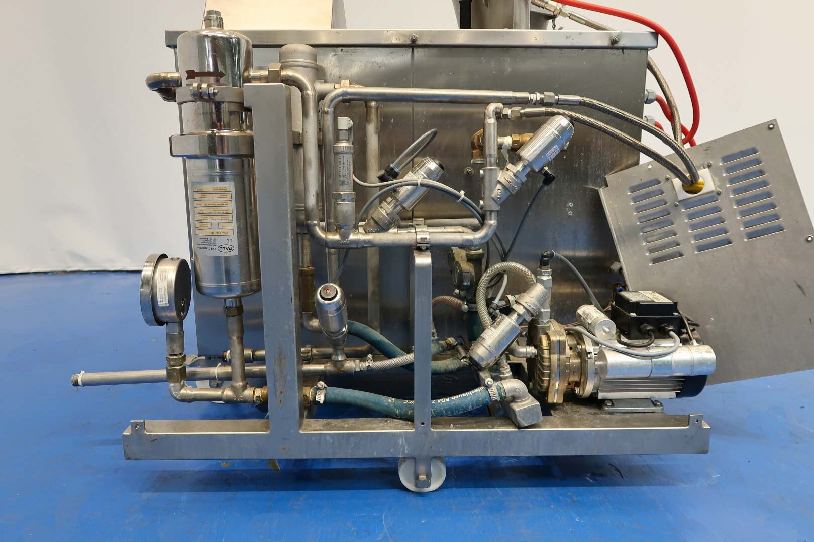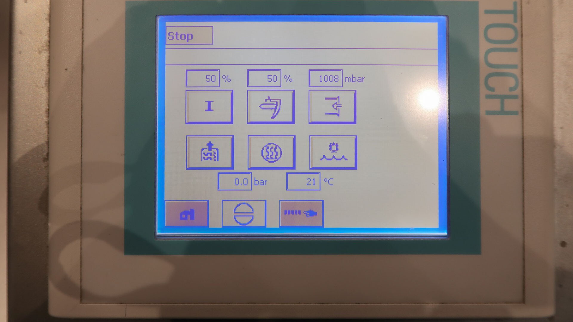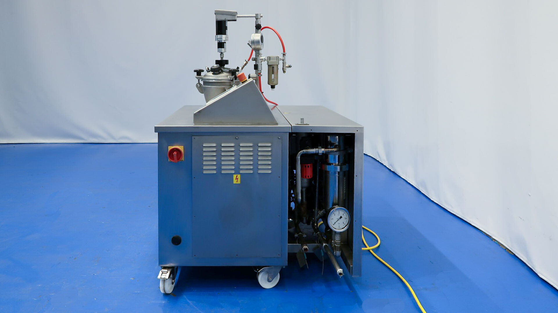 Laboratory-‘High Shear’maschine mit Vakuumsystem. Universelles Mischen, Kochen und Schneiden im Labormaßstab. Die Produktkammer ist doppelwandig und hat einen eingebauten Anschluss für die direkte Einspeisung von Dampf. Wässriges Dosiersystem mit Wasserzähler/Durchflusssender, Vakuumanschluss mit Trennbehälter und Entlüftungsventil. PT-100-Sensor in der Kammer. Der Deckel kann manuell abgenommen werden und hat 3 Klemmen zum manuellen Festziehen. Mit 2 Sichtscheiben im Deckel. 2 Rührwerke; 1 Rührwerk mit Schaber (3.000 – i. 45,56 - 66 U/min) und 1 Homogenisiermesser (0,74 A – 2,1 A - 1.400 U/min). Motortyp FK80L/40. Druck in der Kammer Vakuum -1,0 bis + 0,8 bar, Druck mantel 0,8 Bar. Max. Temperatur: 110 °C. Inklusive Flüssigkeitsring-Vakuumpumpe und Dampffilter. Mit einigen Ersatzteilen. Steuerung: Siemens Simatic S7-300 mit betrieblichem Touchscreen an der Maschine. Dokumentation in Niederländisch verfügbar.