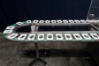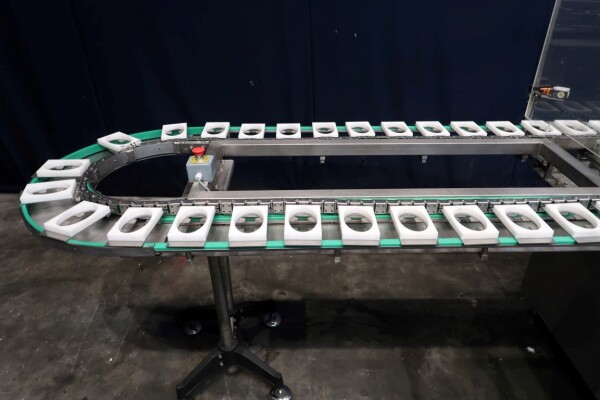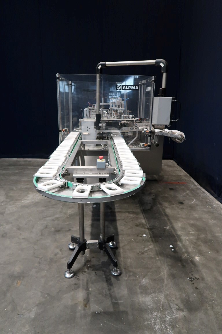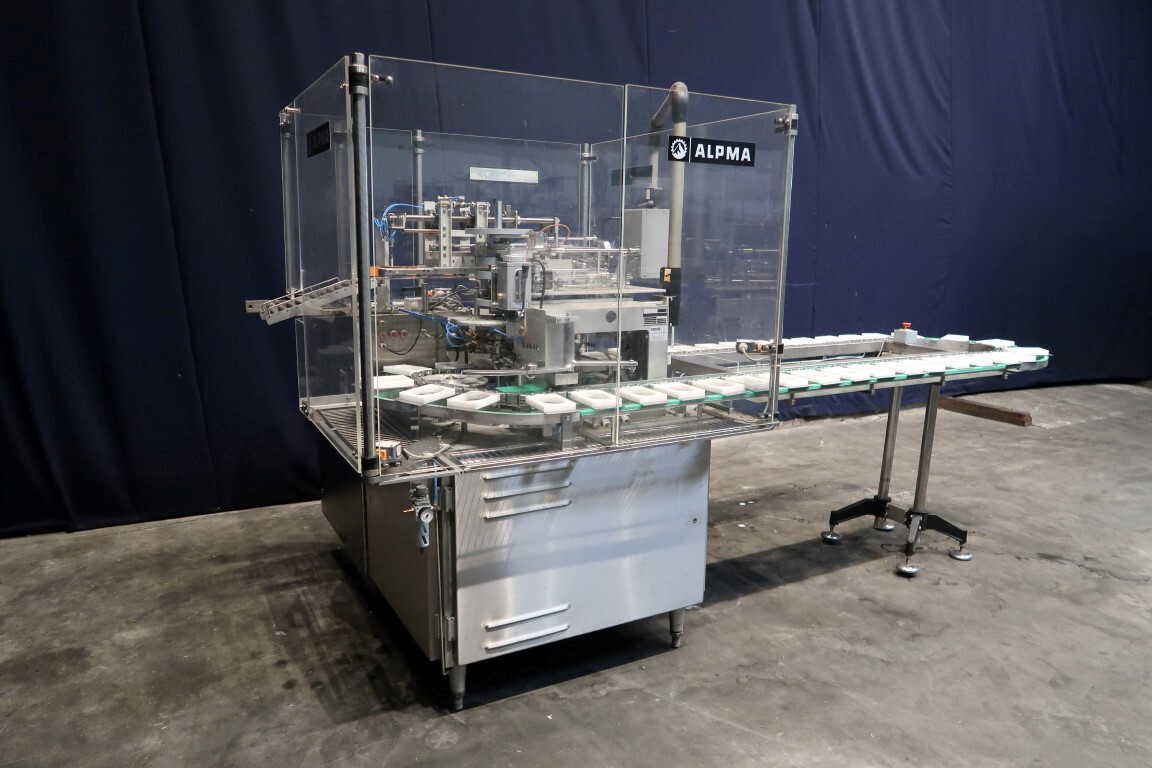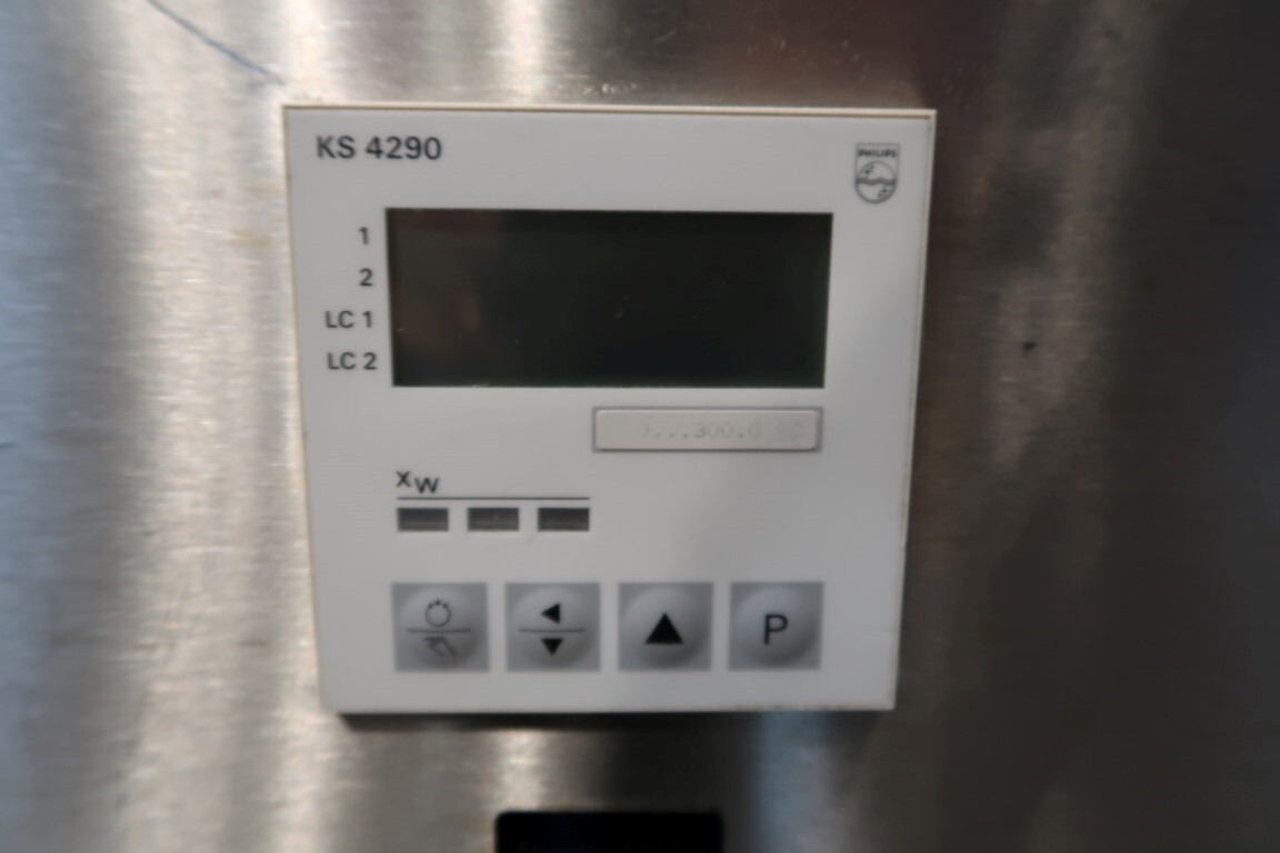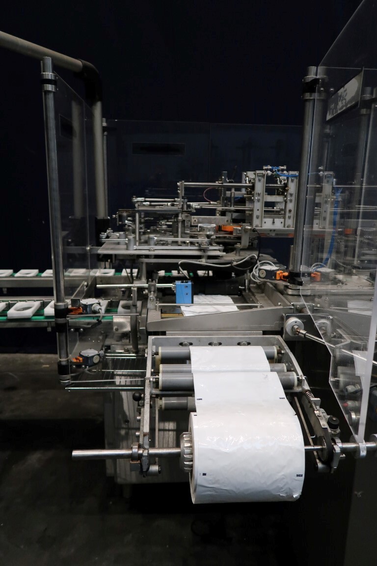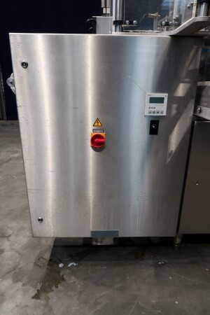 Automatische Folienwickelmaschine für ovale Produkte, geeignet für Käse (Limburger Cammembert, Romadur und Ofengold), aber auch für Seife und ähnliche Produkte. Verpackungsmaterial von einer Rolle wie PE-Folie, Zellglas oder Papier. Inklusive Zuführband. Bedienfeld mit Siemens S5 SPS. Aktuelle Größe oval: 125x75x25mm. Gewicht pro Käse: ca. 260gr. Foliengröße pro Packung: 210x210mm mit Fotozelle zur Druckzentrierung. Inklusive Schaltplan und Dokumentation. Video des Testlaufs verfügbar.