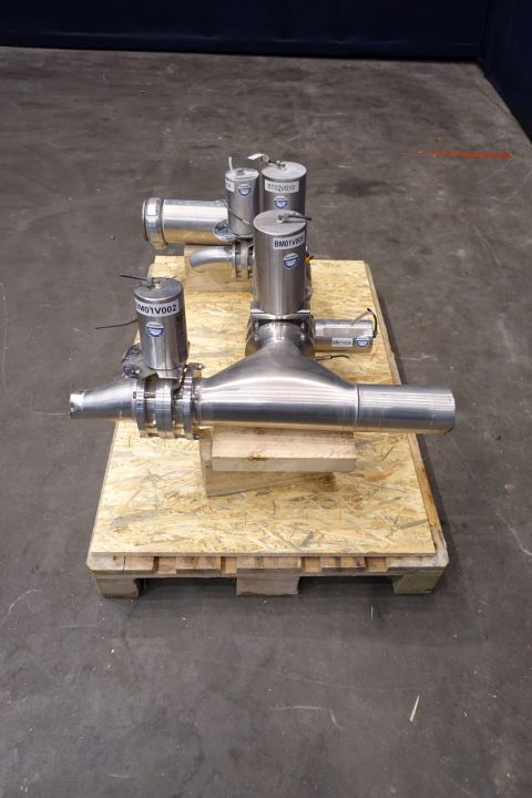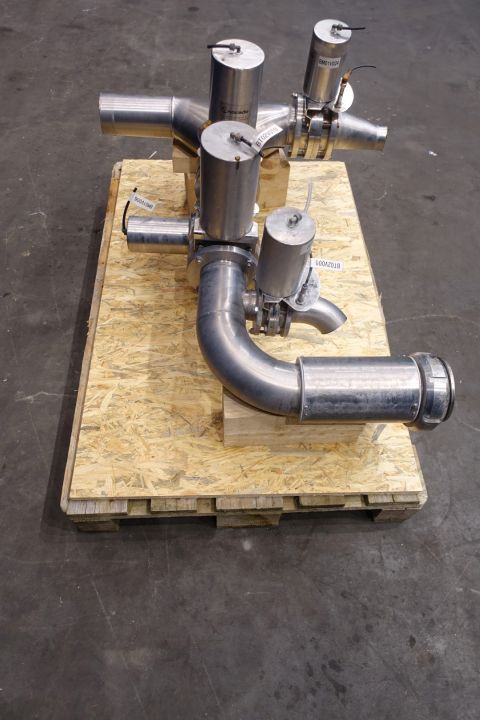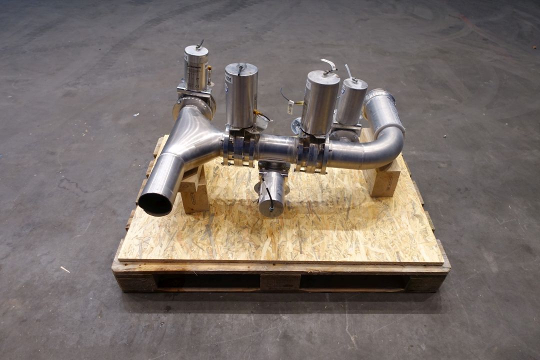 1x Trouser piece, 100 mm. 5x pneumatic valves, 3x DN100 + 2x DN65. Outlet 1x DN100 SMS.