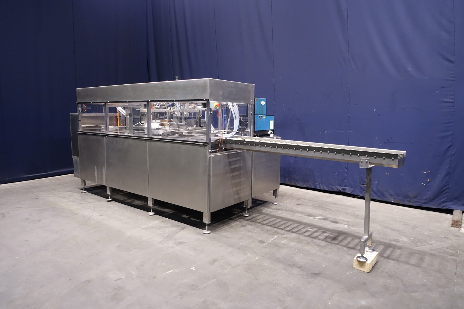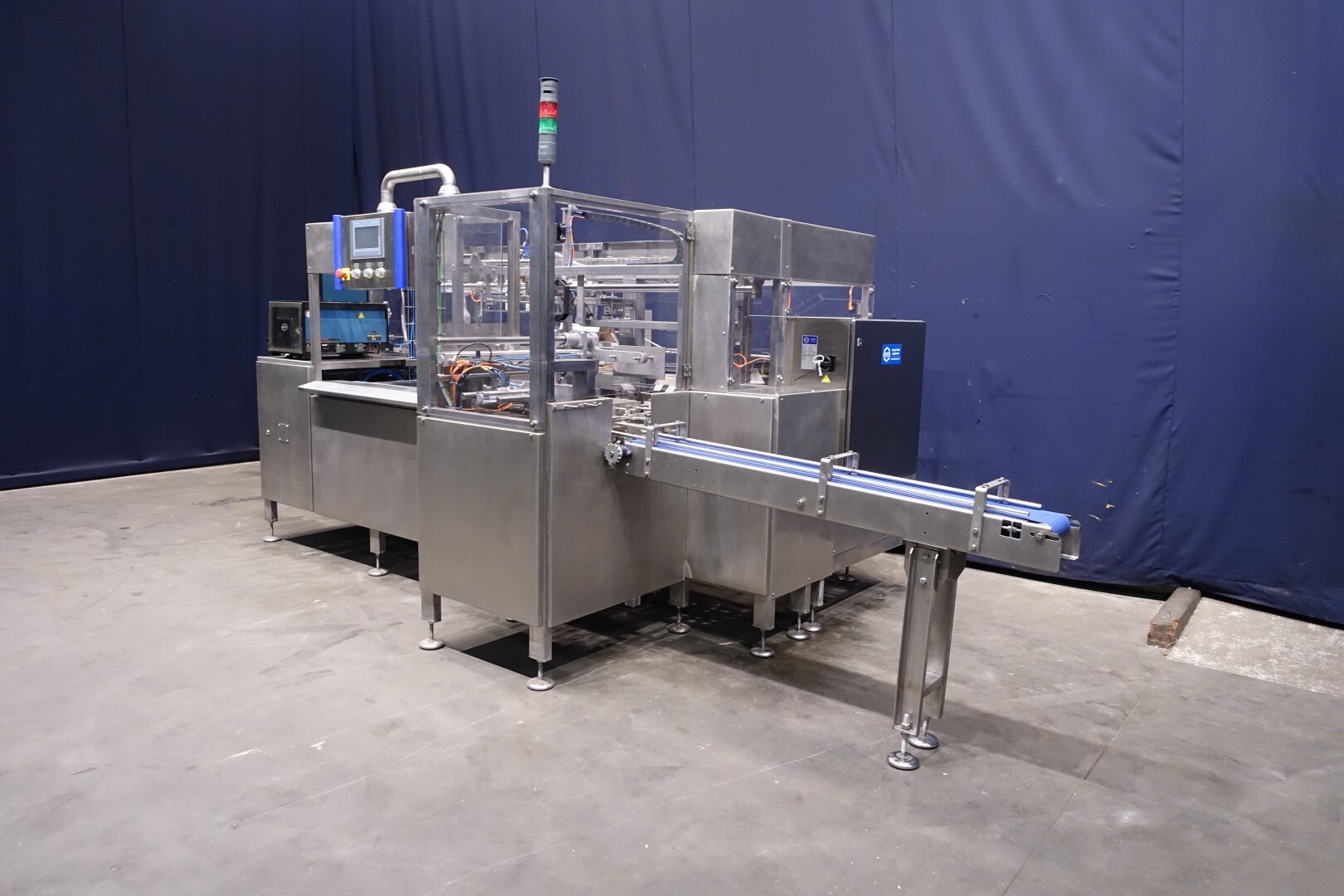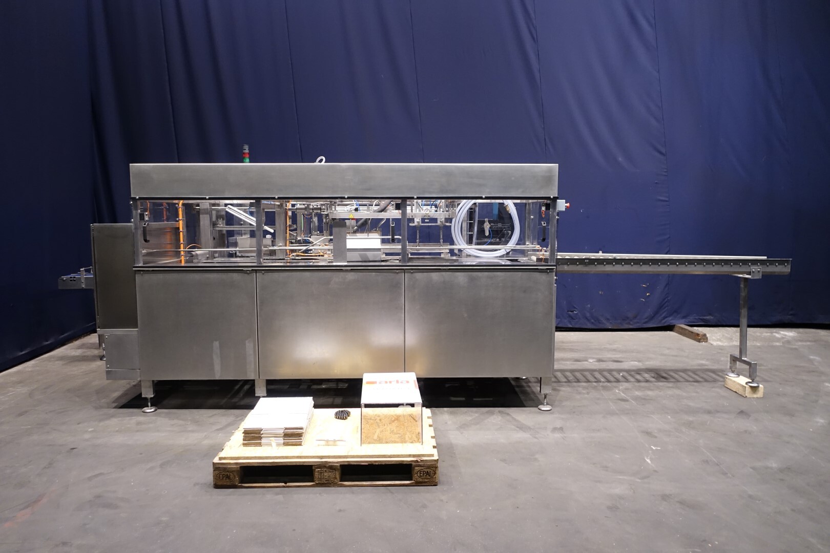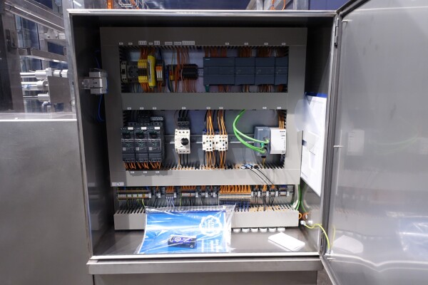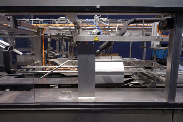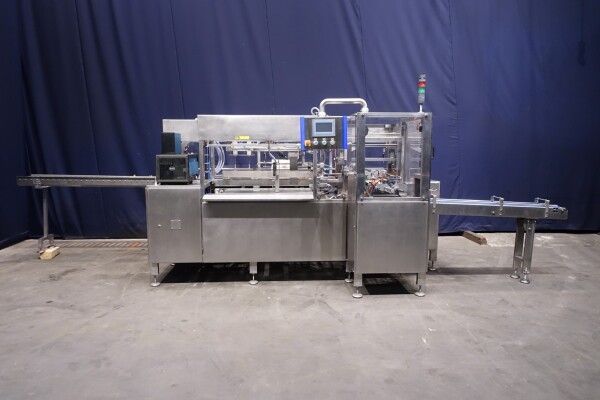 Automatischer Sammelpacker. Vollständig überholt. Derzeit eingestellt für 250 gr Butter-packungen von 100 x 75 x 37 mm, Verpackungsschema 4x2x3 = 24 Packungen von 250 gr in einem Karton (6 kg pro Karton). Kartonart: Amerikanische Faltschachtel. Neues Bedienfeld mit neuer Siemens S7-1200 SPS und Siemens Simatic HMI, KTP700. Generalüberholtes Nordson Hotmelt-Gerät mit Leimschläuchen. Maschinengestell komplett Edelstahl. Neue Türen aus Polycarbonat mit Schutz zum Öffnen. Einschließlich Einlauf- und Auslaufrollenbahn. Bedienungsanleitung (Niederländisch), Ersatzteilhandbuch und Elektro-schema verfügbar. Maschine mit CE-Konformitätserklärung. Maschinengeschwindigkeit synchronisiert mit einem Butterpacker Benhil 8345 oder Benhil 8380 (bis zu 80 Packungen / Minute)