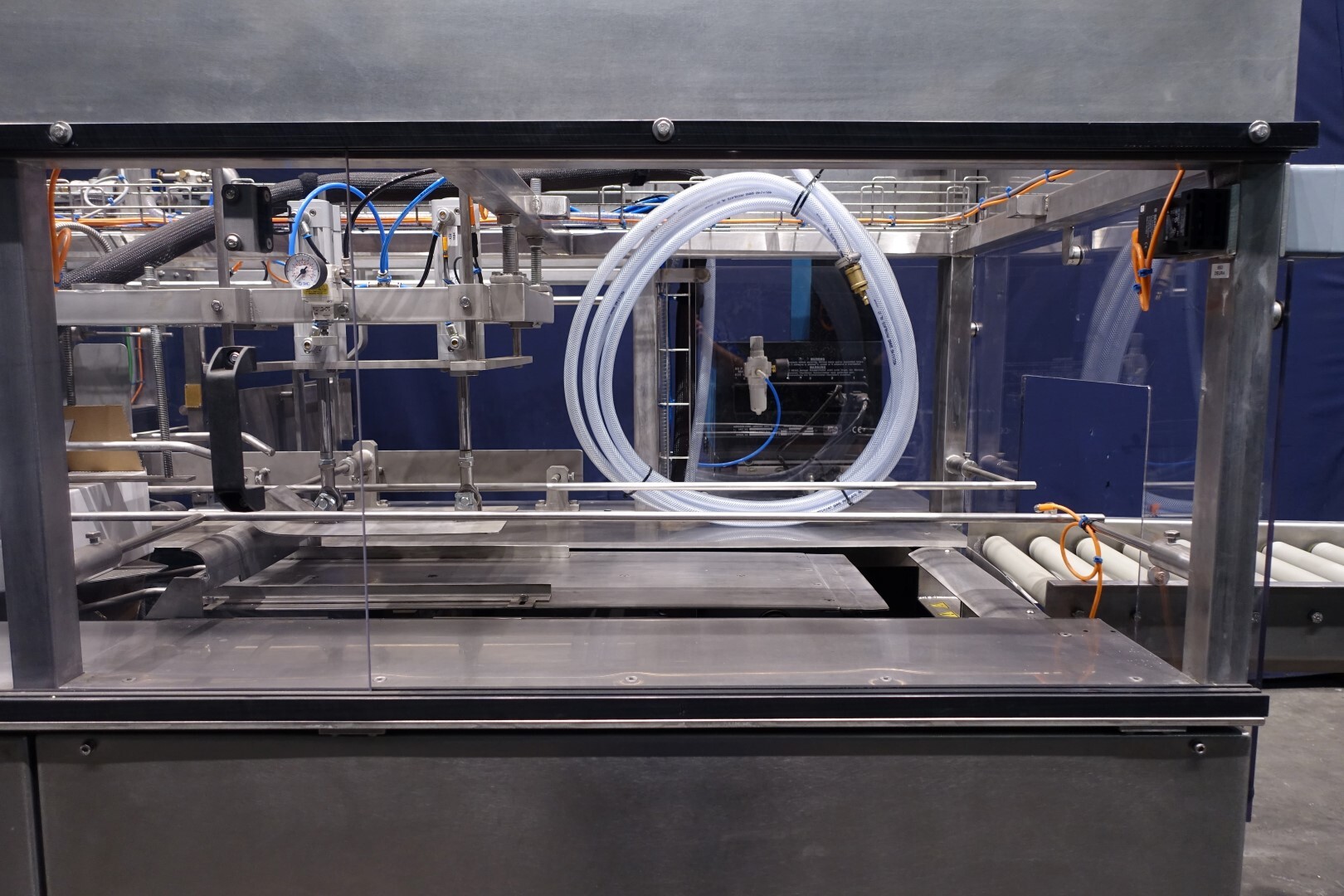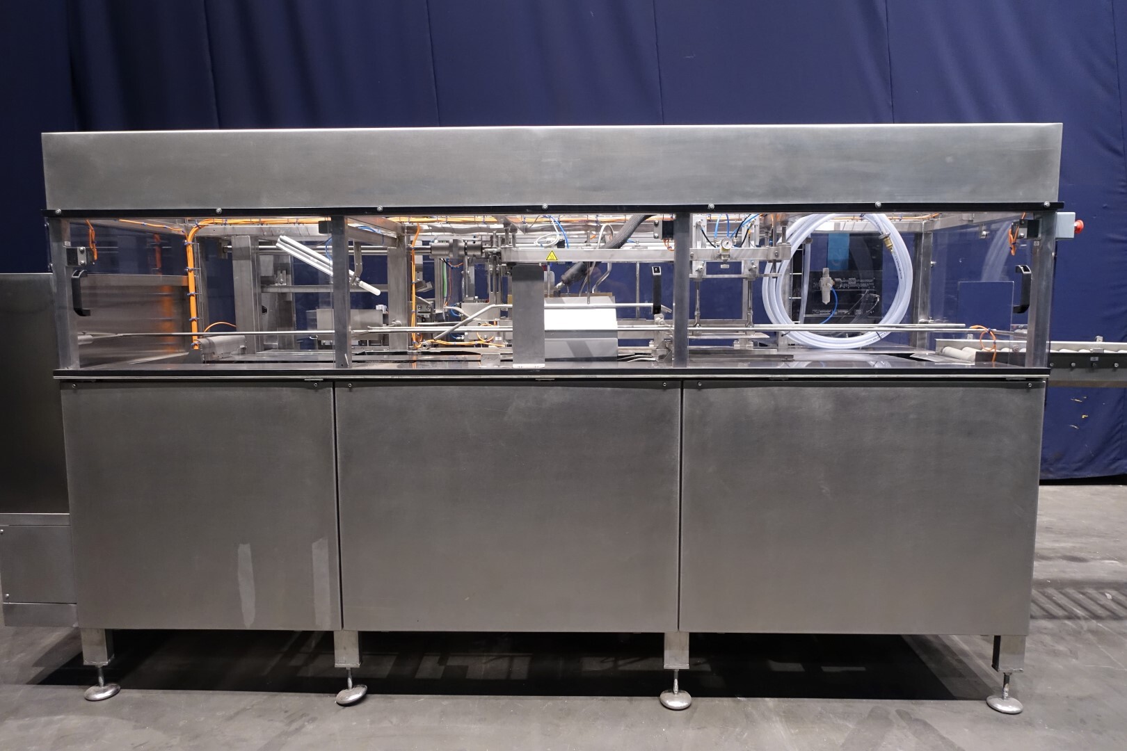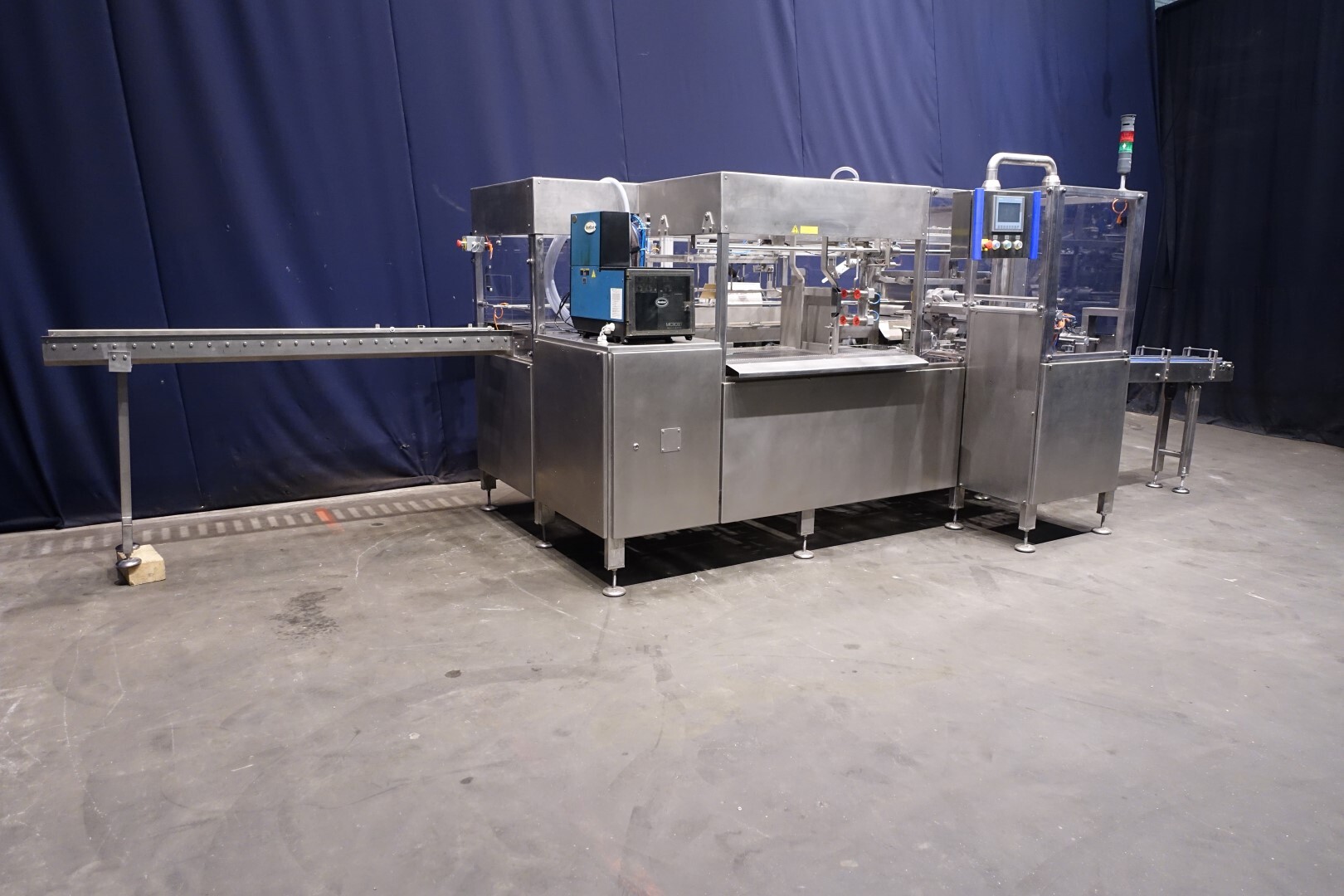 Automatischer Sammelpacker. Vollständig überholt. Derzeit eingestellt für 250 gr Butter-packungen von 100 x 75 x 37 mm, Verpackungsschema 4x2x3 = 24 Packungen von 250 gr in einem Karton (6 kg pro Karton). Kartonart: Amerikanische Faltschachtel. Neues Bedienfeld mit neuer Siemens S7-1200 SPS und Siemens Simatic HMI, KTP700. Generalüberholtes Nordson Hotmelt-Gerät mit Leimschläuchen. Maschinengestell komplett Edelstahl. Neue Türen aus Polycarbonat mit Schutz zum Öffnen. Einschließlich Einlauf- und Auslaufrollenbahn. Bedienungsanleitung (Niederländisch), Ersatzteilhandbuch und Elektro-schema verfügbar. Maschine mit CE-Konformitätserklärung. Maschinengeschwindigkeit synchronisiert mit einem Butterpacker Benhil 8345 oder Benhil 8380 (bis zu 80 Packungen / Minute)
