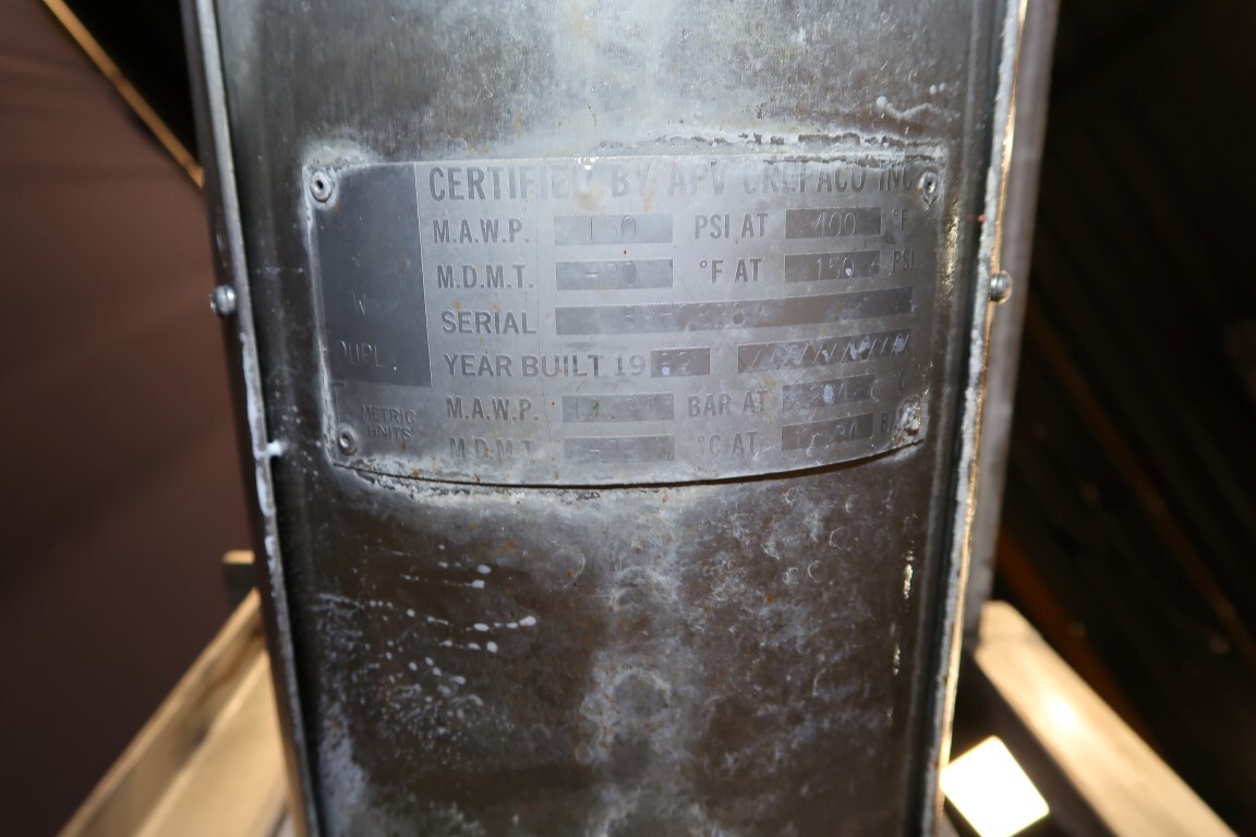 Zwei Wärmetauscher mit Oberflächenschaber mit einem Produktzylinder, aus Edelstahl, Rohrdurchmesser: 165 mm, Länge 1.830 mm. Rotor mit 4 Abstreifern. Fläche pro Rohr 0,84 m² und Volumen pro Rohr 40 liter. Druck: 150 psi (10 bar). Temperatur: 400 °F (200 °C). Antriebsmotor: 10 kW. Früher zum Erhitzen/Kühlen von Lebensmitteln (Soßen/Konzentrate) verwendet. Gesamtmaße, 1. Wärmetaucher: 300 x 50 x 45 cm und 2. Wärmetauscher: 310 x 110 x 90 cm. Diese beiden SSHE waren ursprünglich zusammen montiert.