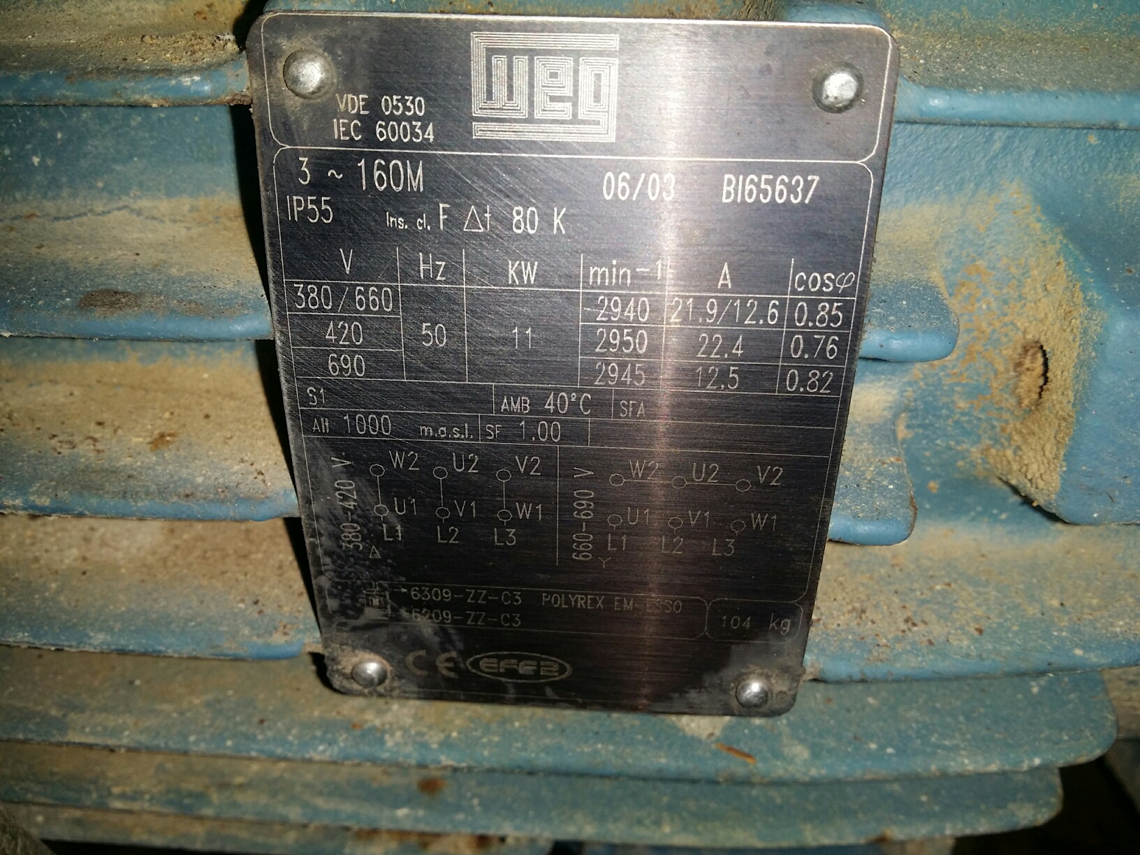 11kW - 21.9/12.6A - 2940rpm - Impellor 215 mm - Conn 3" SMS / 1.5" SMS.