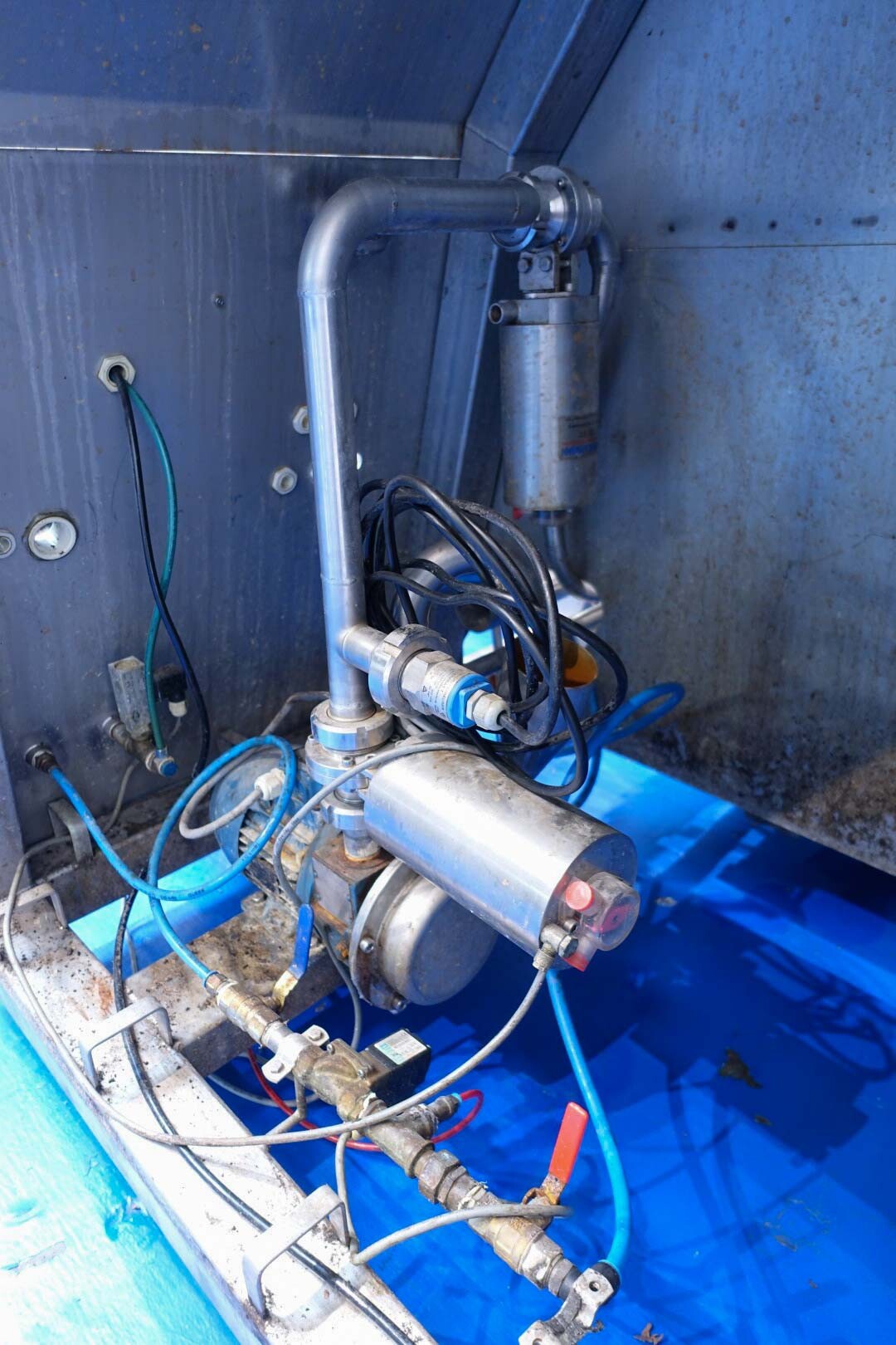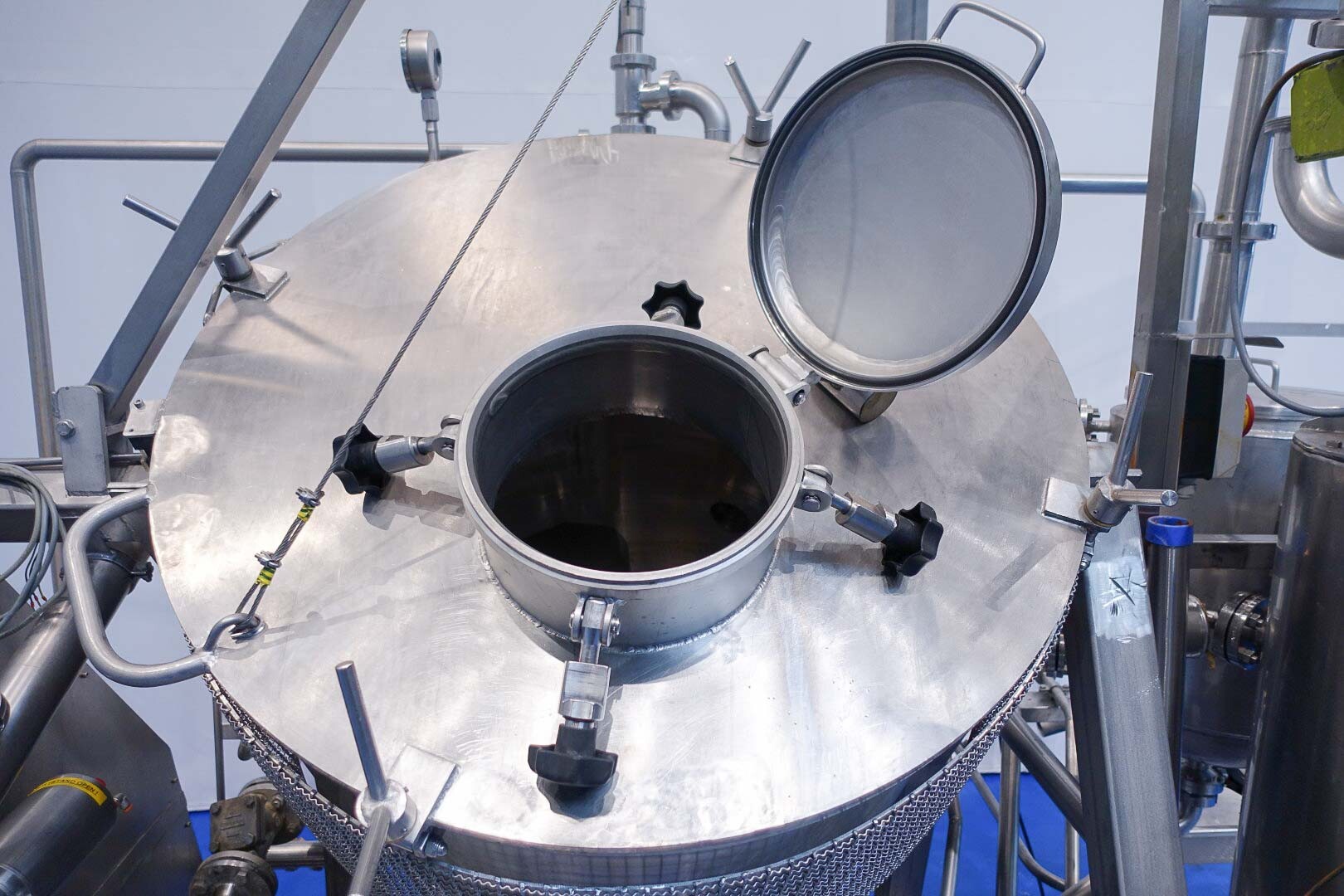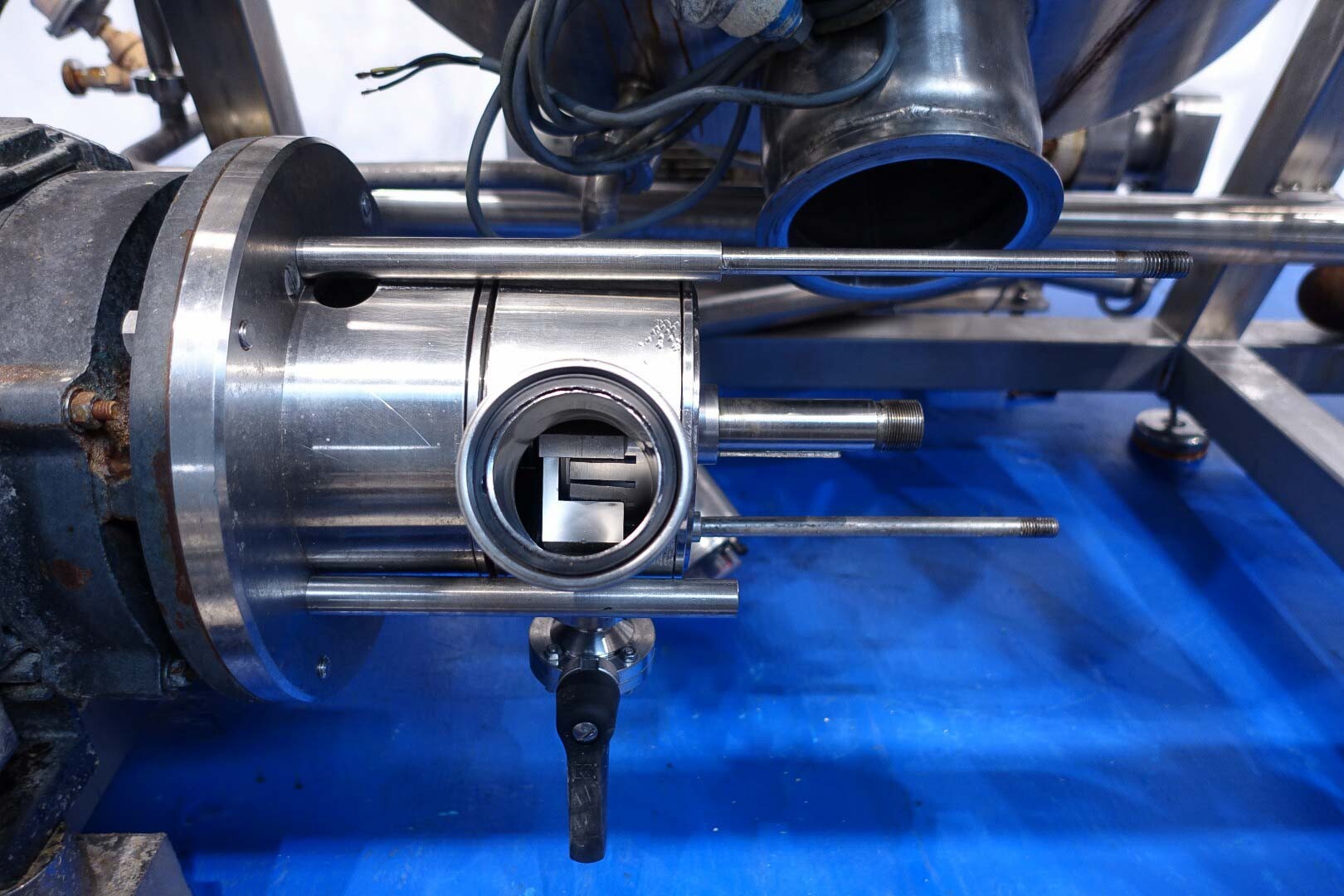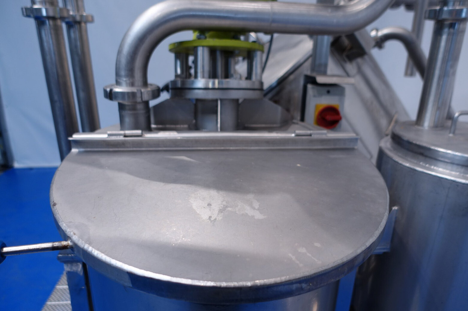 Batch sauce processor with Fryma Koruma Disho homogenising head. Diameter 140mm and ingredient injections on the head to emulsify and disperge ingredients for sauces like Mayonnaise. The Koruma head has a custom build vacuum tank (Make IDS) on top with scraper agitator (5,5kW), Capacity approx 500ltr per batch (total volume tank: 870ltr) with double jacketed (6bar) for indirect heating. Pressure in tank Vacuum to over pressure: 0,2 bar. Max working temperature: 130°C. Vacuum system with build in vacuum pump (Sihi model: Lema 26 AZ,  0,75kW), a product circulation system. Including a pre-mix tank for ingredients with agitator (150ltr) and feed make: Bornemann spin pump model: SLH80-40 year: 2006.