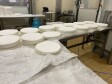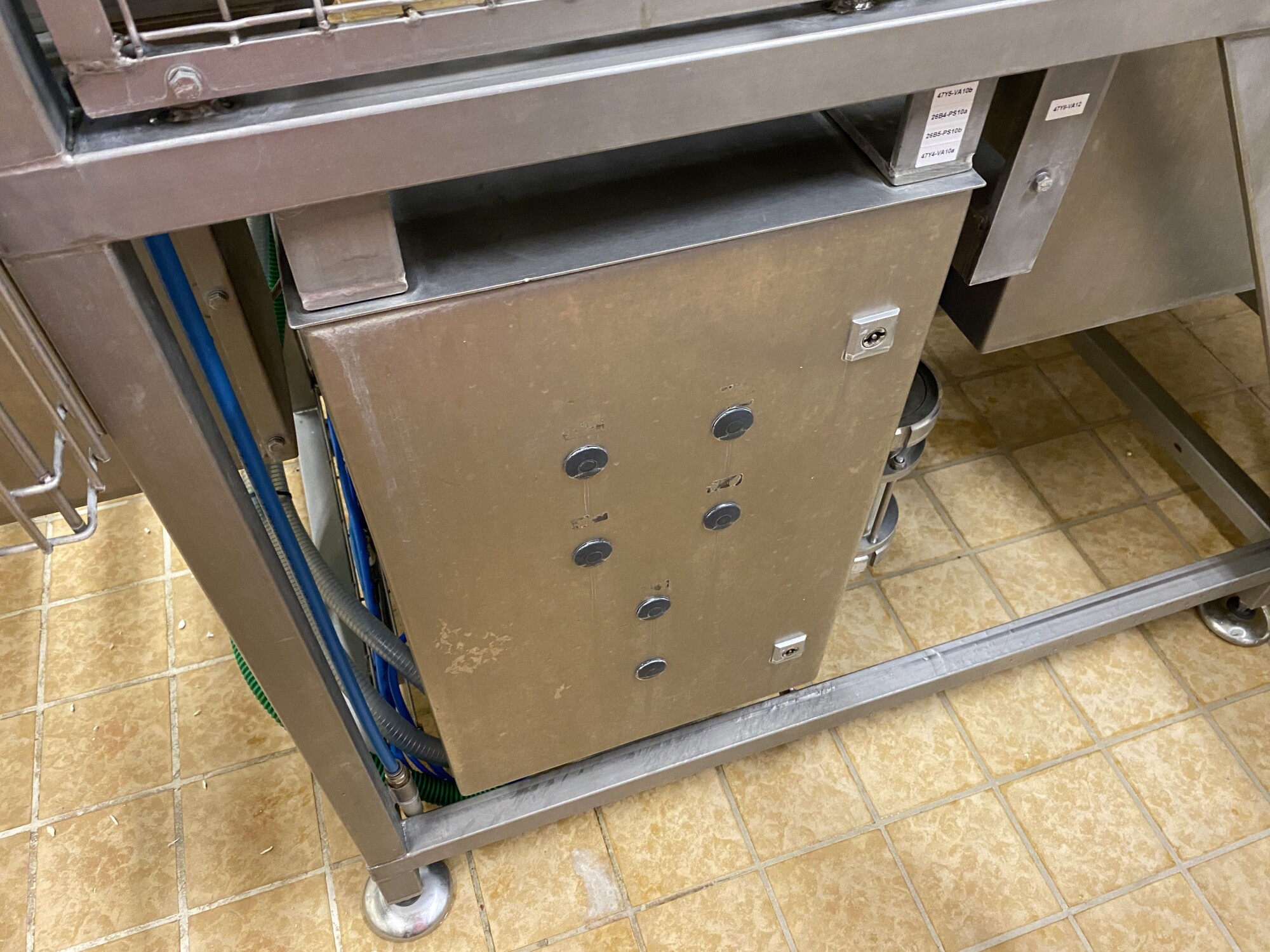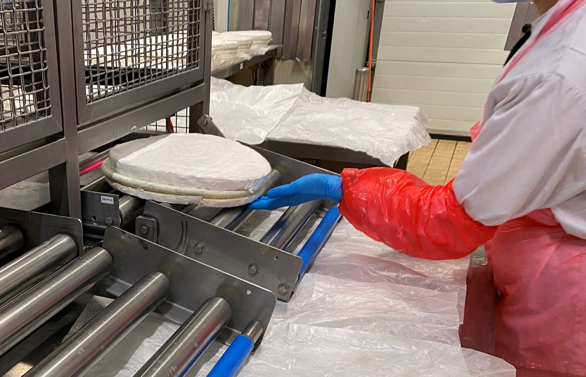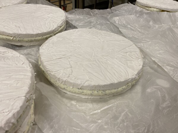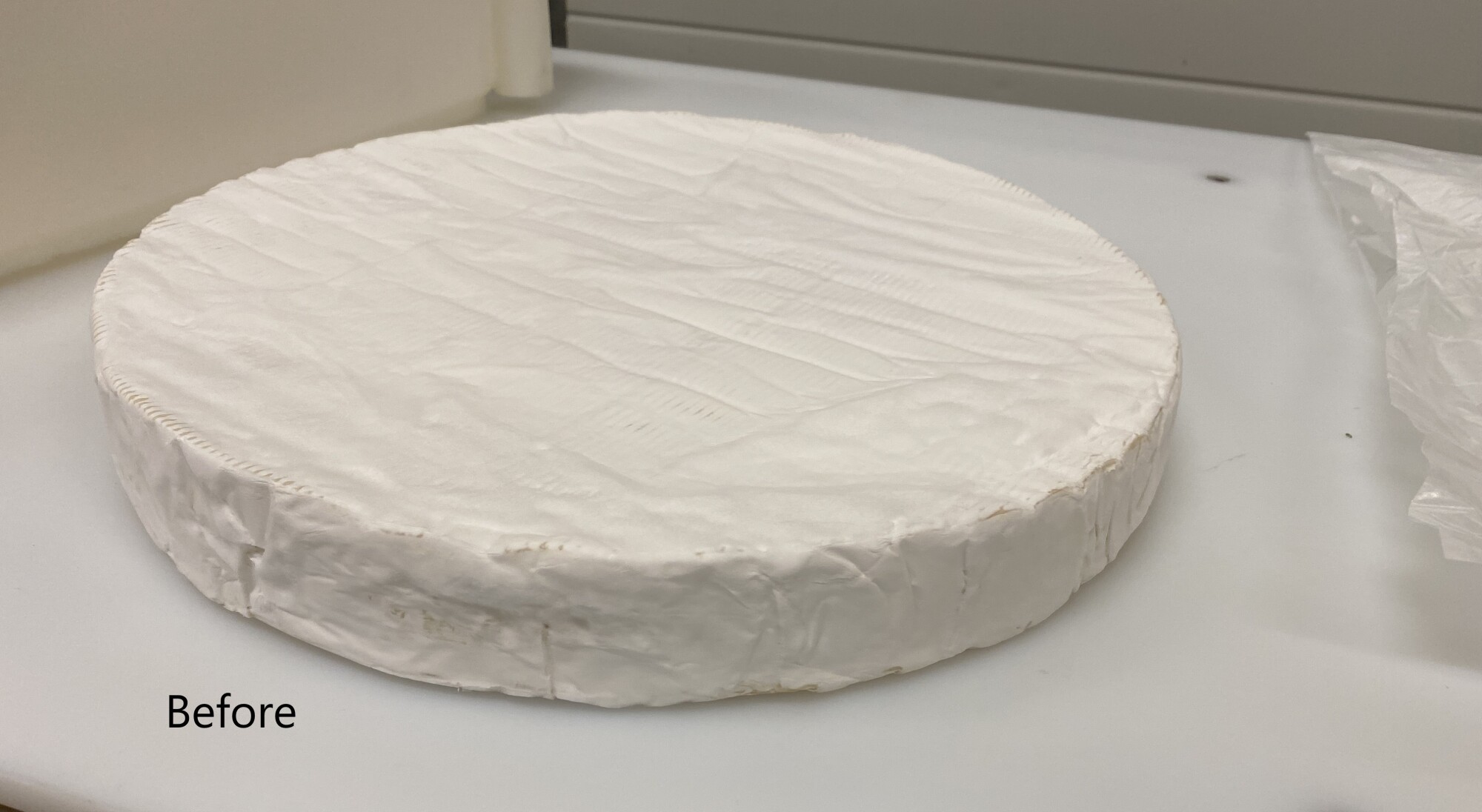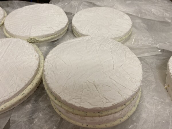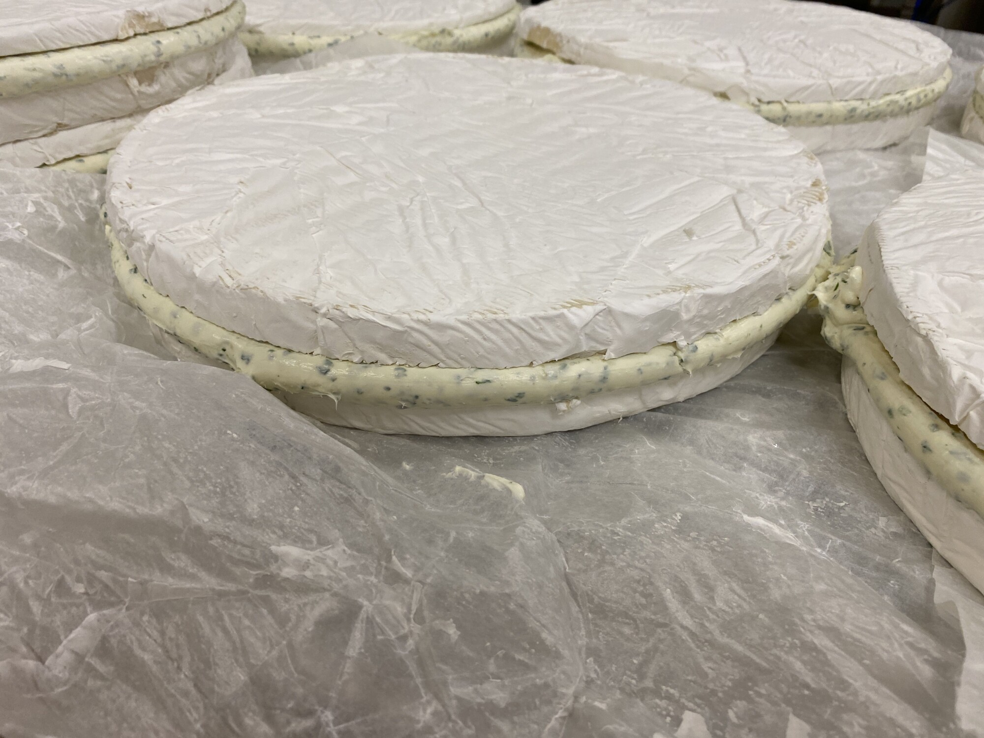 Unique design machine for making stuffed cheese from a standard semi soft cheese like Brie, Camembert or Columbier etc. A round cheese with a diameter of around 330 mm and with a weight of around 3-5 kg are cut, stuffed with a pumpable cream cheese. Working principle: inlet by a roller conveyor, then cut the cheese in half horizontally. Pick-up the top of part of the cheese and lift it. Then the underside of the brie is stuffed with a layer of a viscose product like a pumpable cream cheese or processed cheese. The last step is to place the upperpart of the cheese back on top. Ideal for ‘bites’ like products with different cheeses mixed. Stand-alone unit. Including SS safety fences, CE marked. Including Siemens S7 and HMI control panel. A video of the machine in production is on our website.