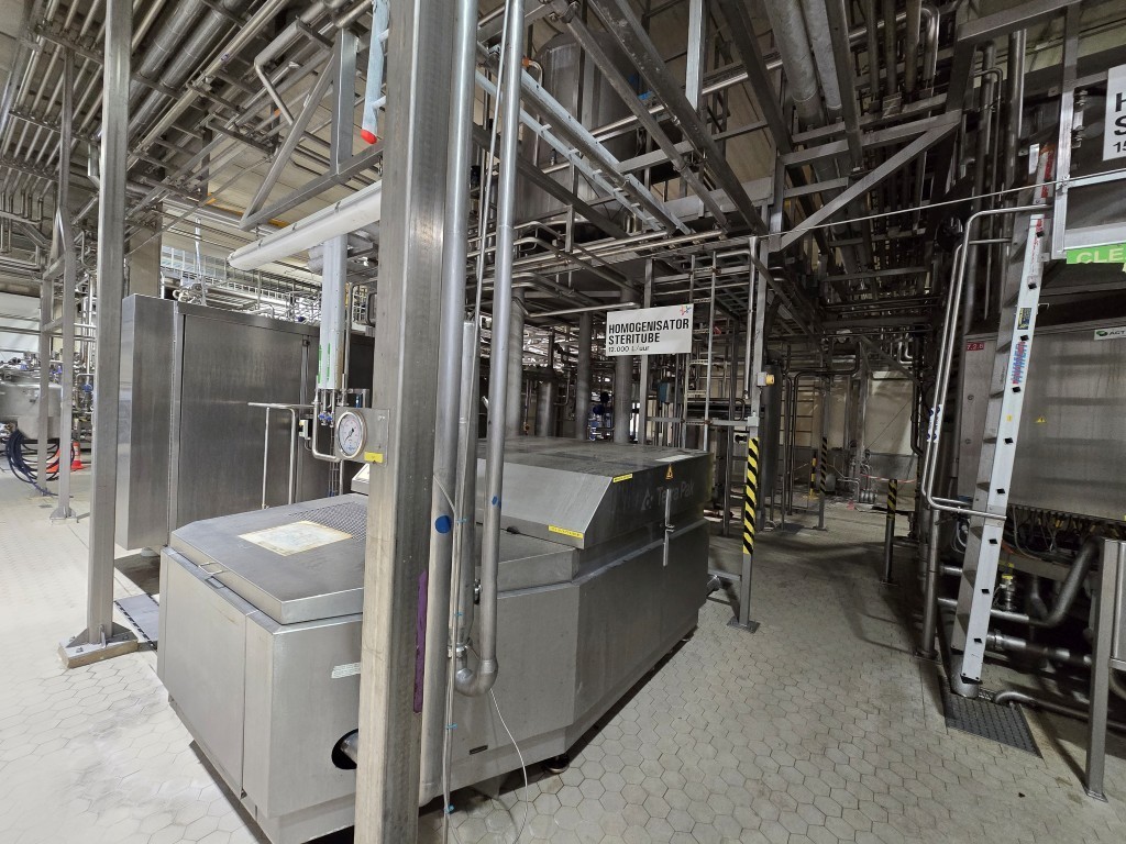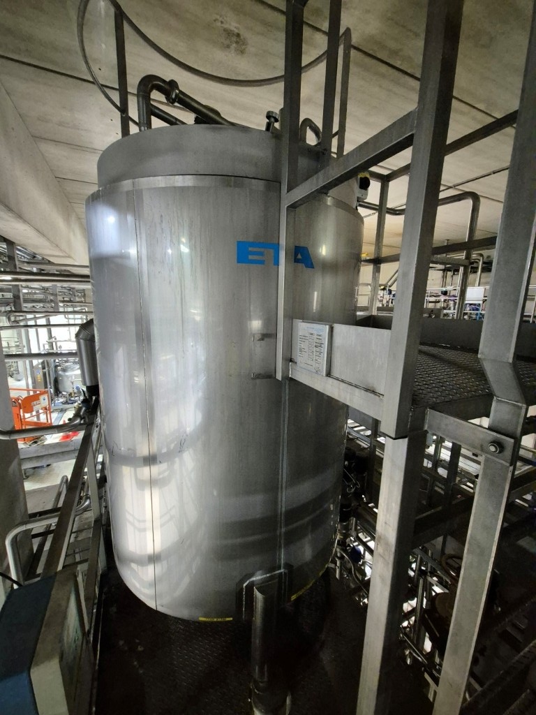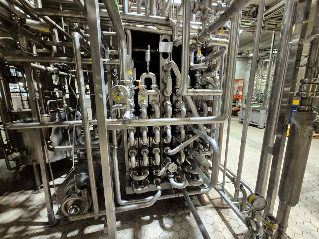 Complete UHT unit with indirect heating system. Indirect by tubular heat exchanger Alfa Laval Steritube P13, year 1993 (Multitube) Protein stabilizer at 95°C holding 60 seconds and short holding tube at 137°C for 2/4 seconds. Output at 26°C or through 1 section plate cooler Alfa Laval C8 (year 2002) for ESL milk 4°C out. With balance tank, product centrifugal pump, water pumps, product and steam valves and piping. Upstream non Aseptic 2 stage homogeniser Tetra Pak ALH30, year 1993, 200 bar and an double jacket coolable 'reject' tank 2.000 liter 2014 make: Eta (where the push out milk is collected for start-up). Including Siemens ET200M remote IO box and control panel with Danfoss FC302 frequency converters 4kW & 75kW for homogeniser), PI&D and documentation available. "
