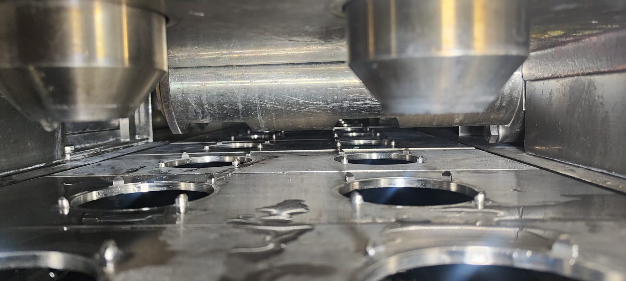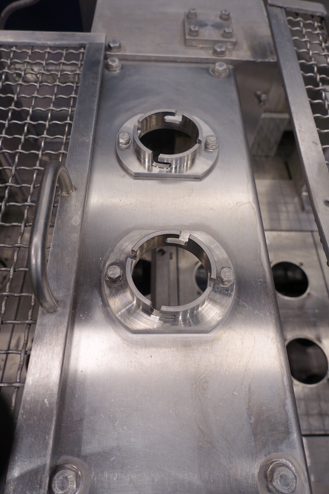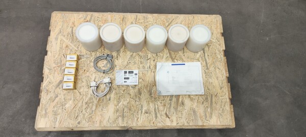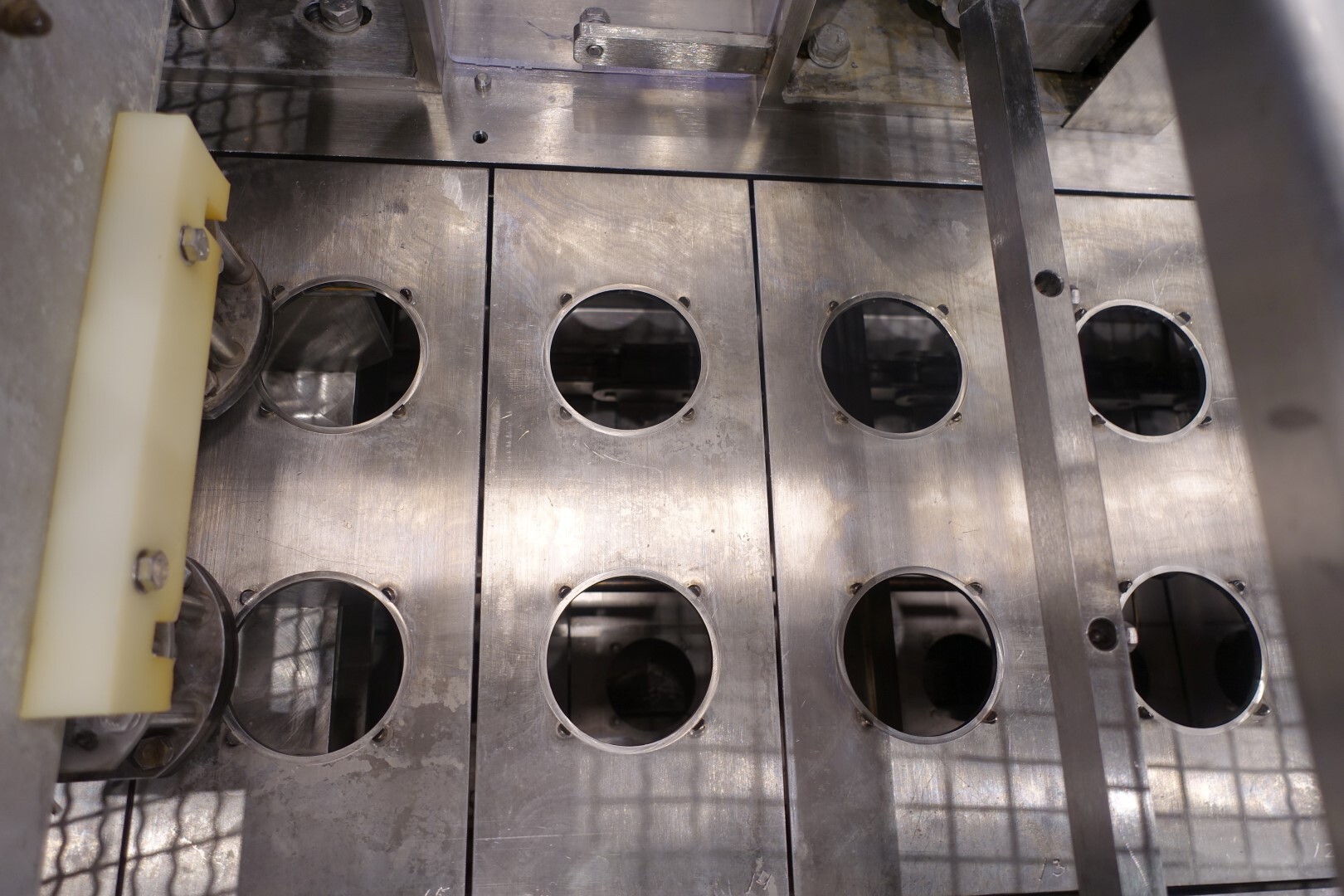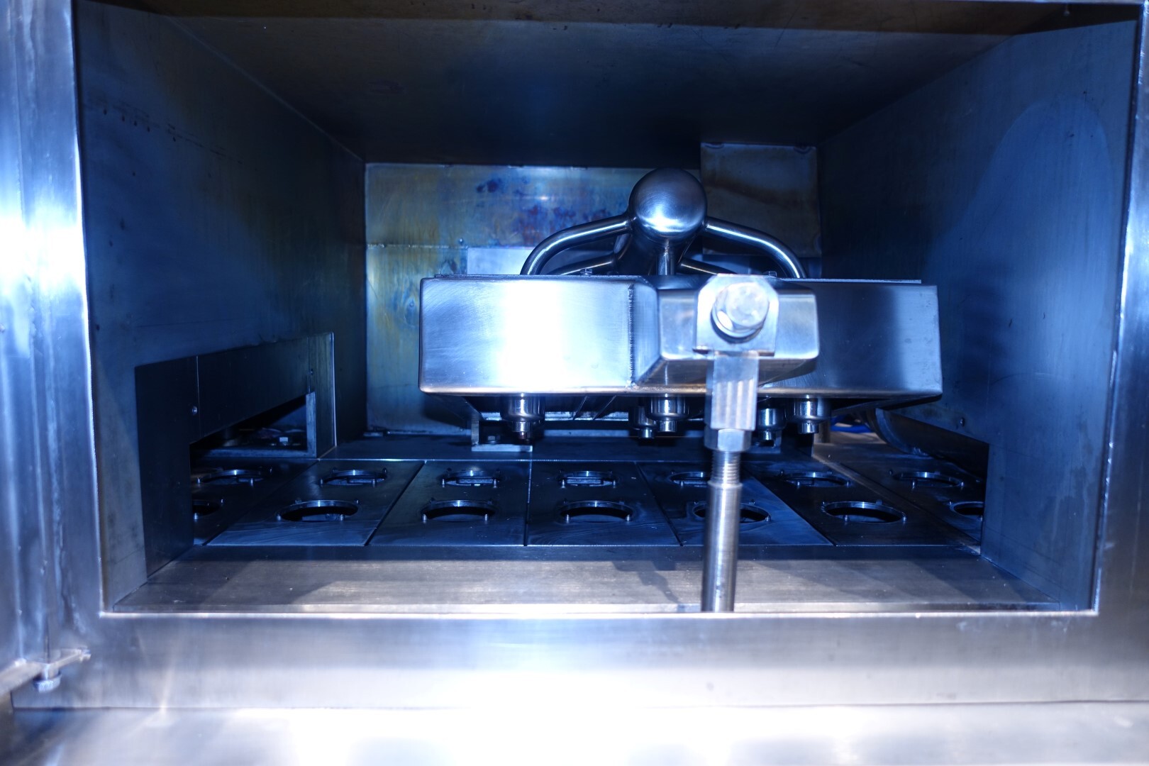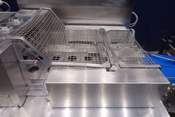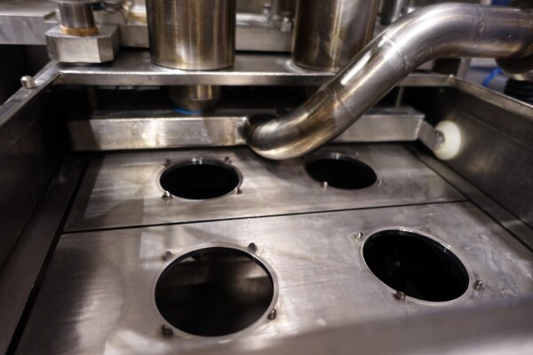Llenadora de vasos ultra clean de 2 líneas, diámetro de vaso 75 mm. Descontaminación de vasos con H2o2, predosificador para pulpa de fruta en el fondo del vaso de 10 a 50 ml, dosificador principal (100-275 ml), limpieza CIP, tapa dispensadora, descontaminación de tapas con luz infrarroja y termosellado. transportador de salida y Lazy suzan, 'mesa giratoria' para recogida en salida. Dimensiones totales: 430 x 140 x 260 cm. Peso de la máquina 3.400 kg - mesa giratoria Ø 100 cm, peso 106 kg - longitud de la cinta transportadora 210 cm, ancho total 35 cm, peso 140 kg. Nuevo panel de control con nuevo PLC Hitachi y HMI con pantalla táctil y revisión completa de la máquina, fabricado en 2010. Excluyendo soplador y bomba de retorno CIP (Pomac).