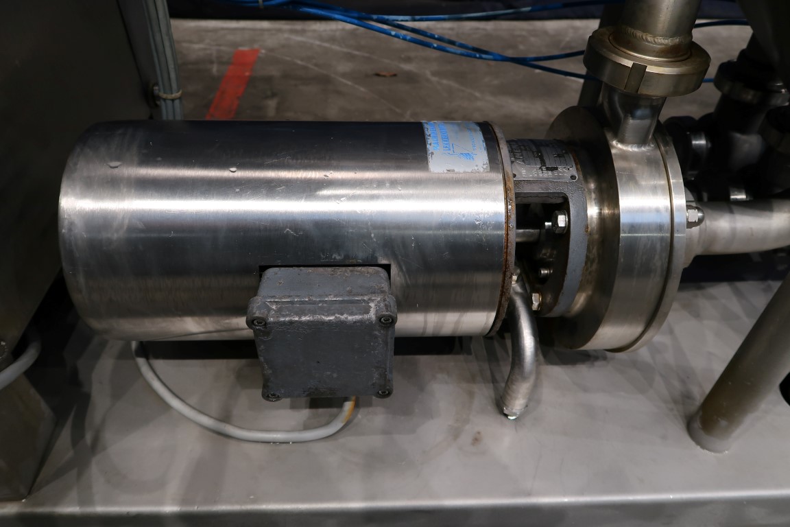 CIP Cleaning unit previously used for a Westfalia KDA Quark separator. Single jacketed tank with lid. Dimensions of the tank: diameter 60 cm and height 70 cm. Centrifugal pump, Anema, CCGM 4044/155, motor 3 kW - 6,7 A - 2840 rpm, capacity: 20.000 ltr/h, pressure 2,4 bar. Control panel with relays controls. Total dimensions: 140 x 65 x 155 cm.