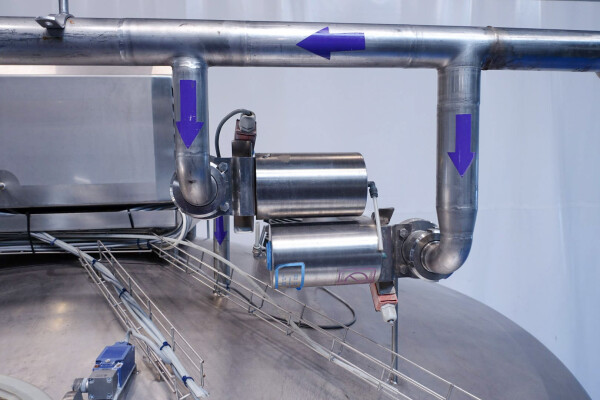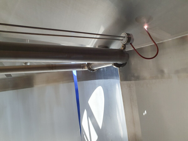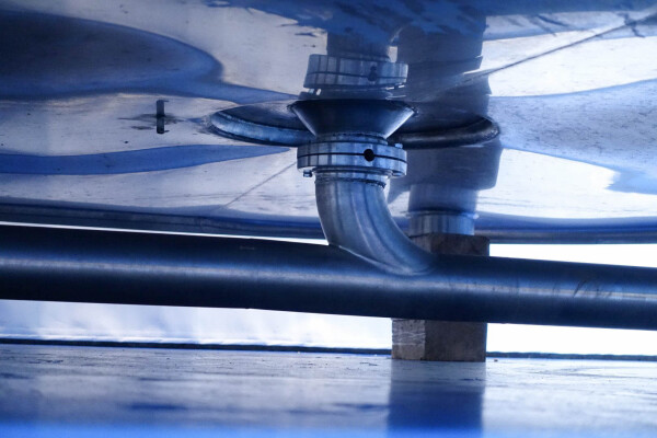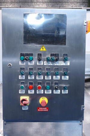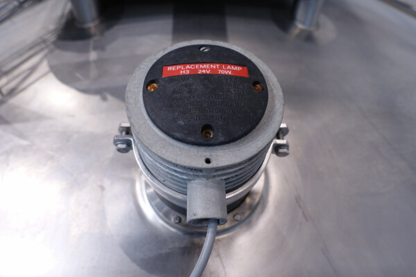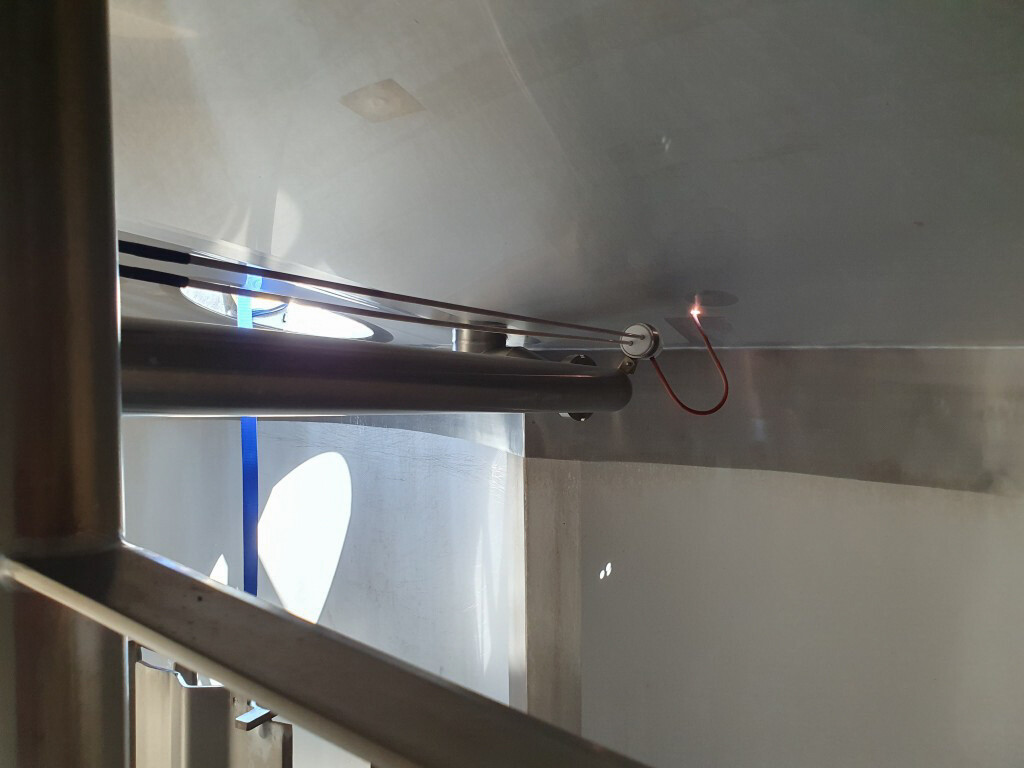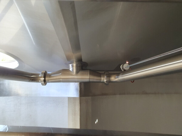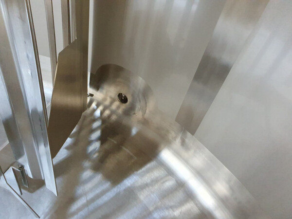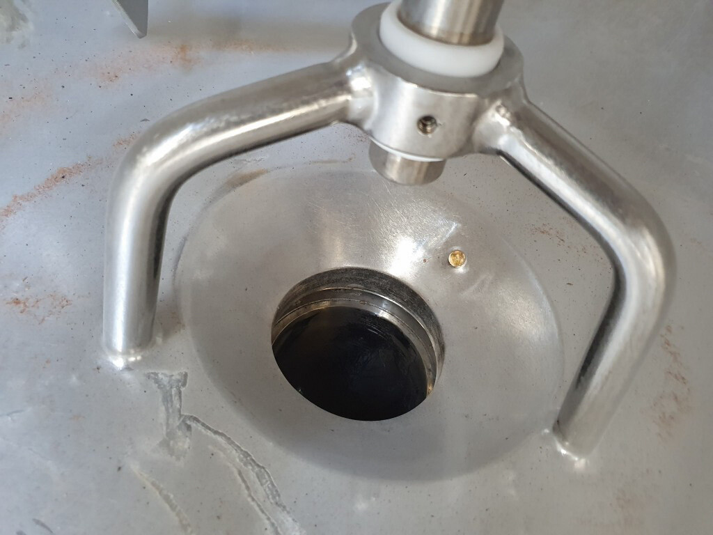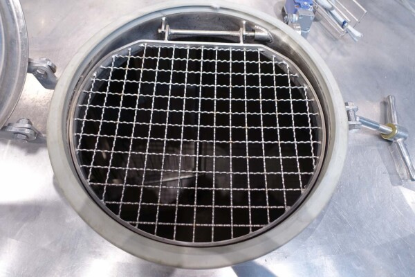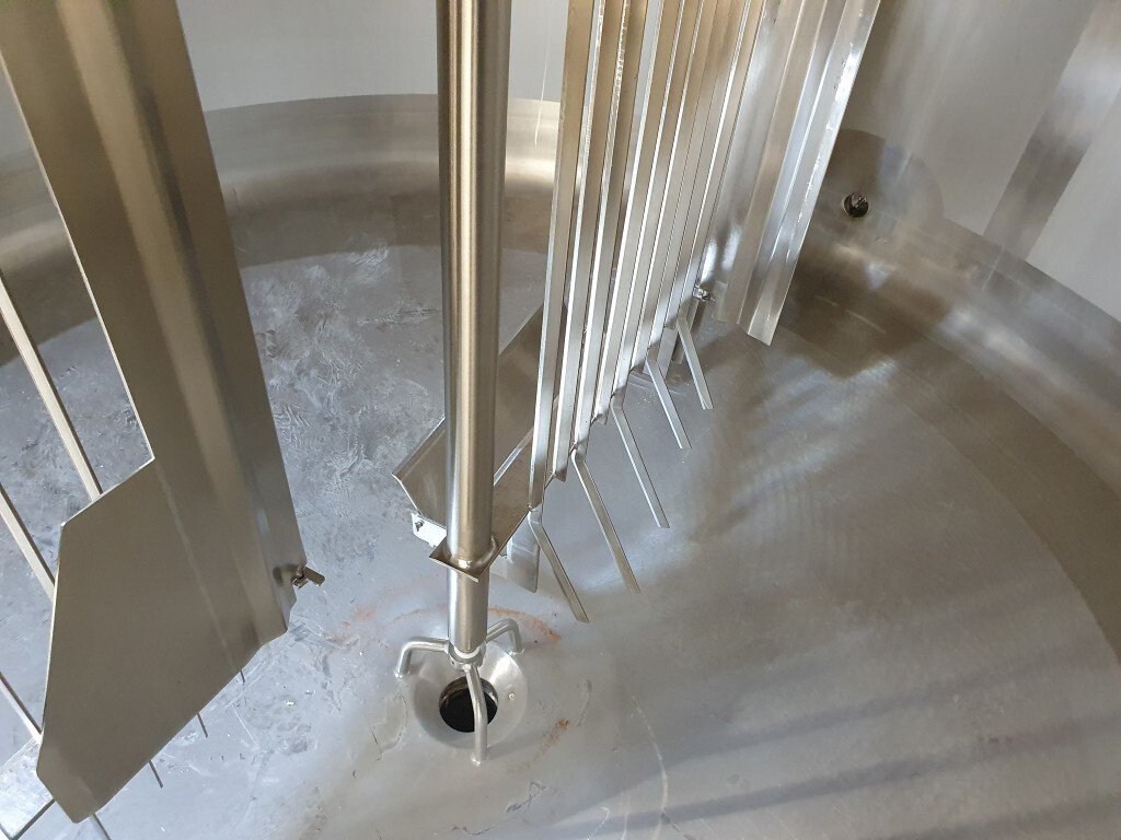 Cuve de caillage horizontale. Double paroi. Aspiration du lactosérum par le haut avec capteurs. Trou d'homme de 45 cm avec protection de sécurité et capteur. Moteur d'entraînement de 4,0 kW. Nettoyage NEP possible, équipé de deux boules de pulvérisation. Aérateur sur le dessus avec cuve NEP, tuyau NEP avec vanne papillon manuelle. Lampe d'inspection sur le dessus. Hauteur de sortie (caillé) (avec pieds) : environ 35 cm, diamètre du tuyau : environ 100 mm. Manuel d'utilisation et schéma électrique (en allemand) disponibles.