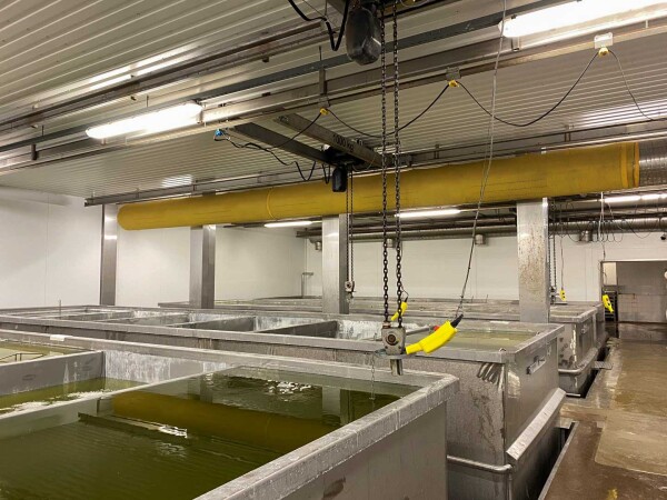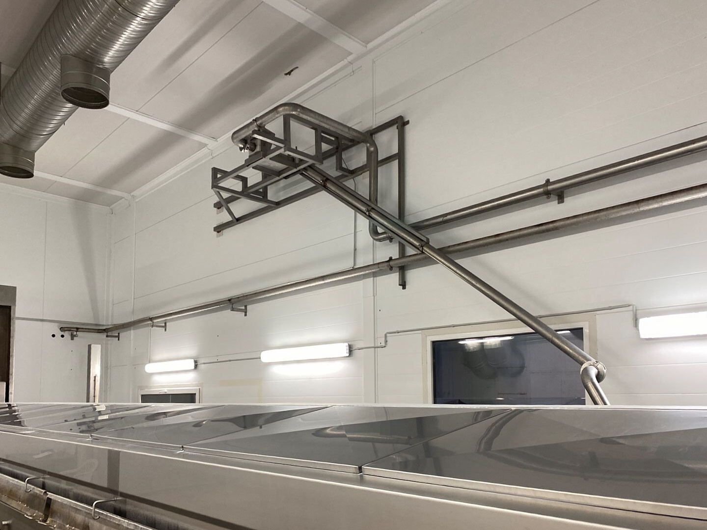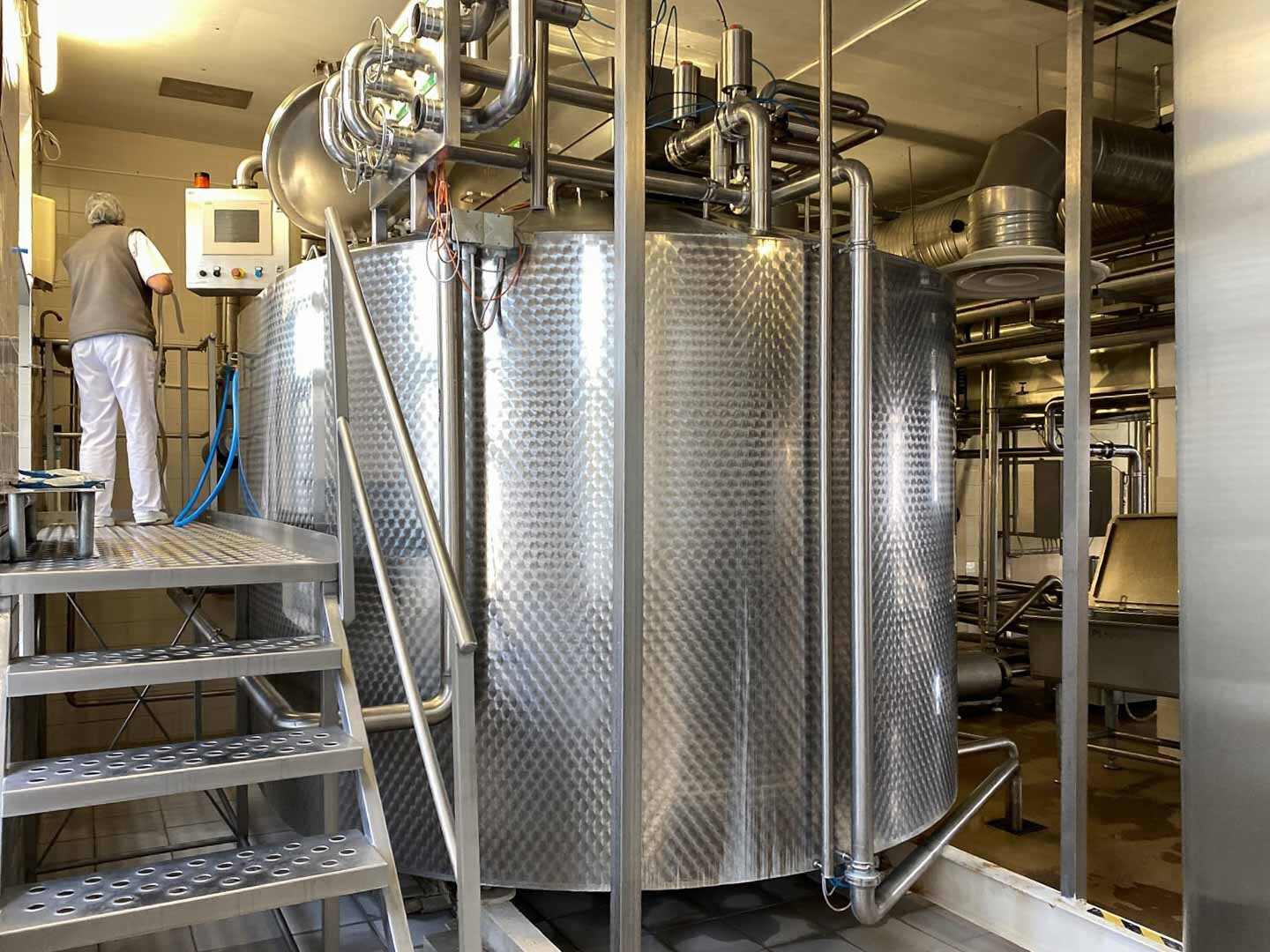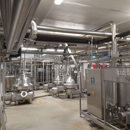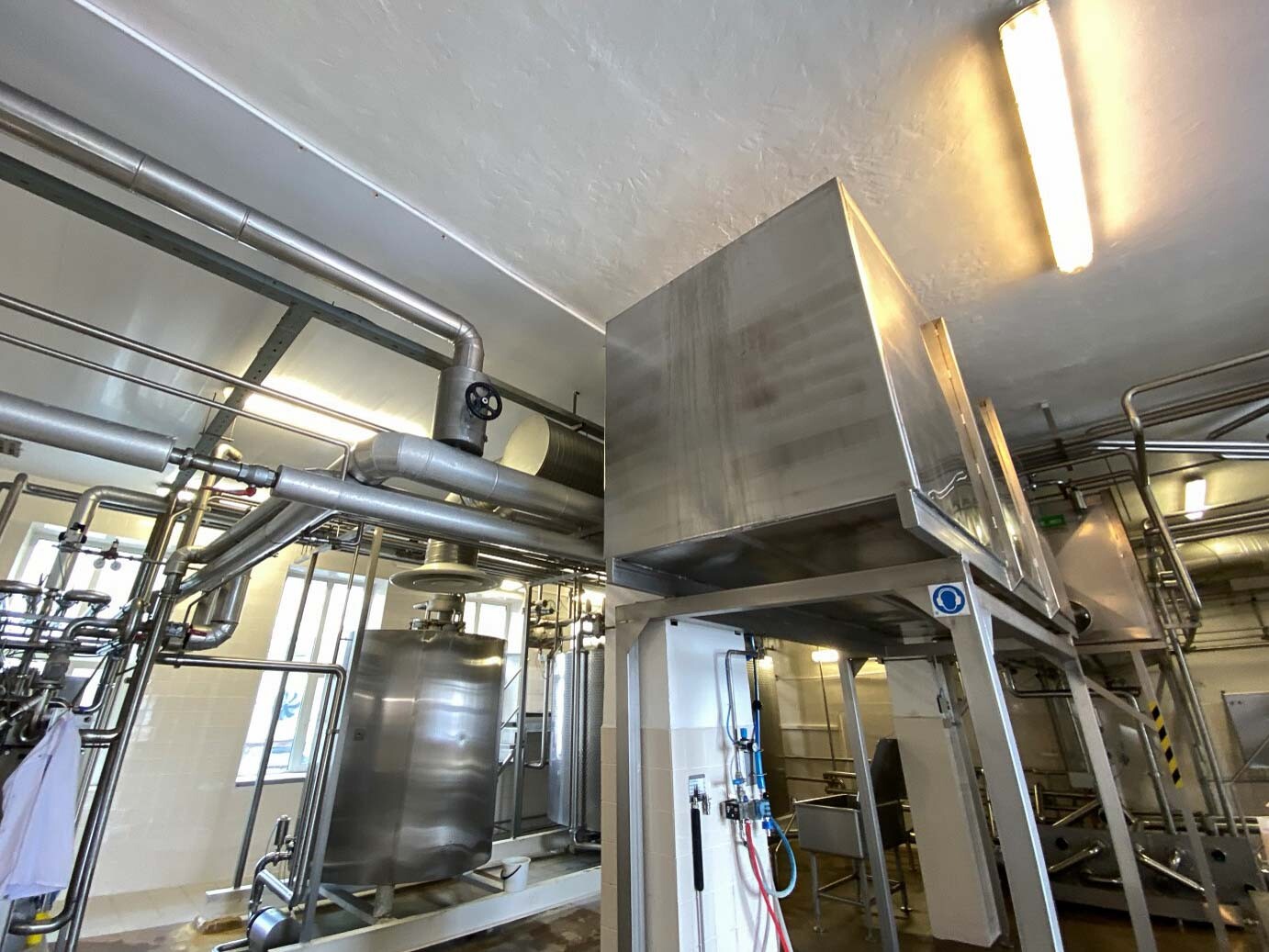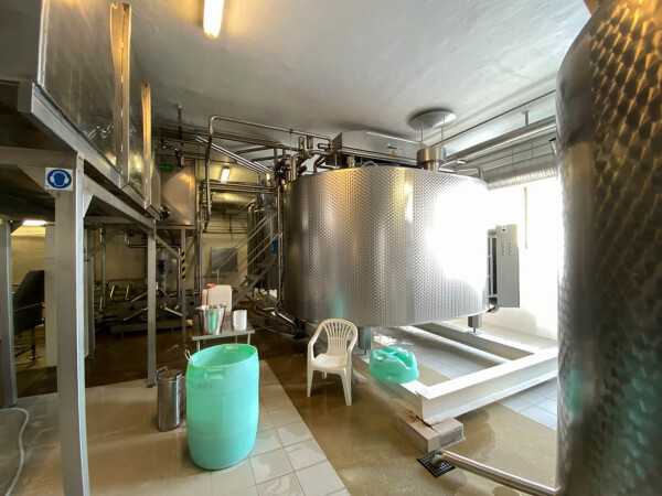 La laiterie comprend : 3 unités de réception pour camions, cuves de stockage de lait cru, pasteurisateur de lait 15 000 litres/heure, ecrémeuse à lait, 2 bactofuges (double bactofugation), pasteurisation de la crème, cuves tampons de lait, pasteurisateur, 3 cuves à fromage, 2 systèmes d'égouttage et de pressage du fromage, réservoir d'eau chaude, système de préparation de ferment, département de saumure avec cuves en acier inoxydable et cages à saumure, département de traitement du lactosérum avec écrémeuse et concentrateur RO. Évaporateur de lactosérum avec compression thermique de vapeur. Système de stockage et d'expédition de concentré de lactosérum, 2 systèmes CIP. Logiciel de Kalt et MSS Intl., Suisse. La ligne a été arrêtée en mars 2024 et fonctionnait jusqu'à ce moment à capacité normale et était bien entretenue. La capacité journalière de l'usine dans sa configuration actuelle est d'environ 270 000 litres de lait, ce qui donne 19 lots de 84 fromages = 1 596 fromages de 15 kg par jour. Cela donne environ 24 tonnes de fromage par jour.