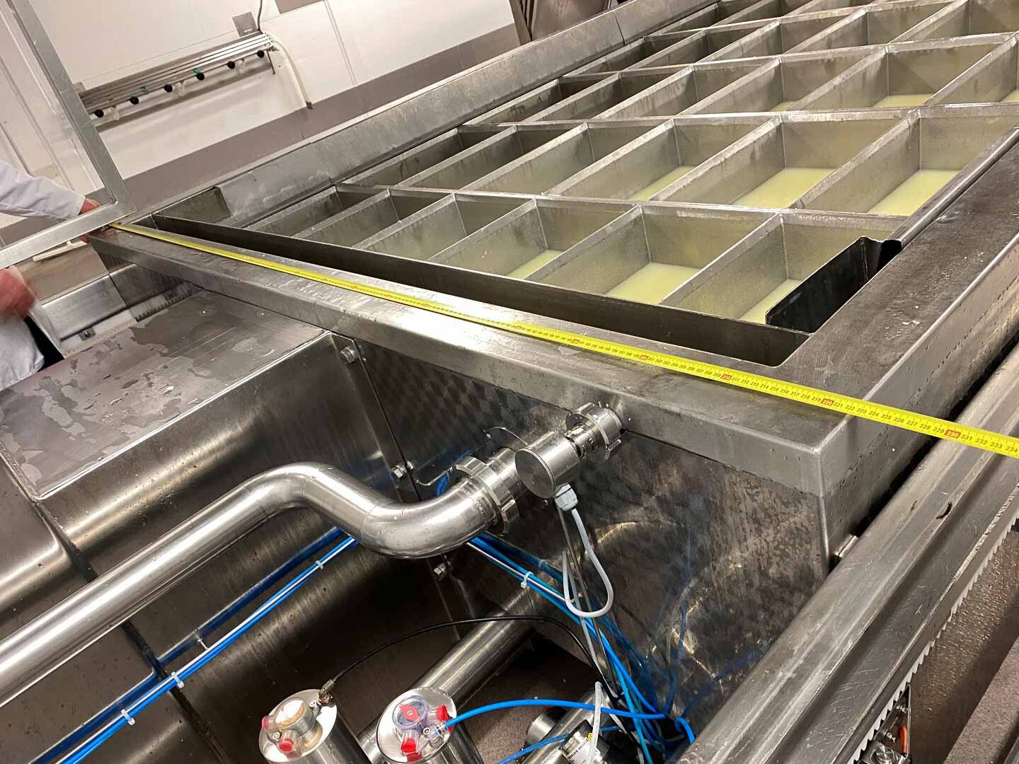 Installation complète de fromagerie pour modèle de forme rectangulaire : Euroblock 15 kg. Type de fromage : Semi-dur comme Gouda, Edam, Maasdam, Dambo, mais aussi Cagliata.
