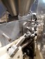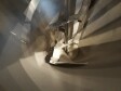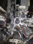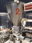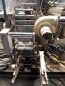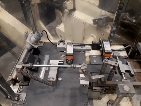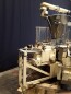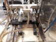 Machine de remplissage et d'emballage automatique en boîte pour les portions rondes de fromage fondu. Doseur à piston 1 tête avec trémie chauffée électrique (± 75ltr), avec agitateur racleur. Produit: fromage fondu, semi-liquide, rempli à chaud. Principe de fonctionnement: alimentation boites de carton ronde préformé par convoyeur, alimentation en feuille à partir de la bobine. feuille découpée et formée dans la boîte, remplissage produit, feuille supérieure du rouleau, formation de la feuille, distribution de la feuille supérieure et du thermscellage de pointe, pliage, thermoscellage, évacuation par convoyeur. 2 ventilateurs d'aspiration pour le film. Sans contrôles.