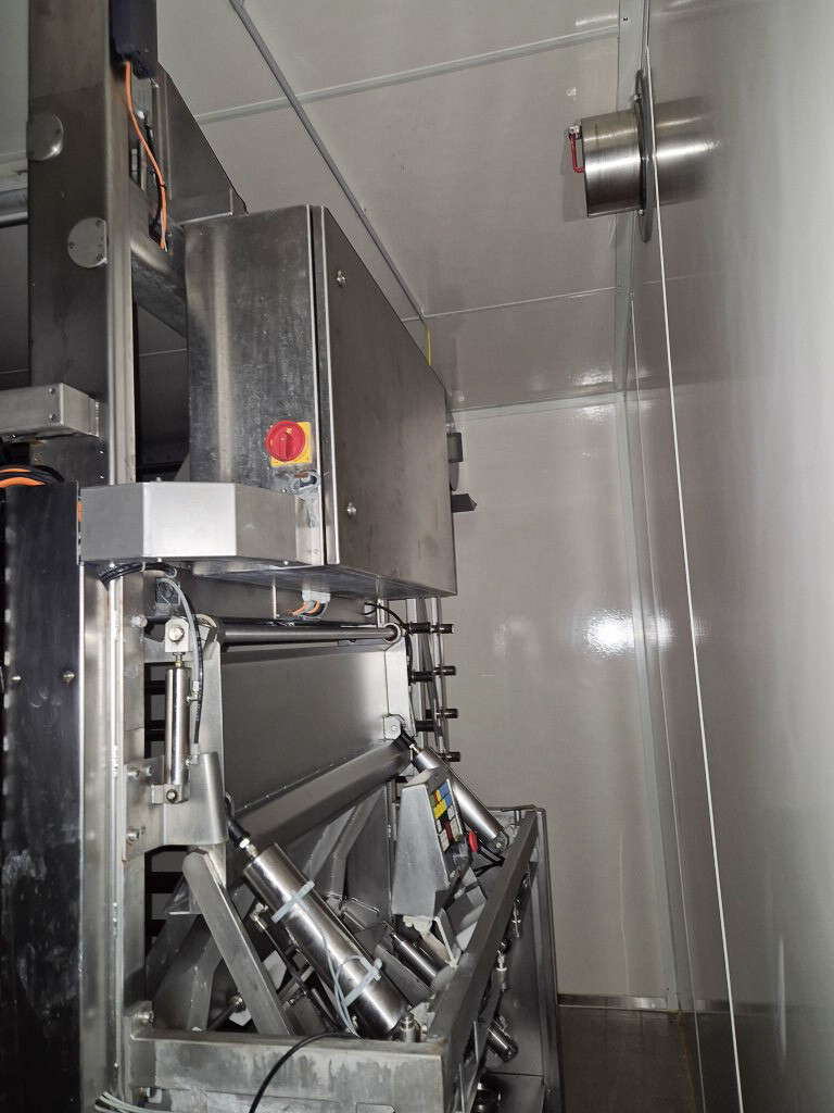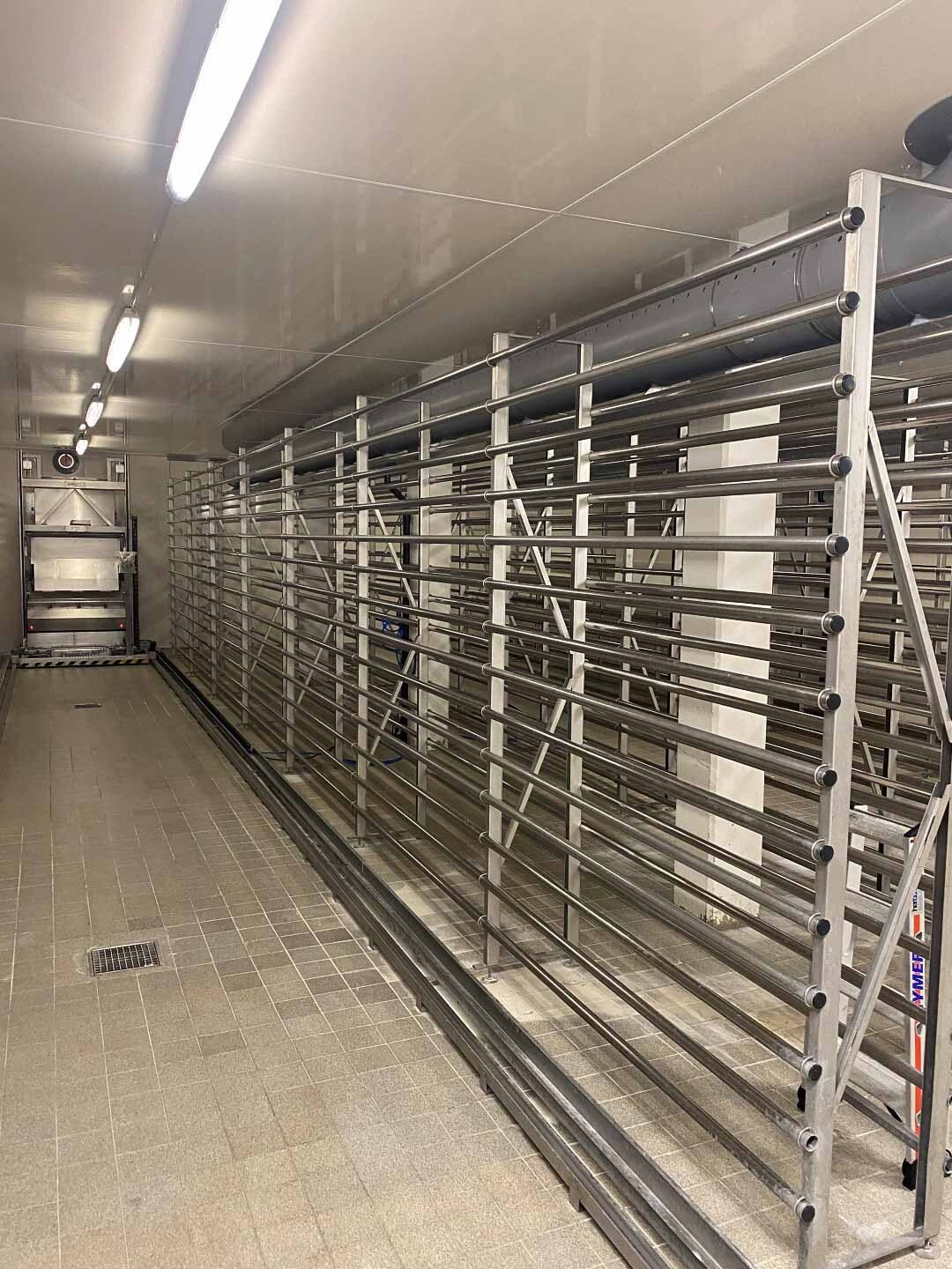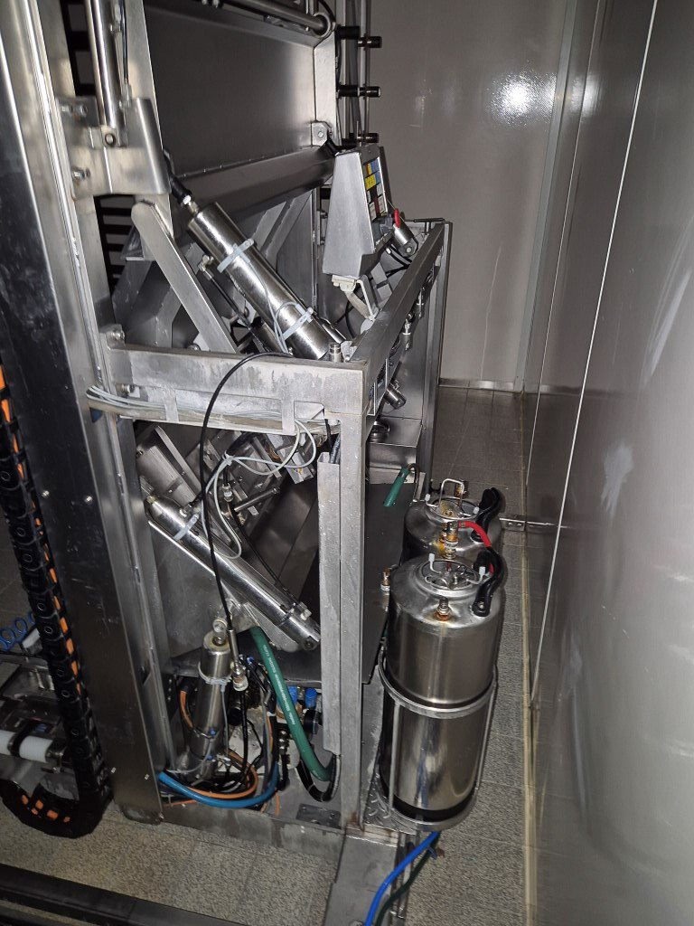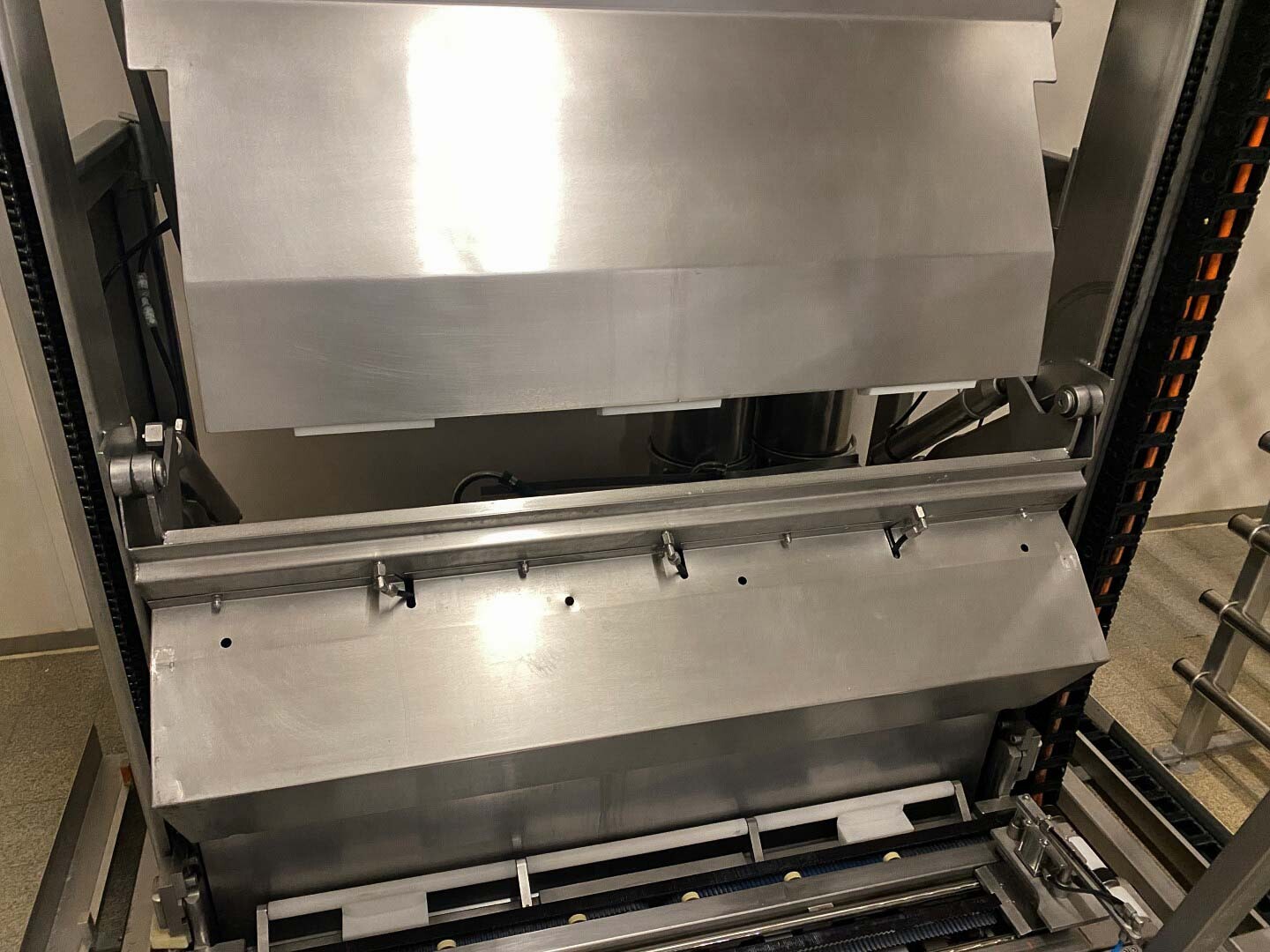 Un automate programmable moderne assure la surveillance du processus et le signalement des erreurs. La capacité est d'environ 100 plaques par heure et est équipée d'une commande Siemens Simatic S7. Le robot est équipé de clayettes à fromage et de 4 casiers en acier inoxydable de 1280 x 50 x 255 cm, ainsi que d'une climatisation complète en option.