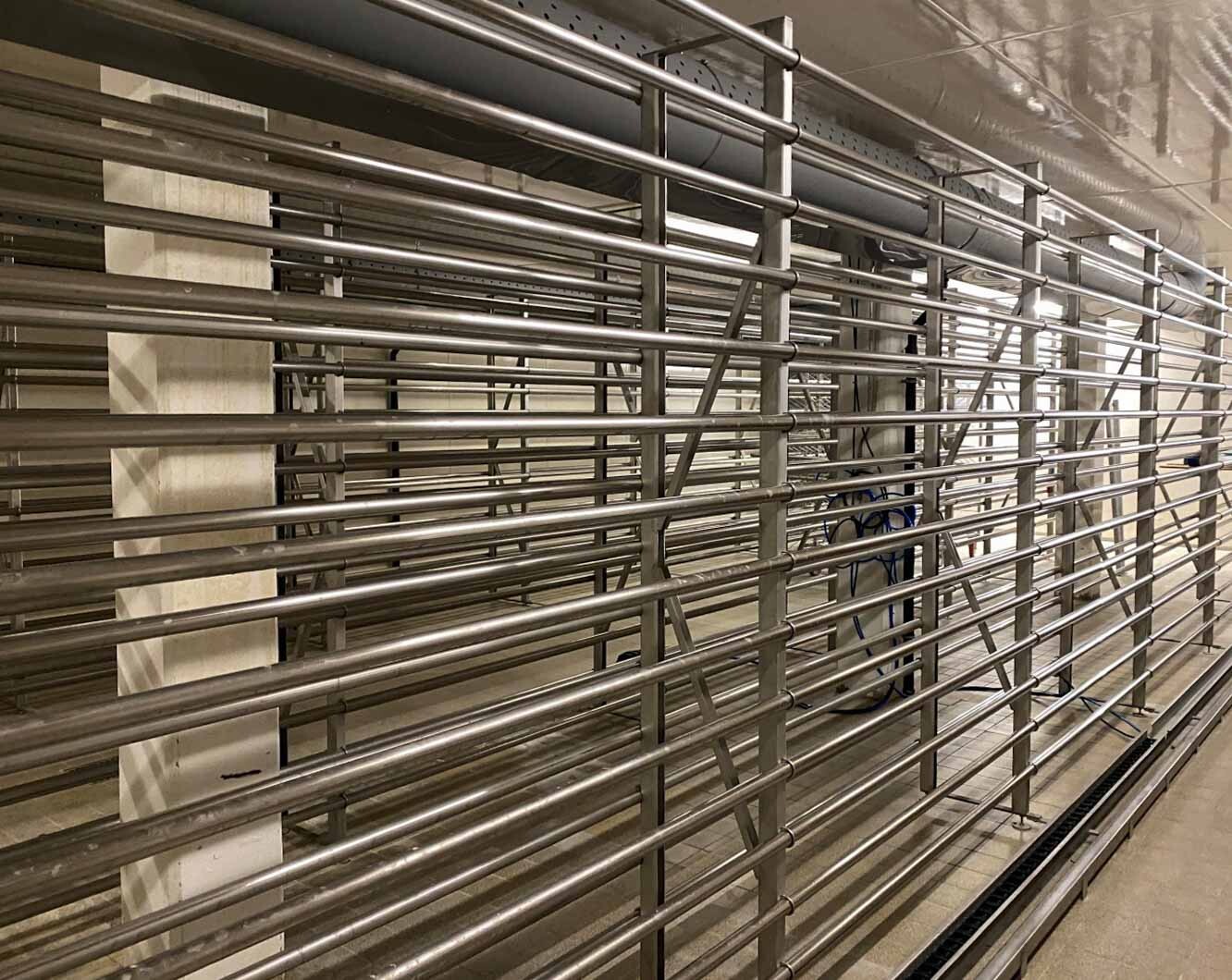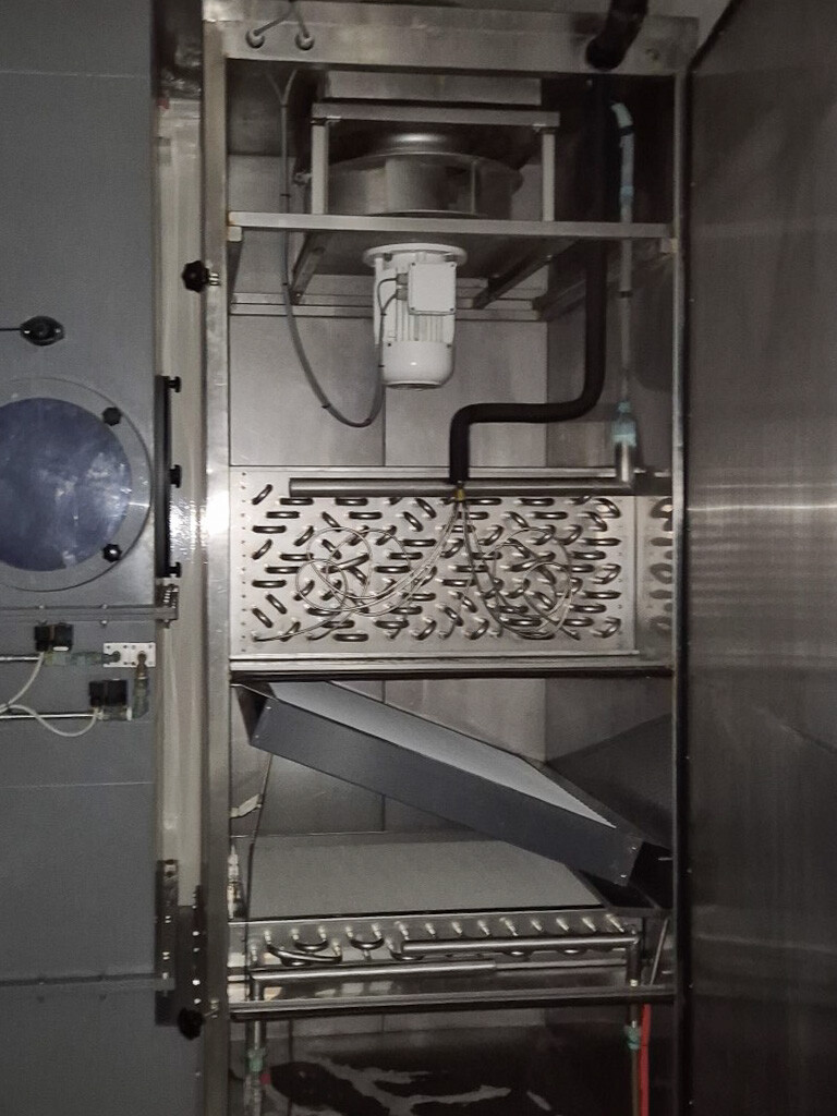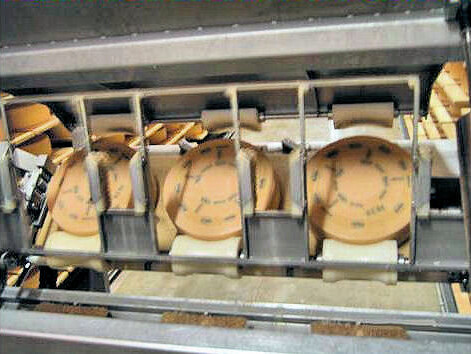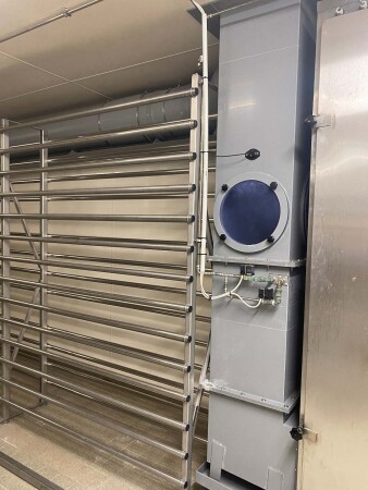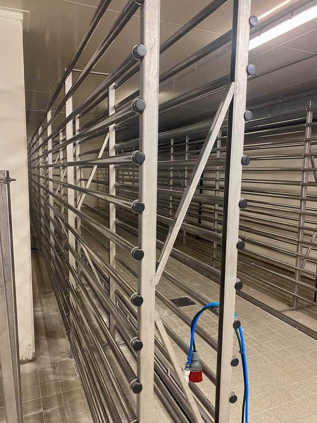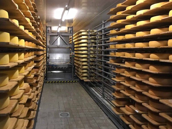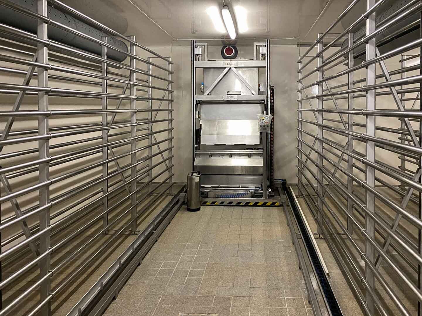 Un automate programmable moderne assure la surveillance du processus et le signalement des erreurs. La capacité est d'environ 100 plaques par heure et est équipée d'une commande Siemens Simatic S7. Le robot est équipé de clayettes à fromage et de 4 casiers en acier inoxydable de 1280 x 50 x 255 cm, ainsi que d'une climatisation complète en option.