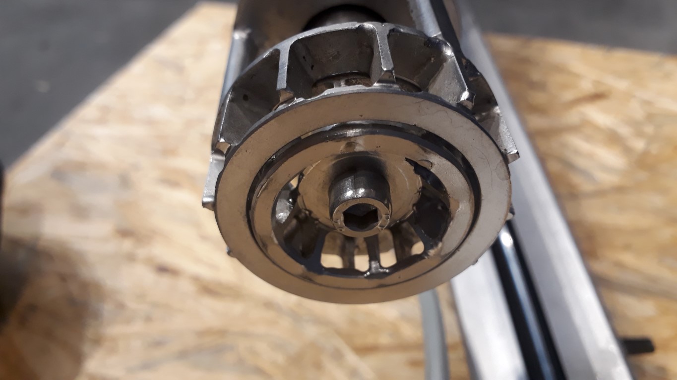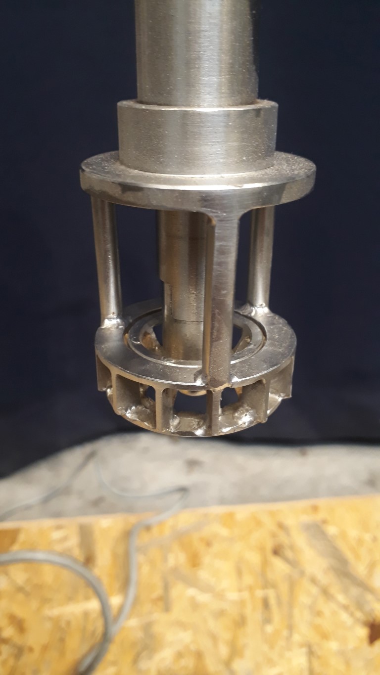 Agitator with rotor-stator principle mixer. Shaft length: 280 mm. Propellor diameter: 50 mm. Height adjustable 60 - 370 mm above base plate. Inlet for liquids around the shaft. Speed control in several steps. Total dimensions: 45 x 35 x 105 cm.