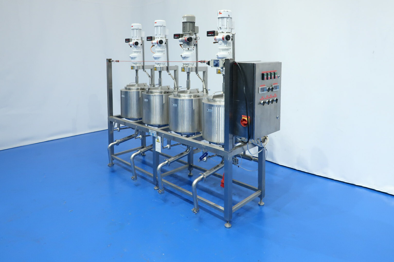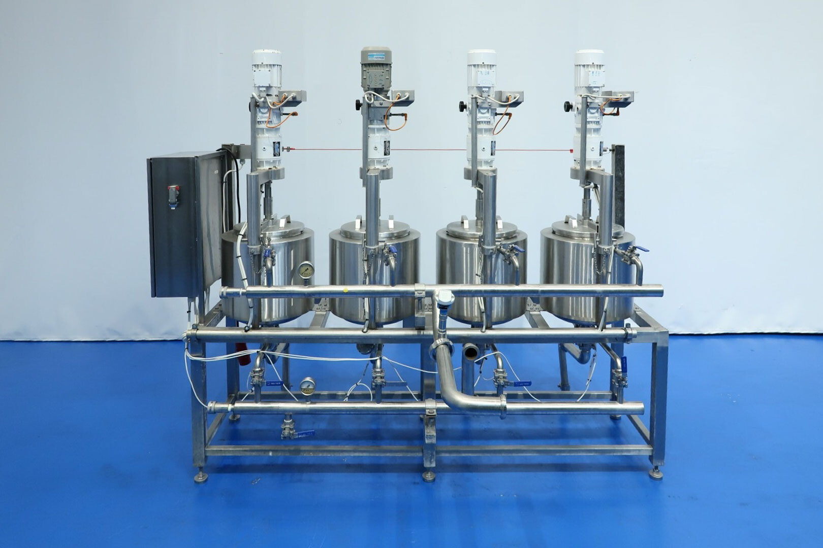 Set van 4 procestanks met U-vormige roerwerken en besturing (laboratoriumschaal)