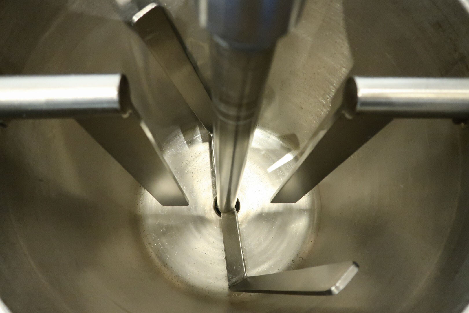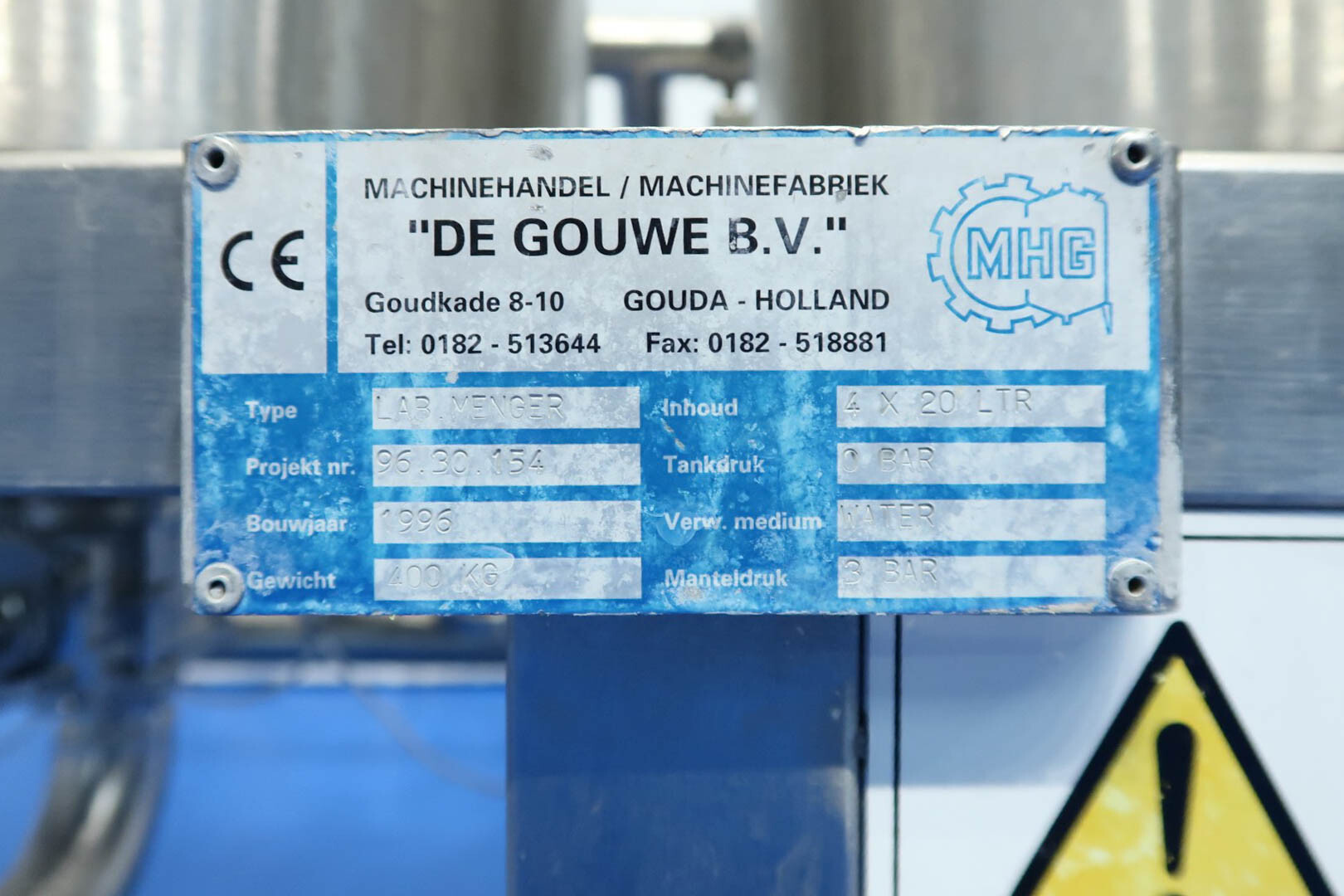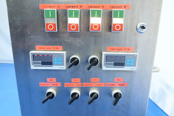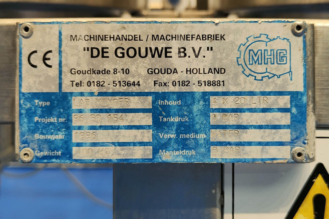 Vier dubbelwandige procestanks van elk 20 liter, samen goed voor een totale capaciteit van 80 liter. De installatie is gemonteerd op een roestvrijstalen frame met zes verstelbare poten en werd eerder gebruikt voor de productie van yoghurt. De tanks kunnen afzonderlijk of gelijktijdig werken. Elk roerwerk heeft een eigen toerentalregeling tussen 0 en circa 200 omwentelingen per minuut, handmatig instelbaar op de reductiekast. De mantel is berekend op een druk van 3 bar. Het motorvermogen bedraagt 0,55 kW per roerwerk. De installatie is voorzien van een veiligheidskoord met noodstop..