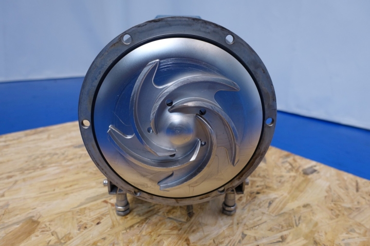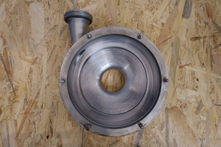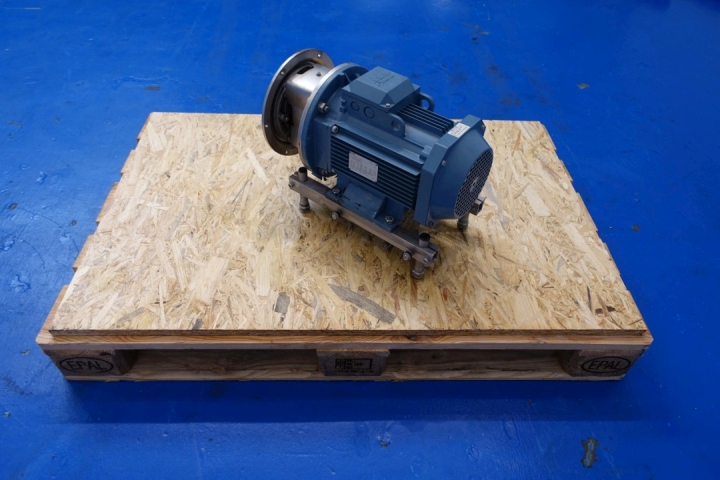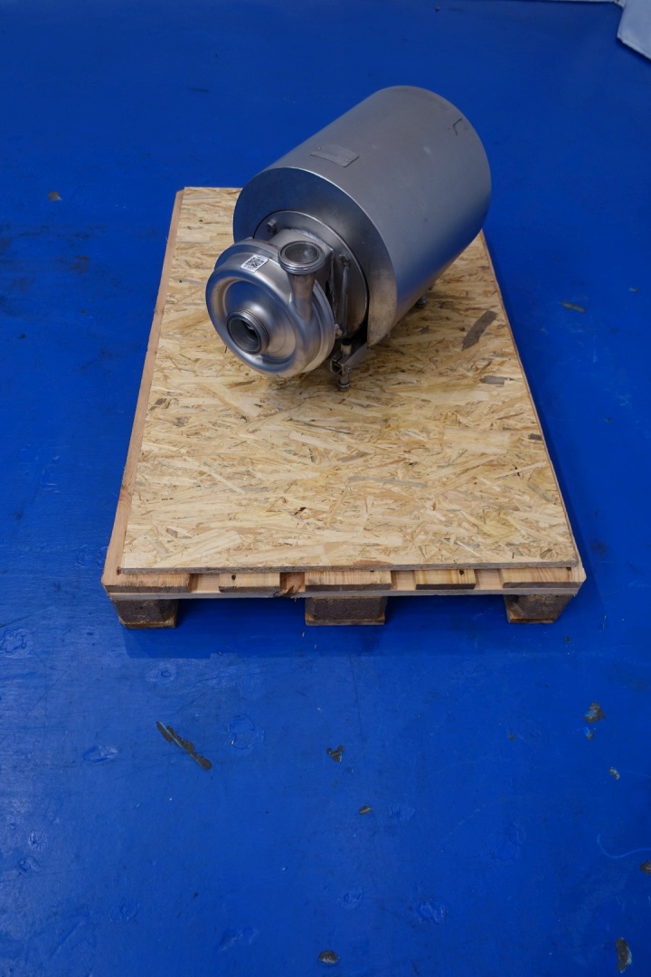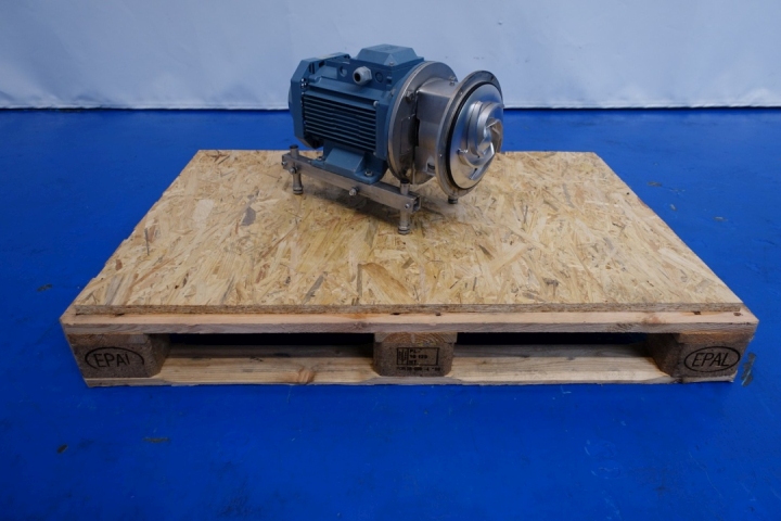 Sanitary centrifugal pump. Current motor: 4,0 kW - 7,7 A - 2.885 rpm - 50 Hz. Impellor diameter: 155 mm. Connections: (In) 2,5" SMS / (Out) 2,0" SMS. Total dimensions: 57x36x40 (lxwxh) cm - weight: 86 kg.