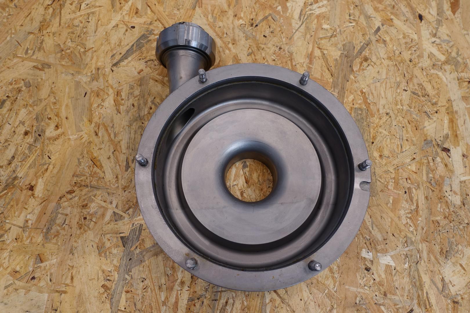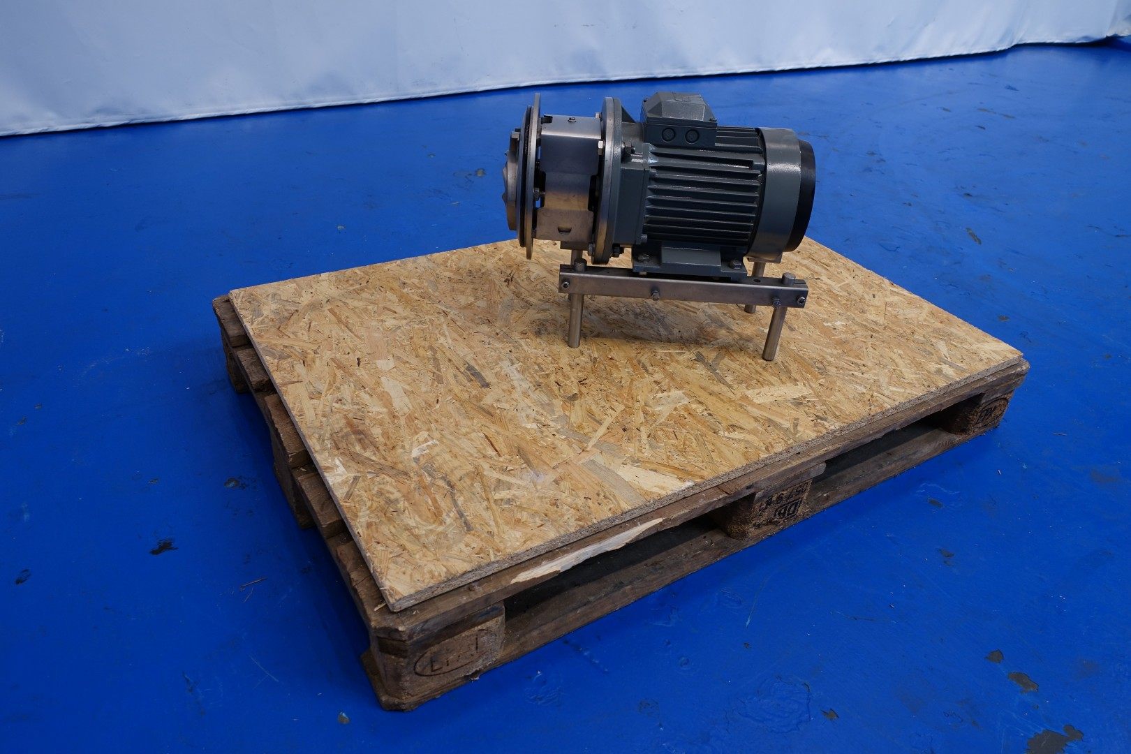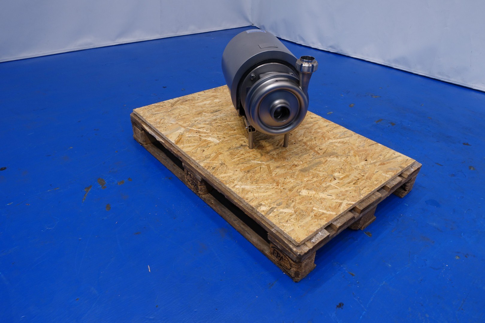 Sanitary centrifugal pump. Motor: 3,0 kW - 2.920 rpm. Impellor diameter: 163 mm. Pressure: bar. Connections: (in) 2,5" SMS / (out) 2" SMS. Dimensions: 57x33x43 (lxwxh) cm - weight: 80 kg.