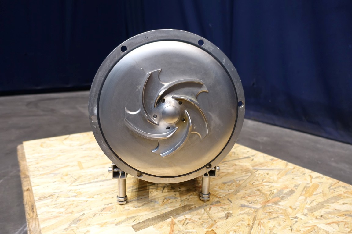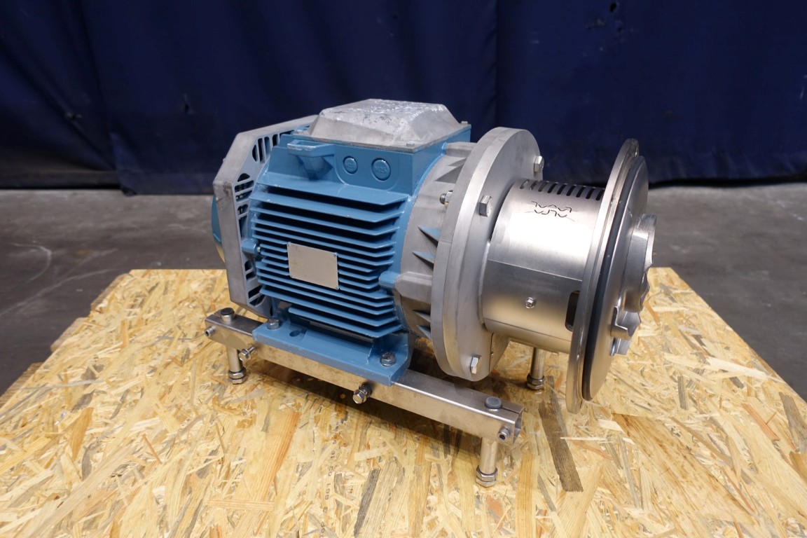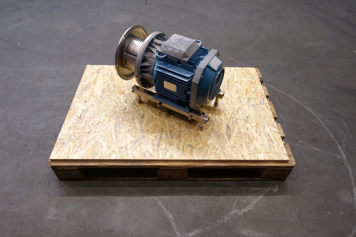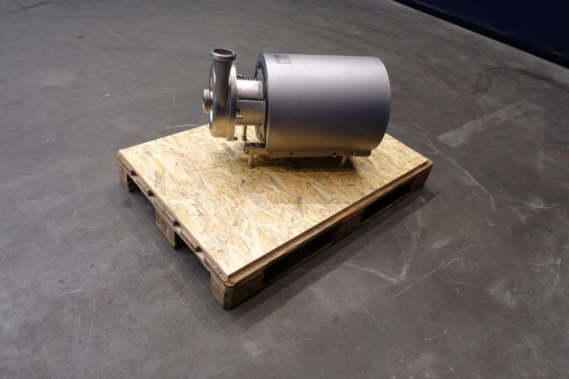 Sanitary centrifugal pump. Current motor: 7,5 kW - 15,5 A - 1.462 rpm - 50 Hz. Impellor diameter: 165 mm. Connections: 3'' / 2,5'', SMS. Total dimensions: 68x38x48 (lxwxh) cm - weight: 127 kg.
