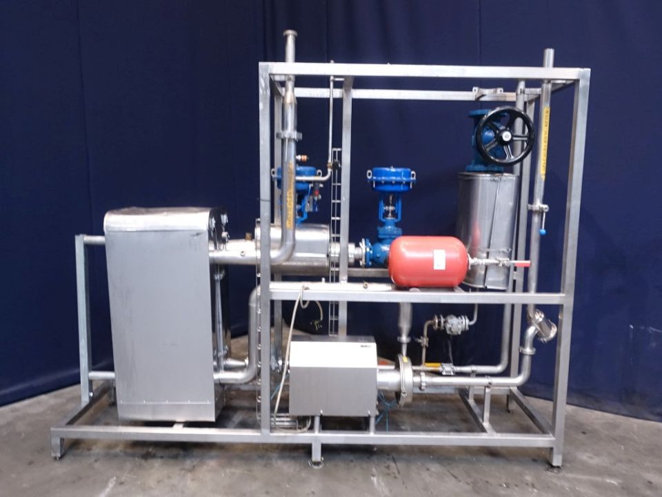 Hotwater set. PHE: Pressure: 7 bar. Beam length: 70 cm, connections: 4'', flange. Currenct configuration: 1 Section: 19 plates - Connections head: 2 up / 2 down. Including Alfa Laval centrifugal pump, year 2009. Type: SOLIDC 2/175 SSS. Motor: 5,5, kW serial number: 118605. Including piping and valves. Total dimensions: 280 x 75 x 235 cm.