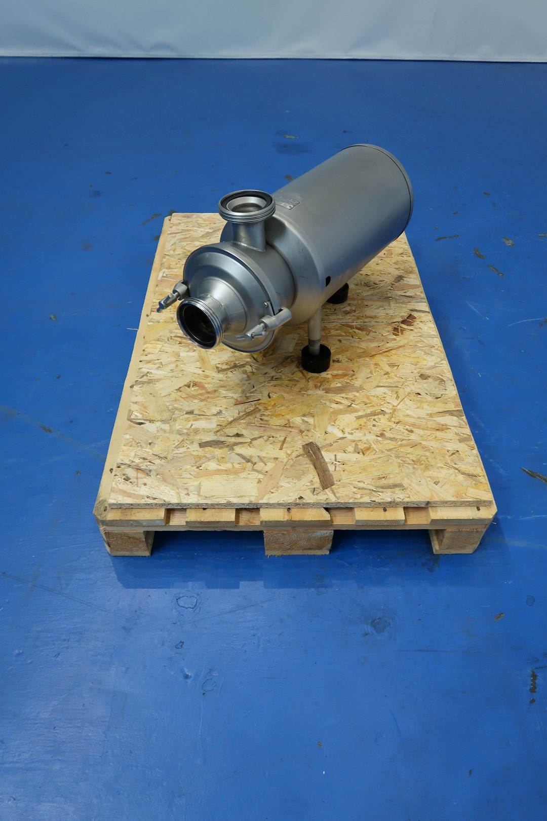 Sanitary centrifugal pump, self suction. motor: 4,0 kW - 8,5 A - 1.430 rpm - 50 Hz. Impellor diameter: 200 mm. Pressure: 0,5 bar. Connections: (in) DN80 Din / (out) 2,5" Din. Total dimensions: 70x27x43 (lxwxh) cm - weight: 113 kg.