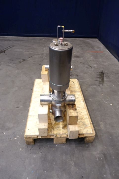 Mixproof valve with seat lift. 4-Way. Butterfly stop valve between flanges. Pneumatic activated. Diameter: 4" Weld-Weld / 4'' Weld-Weld. Single position sensors.