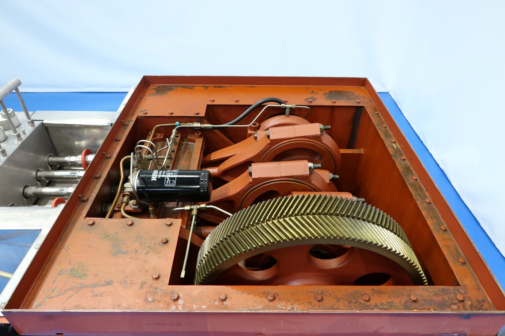 High pressure homogeniser with Ball valve for viscose products. 2 stage(s) with hydraulic pressure control. 5 Pistons, piston diameter: 38 mm (1,5") and stroke: 115 mm. Stainless steel cladded. Motor power: 55 KW and maximum pressure in current confirguration with this motor 280 bar. with frequency converter. Overpressure valve. Inlet filter. Manometer on in and outlet. Electronic pressure transmitter after 1st stage and electronic pressure transmitter with manometer after 2nd stage. Flowswitch on cooling water. Pulsation dempers with membrane on inlet and outlet. Sample crane before and after homogenizing. Connections, In/Out: 2,5" Din. Total dimensions: 190x130x147 (lxwxh) cm - weight: 2.666 kg.