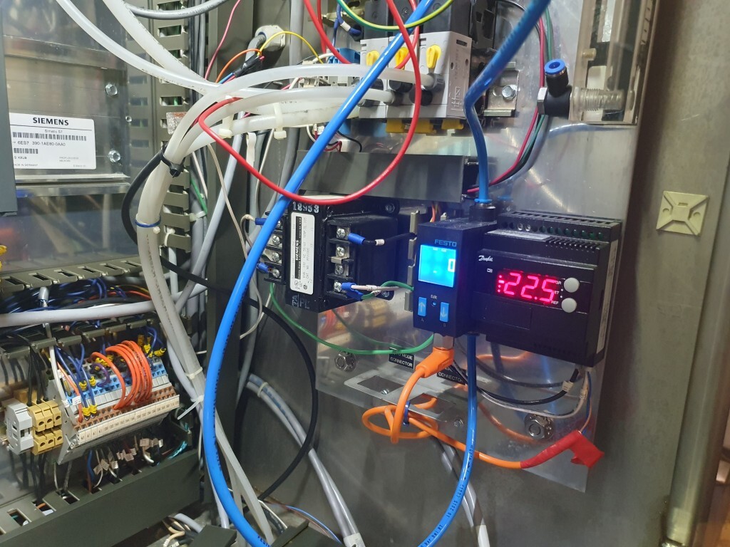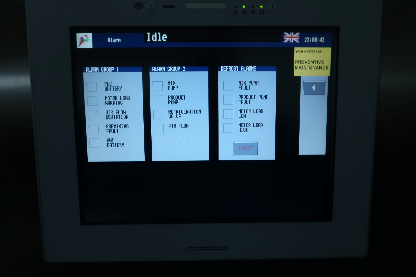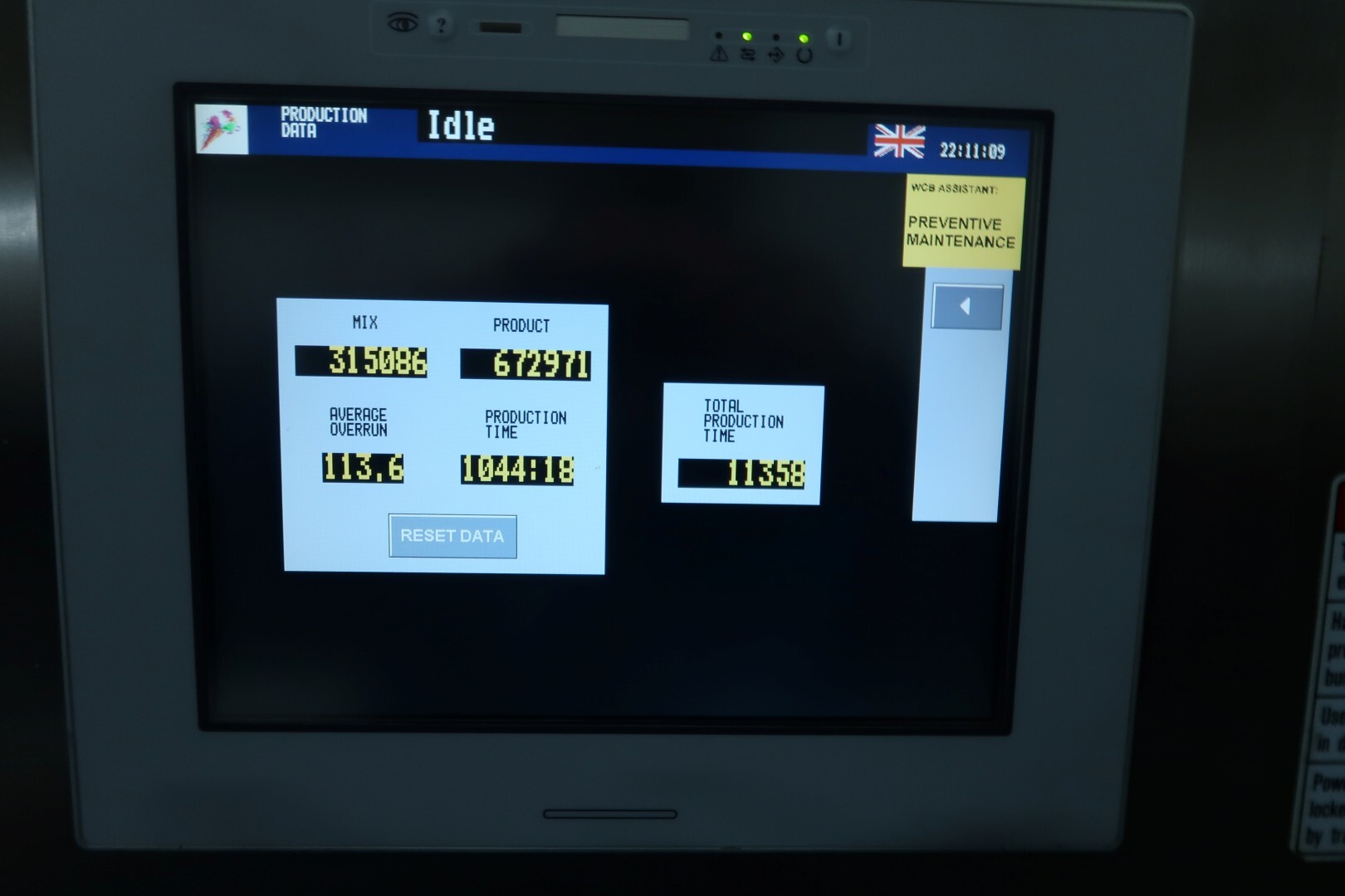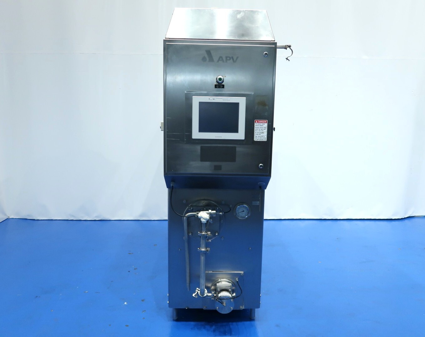Continue ijsmachine met één cilinder, nieuwe schrapers en een ammoniak (NH₃) koelsysteem. Voorzien van pompen en een Siemens Simatic S7 PLC met touchscreen bediening. Recent onderhoud uitgevoerd aan dasher, cilinder en pompen (rapport beschikbaar). Aansluitingen: productpomp 2" Tri-Clamp, mixpomp 1,5" Tri-Clamp. Nominale capaciteit gebaseerd op mix met 10,5% vet, 37,5% droge stof en standaard suiker-/stabilisatorsamenstelling. Inlaattemperatuur 4,4°C, uitlaat -5,5°C. Koelcapaciteit bij -33°C.
