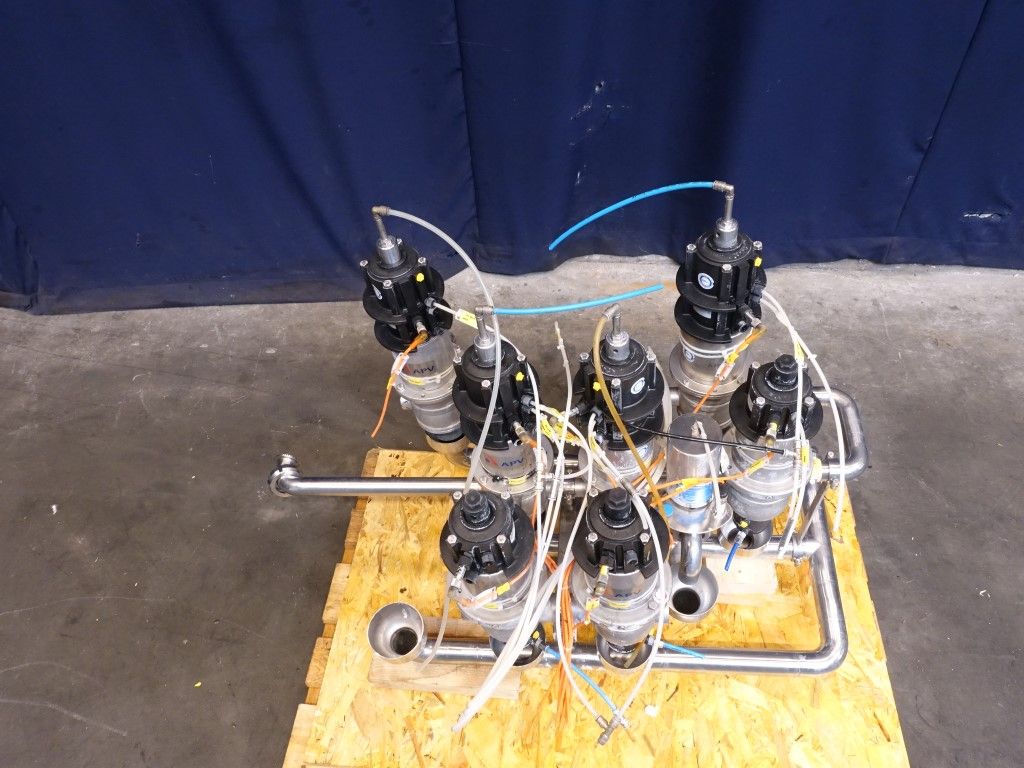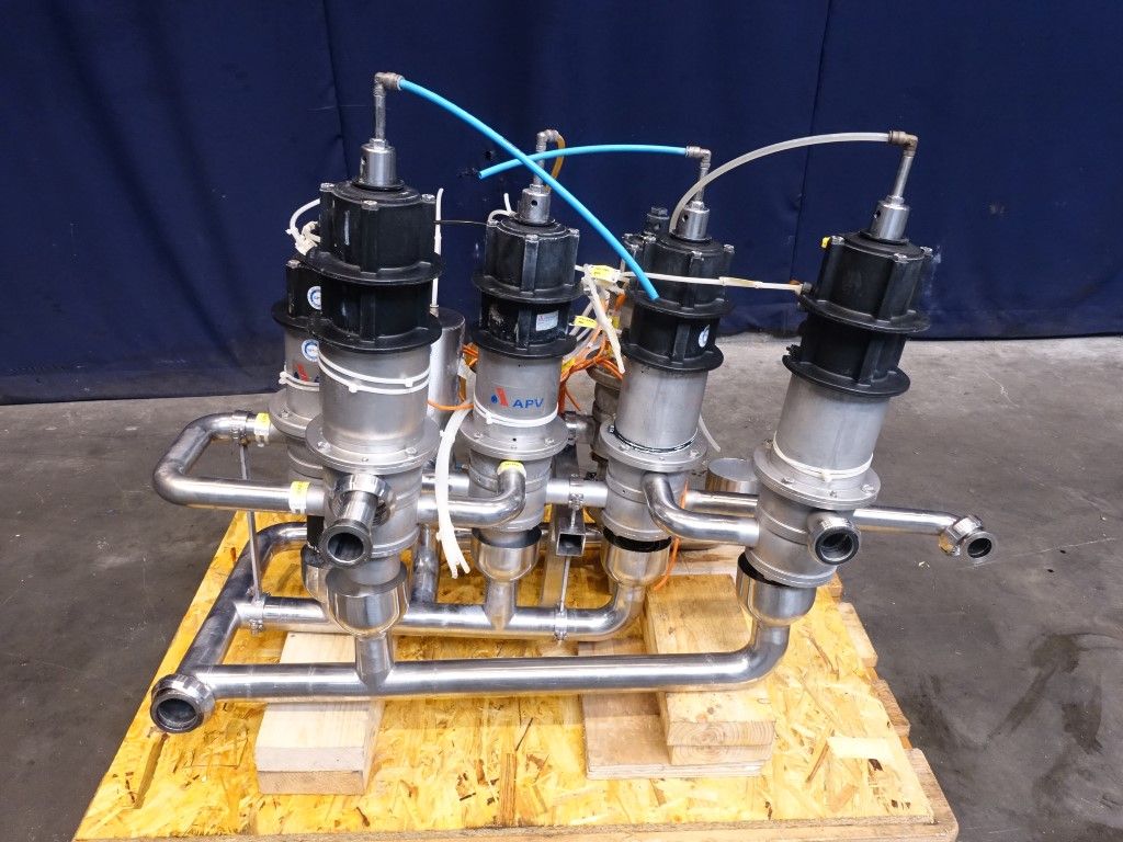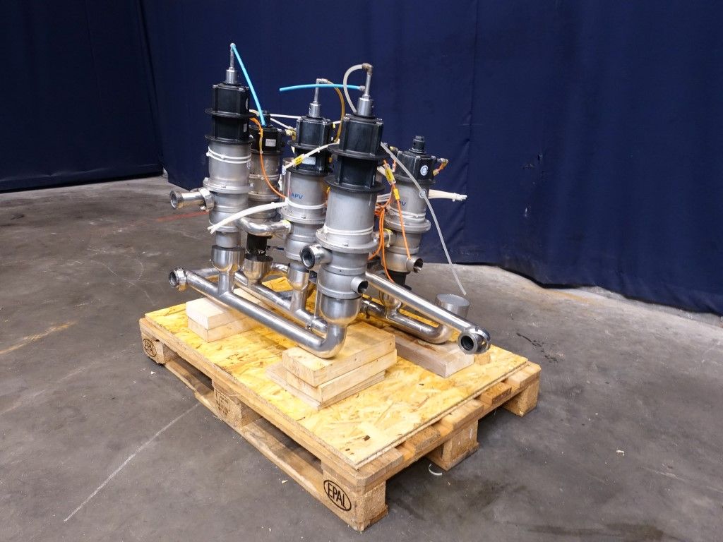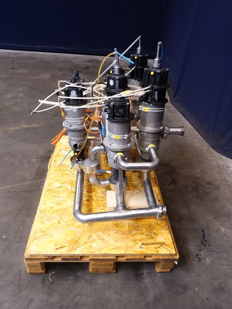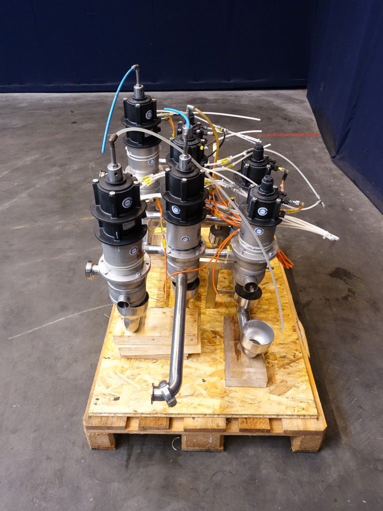 2 x D33 1,5'' - 4 way mixproof double seat valves. 2 x D33 1,5'' - 3 way mixproof double seat valves. 1 x D33 1,5'' - 2 way mixproof double seat valves. All valves welded together.