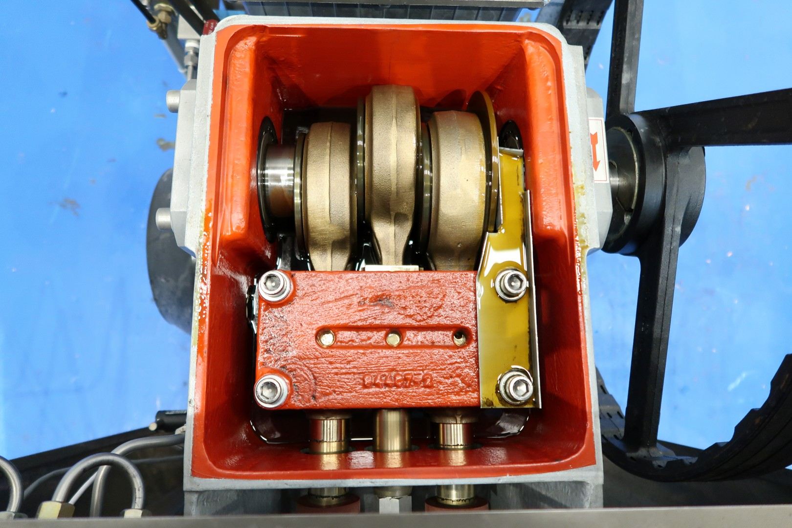 High pressure laboratorium homogeniser. 2 Stages with hydraulic pressure control. Ball valves for viscose products, 3 Pistons, piston diameter: 18 mm and stroke: 38mm. Connections: 1" Clamp. Motor power: 5,5 kW and maximum pressure in current confirguration with this motor up to 400 bar (5,800psi). oil circulation pump Built in control panel. with manual bypass valve. Manometer.Flowswitch on cooling water. Total dimensions: 144x113x143 (lxwxh) cm - weight: 482 kg.