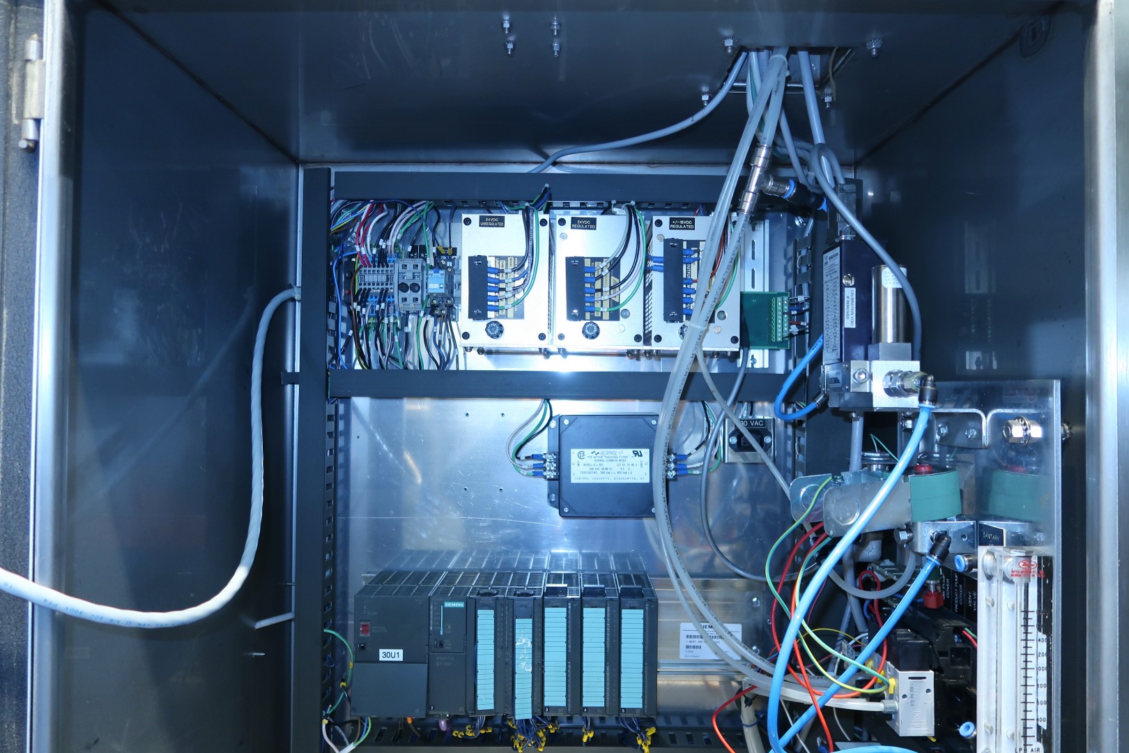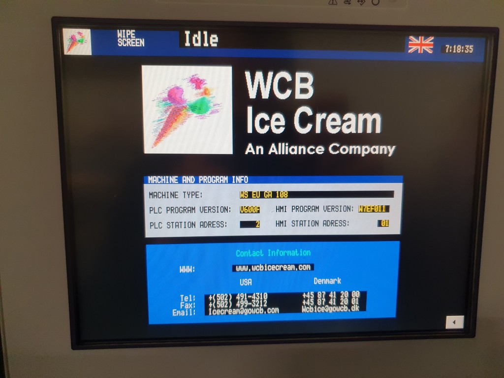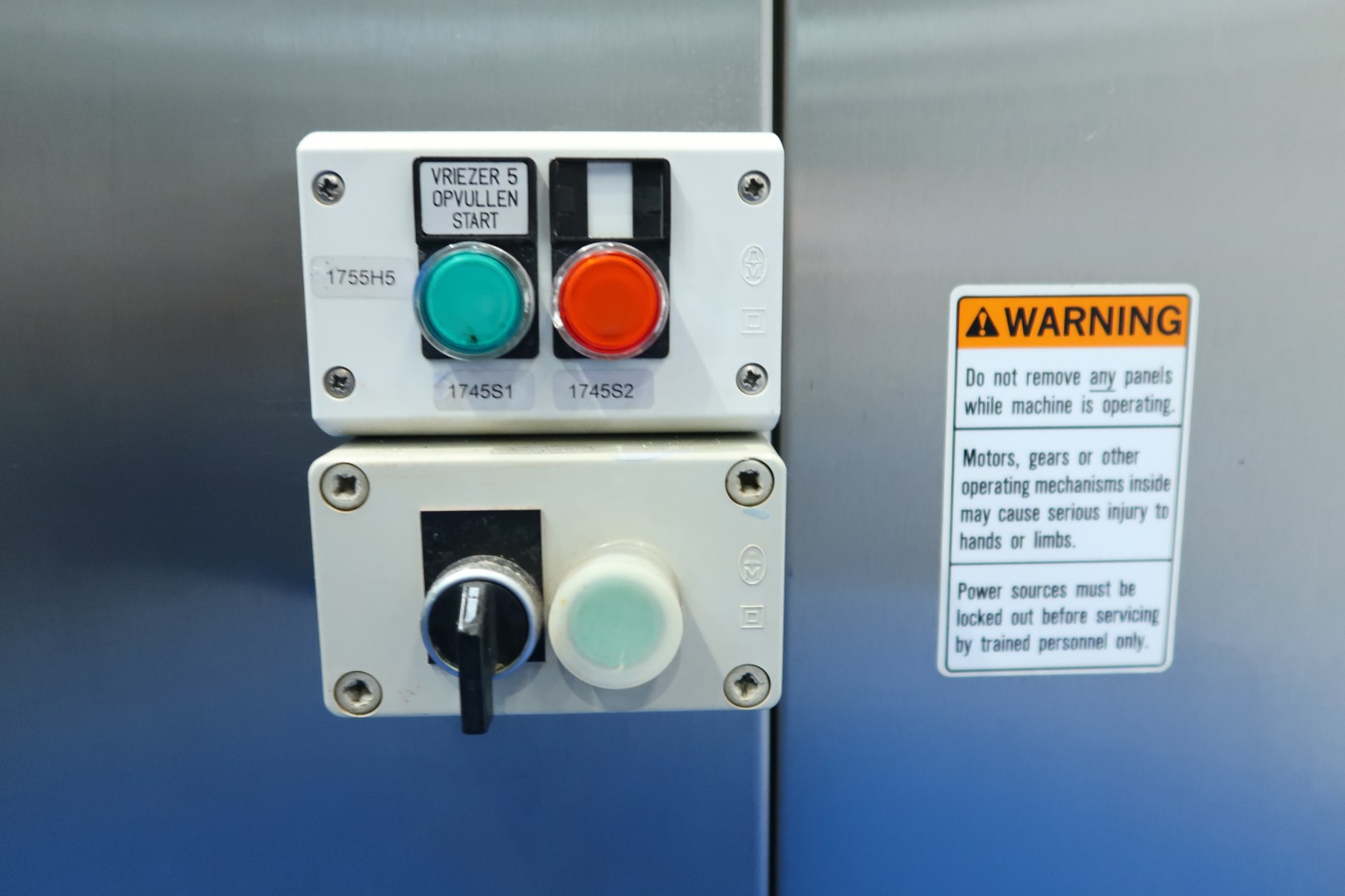Continuous freezer for the production of ice cream . 1 Cylinder with new scrapers. System Amoniac (NH3) cooled. Pumps. Control panel on machine with PLC (Siemens Simatic S7) with Touch screen operation panel. Recent maintenance to dasher/cilinder and pumps (information available). Connections: productpump in/out 2" Tryclamp - mix pump in/out 1,5" Tryclamp. Documentation available. Capacity: 800ltr/h mix input and with up to 100% overrun 1.600ltr icecream on output. Dimensions: 240x80x230 (lxwxh) cm - weight: 1.153 kg.