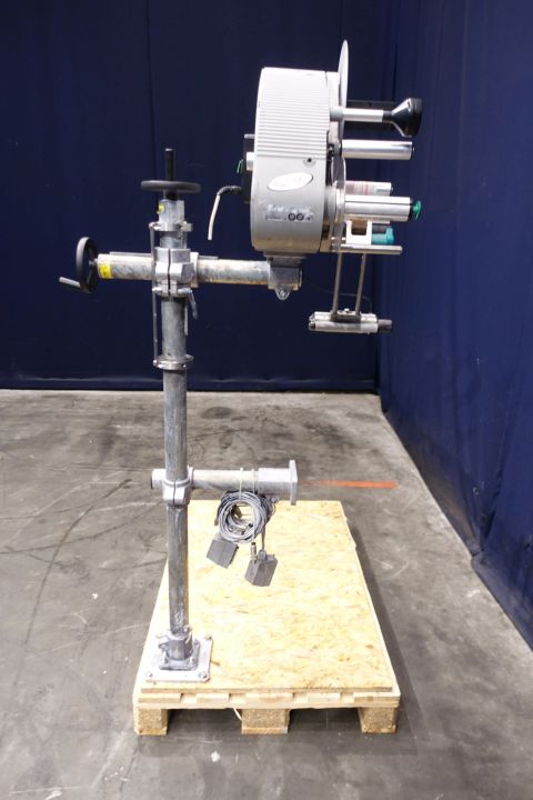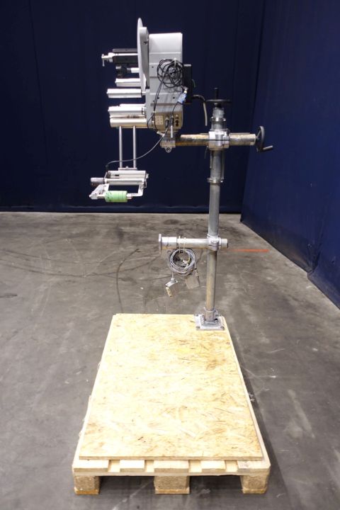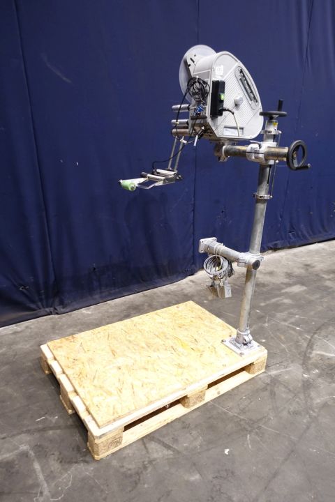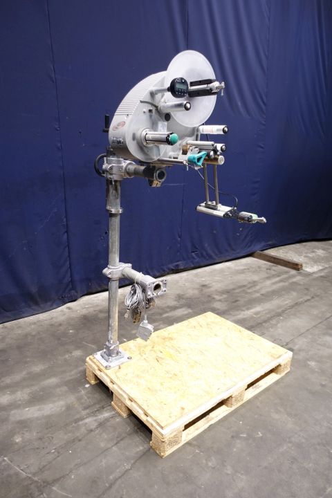 Labeling machine for selfadhesive lables. 1 Side top. Has been runnig with a Miromatic MDA 2 filling machine (STN15324) and with other labeller (STN15326). Total dimensions: 120 x 80 x 190 cm. Weigth: 107 kg. Documentation available: operational manual (in German and English), technical manual (in English), diagrams and spare parts diagrams-list (in English).