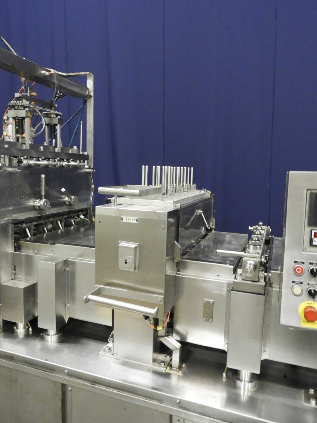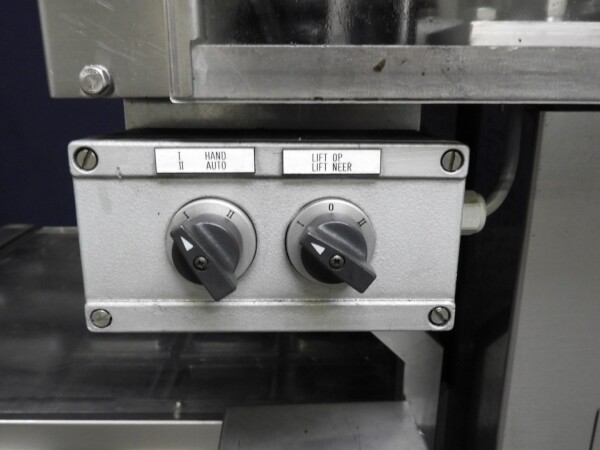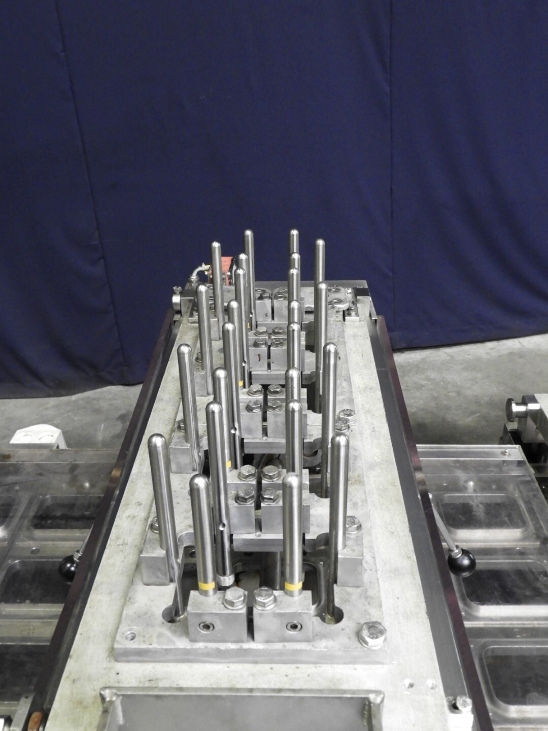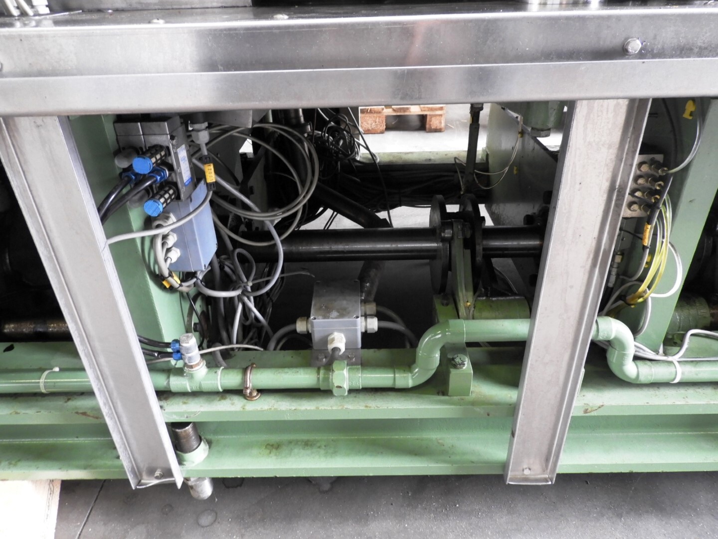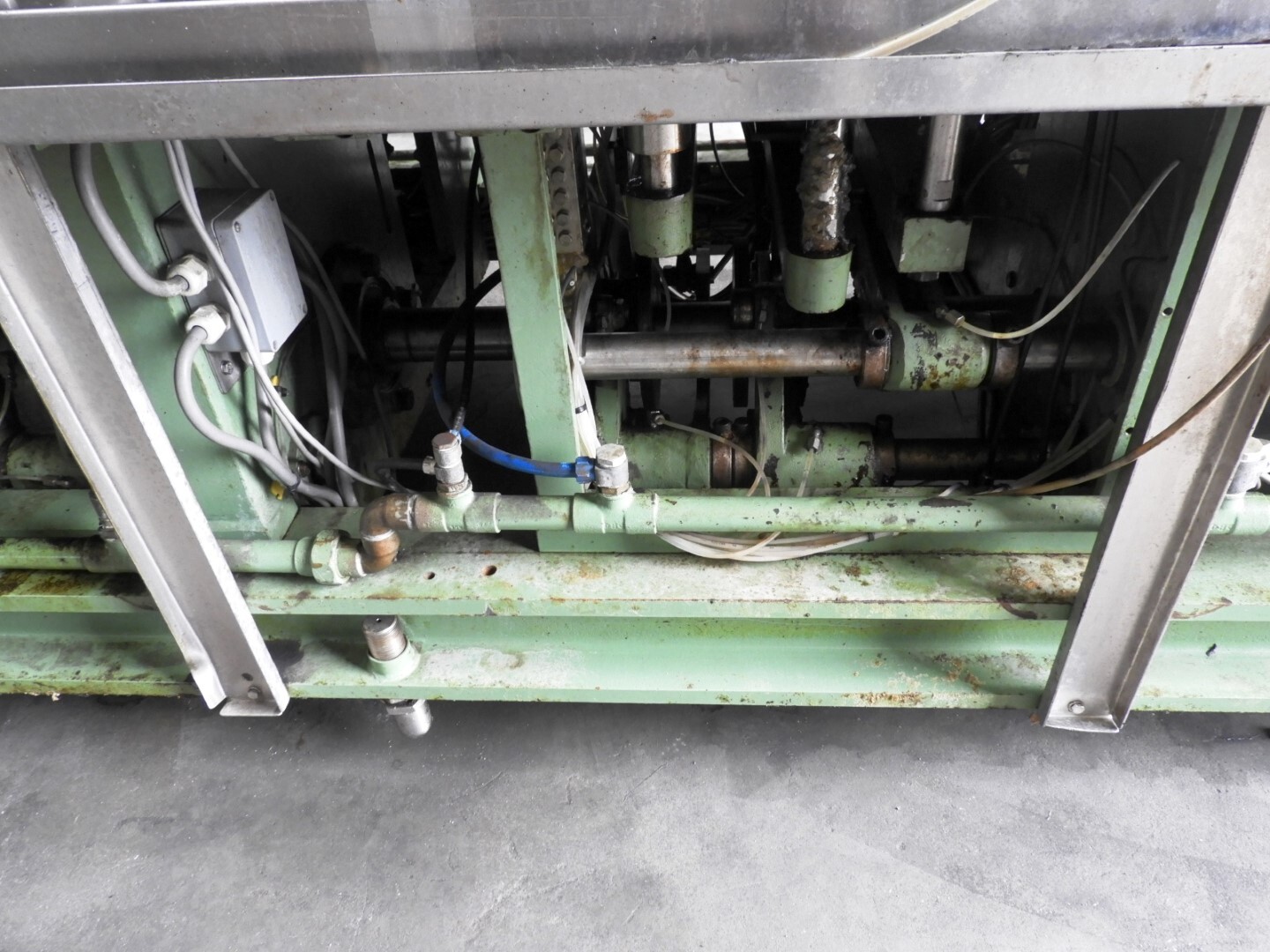 4 banen liniaire bekervuller met 4 vulkoppen voor margarine / halvarine / boter. De kopjes bevinden zich in de lengte richting van de machine. Stations: ontstapeling van de beker met automatisch bekertoevoersysteem, detectie van geen en dubbele bekers, hoofddoser (200-300 ml) voor margarine / boter / halvarine-producten met directe verbinding, verscherving van tussenlegvel door vacuüm (voorgevormde tussenelegvel papieren), na duwstation, druk- op deksel met automatisch dekselinvoersysteem en uitvoer door dubbele rijstrook loodrecht op de machine zonder transportband. Machine heeft plexiglasbeschermers en heeft een centraal smeersysteem. Exclusief bedieningspaneel. Geen documentatie beschikbaar.