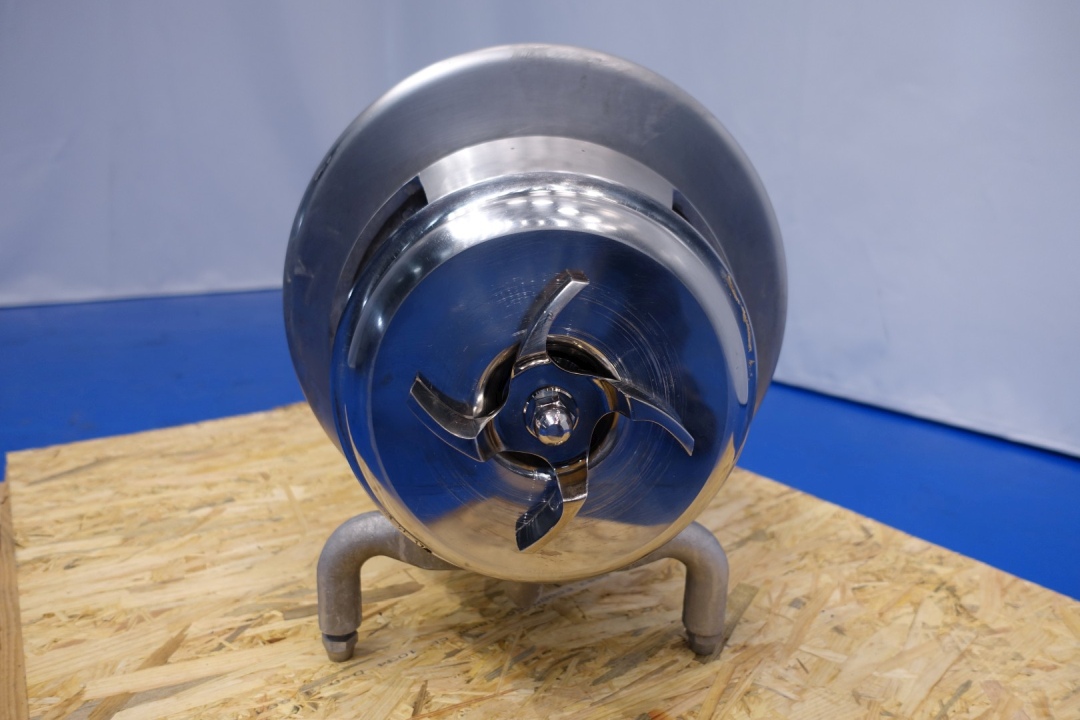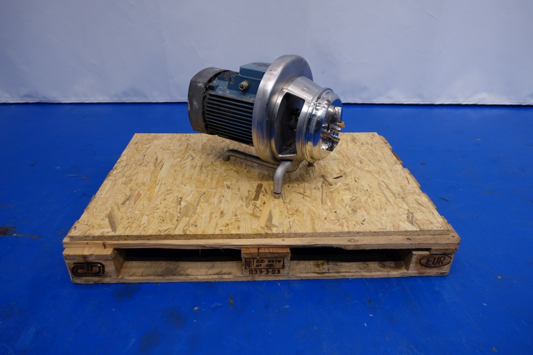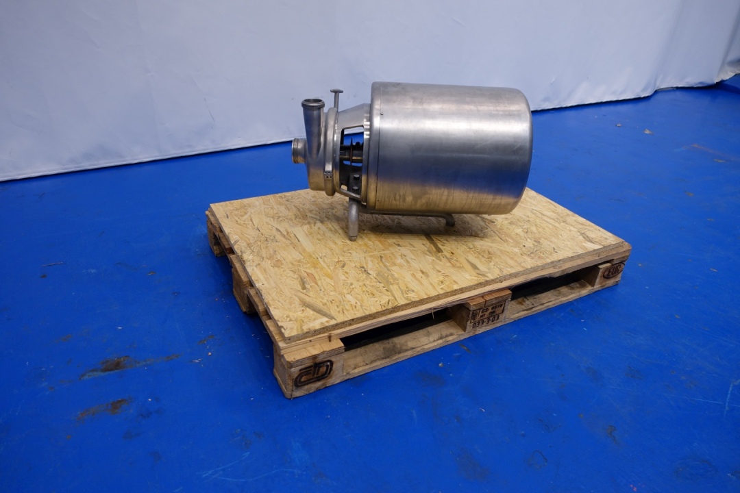 Sanitary centrifugal pump. Current motor: 5,5 kW - 11,3 A -2.880 rpm. Impellor diameter: 150 mm. Connections: (in) 3'' SMS / (out) 2,5" SMS''. Dimensions 70x37x45 (lxwxh) - weight: 113 kg. Capacity estimated