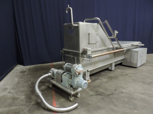 RVS gesloten botersilo met pneumatische sluitkap en 2 vijzels. 1 Motor met reductor. CIP reinigbaar met sproeibollen. 4 "DIN-uitvoer voor boterpomp. Inclusief boter pomp (Egli, EBP53 112-147-K) met variabele snelheid en CIP-retourpomp, APV Puma. Inclusief deel van documentatie voor boterpomp. Exclusief Bedieningspaneel.