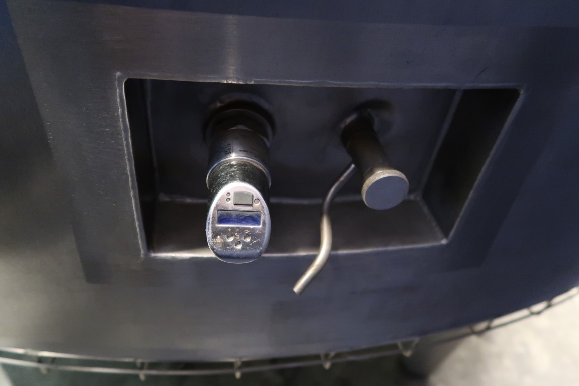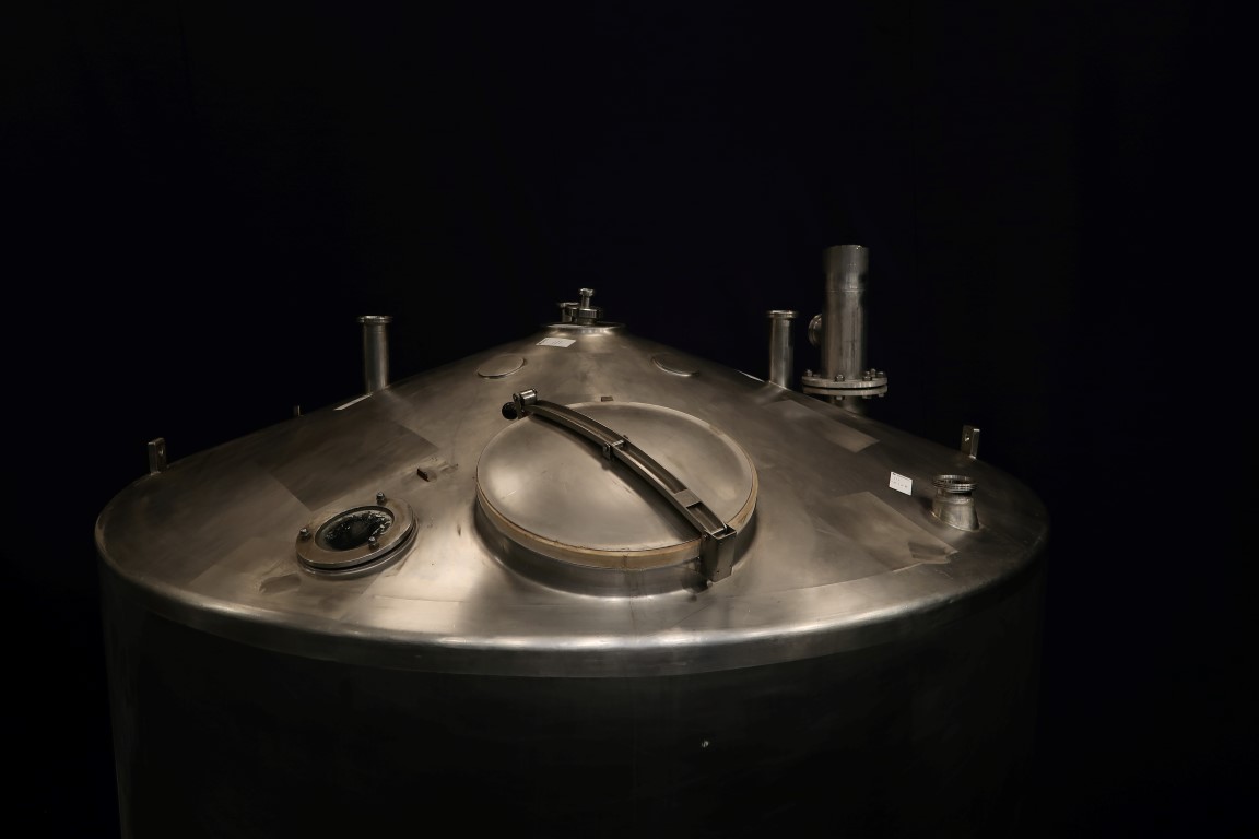 Vertical insulated cip tank. Previously used for lye. Nominal volume: 10.000 liter. Multiple connections in top and bottom. 2x Manual buttefly valves on outlet. With sample valve. 1 x Sight glass in top. 1 x E&H electronic pressure sensor/transmitter. 1 CIP spray bowl. Manhole in top, round Ø 47 cm. 3 Adjustable feet with with extension legs. Inside dimensions of tank: Ø 230 cm and cilindrical height 230 cm. interior needs cleaning. Total dimensions: Ø ca. 240 cm x h. 370 cm (without extension legs).