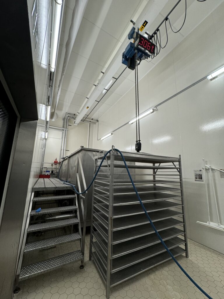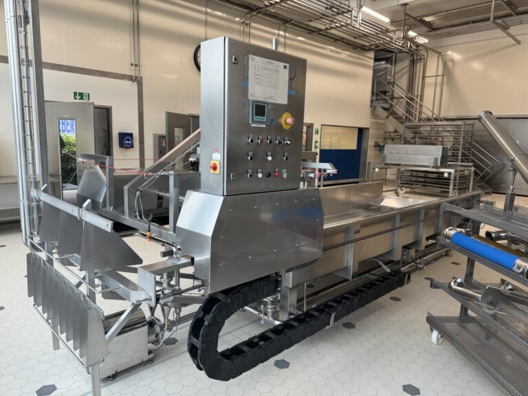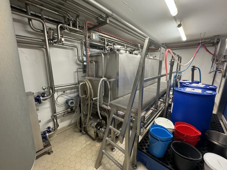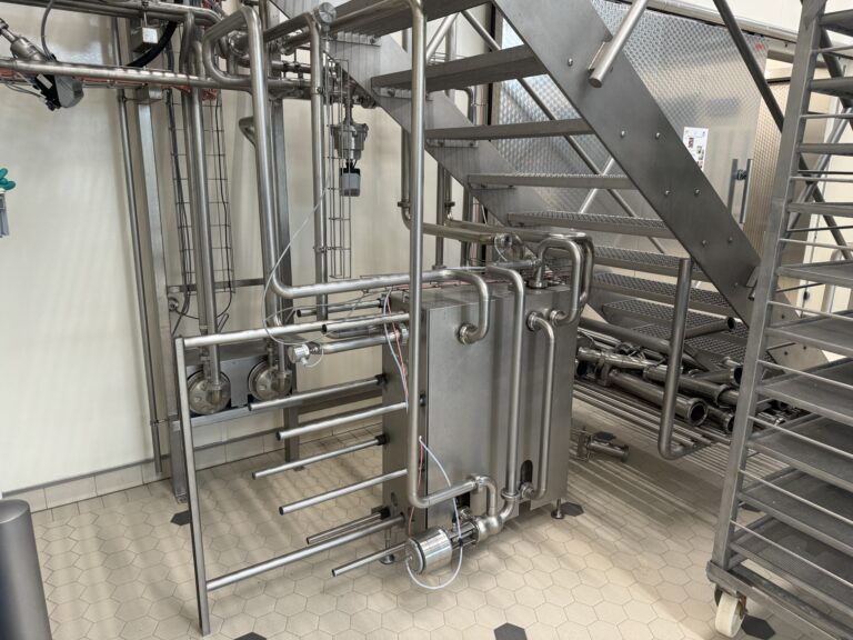 Complete production line for semi hard cheeses like Gouda, Maasdam Edam. Line was primarily used for demonstrations, so still in excellent condition. Controls: Siemens S7 and color touchscreen HMI operation panel. Cheese shape and Weight, round ‘Wheel’ shape: 4–5 kg and 10–12 kg. Batch size: 4.000liter. Daily capacity: 2 batches (8.000 liter) in a 1 shift or up to 4 batches (16.000 liter) in 2 shifts. Main components: 1.) Raw milk reception (tanks excluded), 2.) Milk pasteuriser, 3.) Cheese vat (4.000 ltr), 4.) Prepressing vat, 5.) Final Presses, 6.) CIP-system, 7.) Brine system, 8.) Mould cleaning, 9.) Cheese ripening racks, 10.) Set of moulds and 11.) Controls.