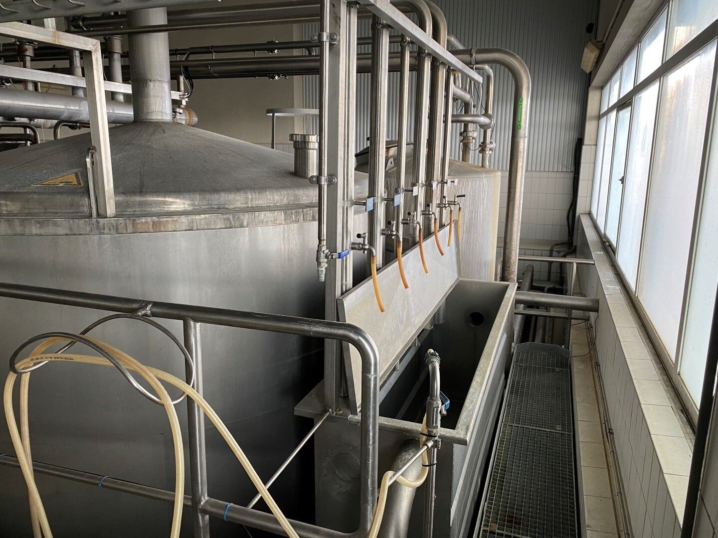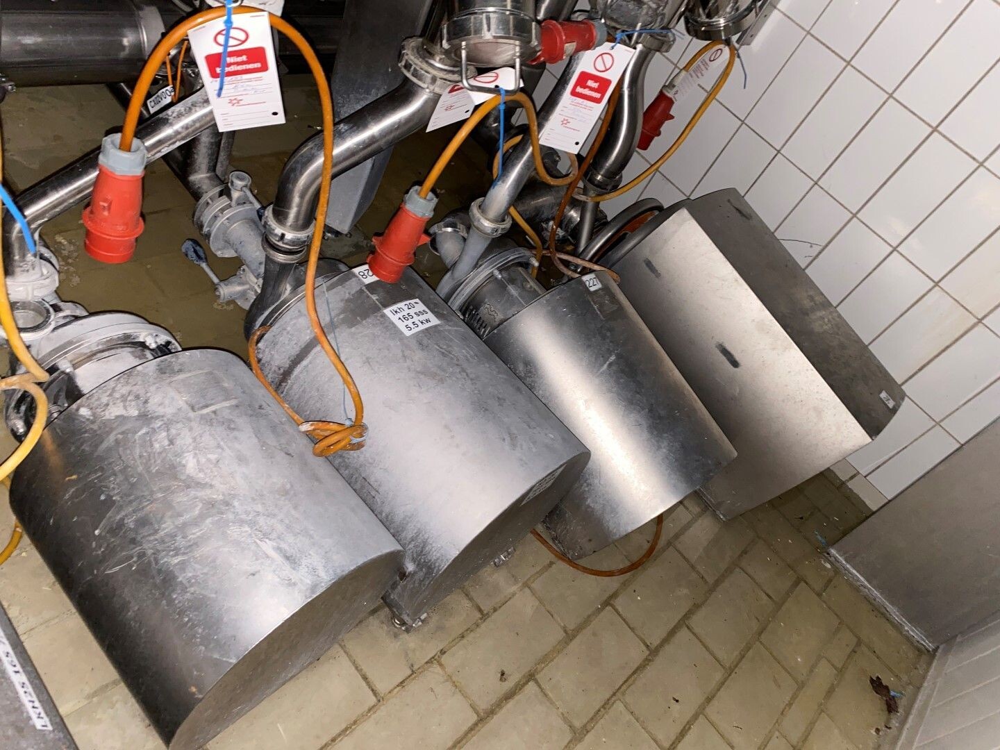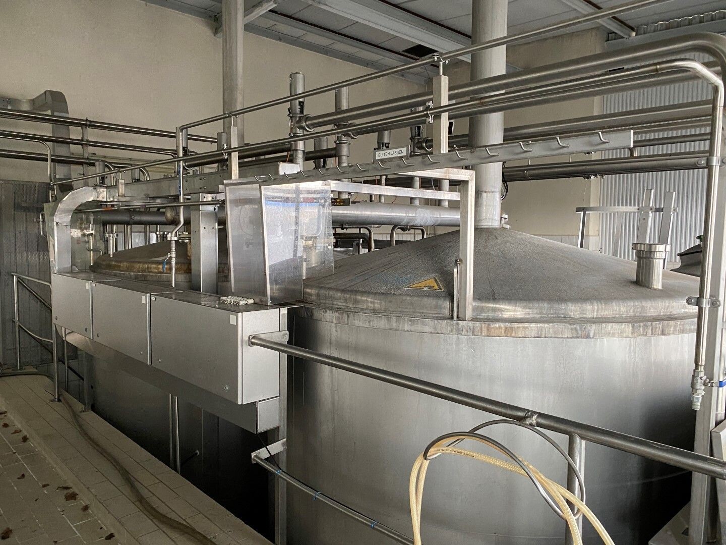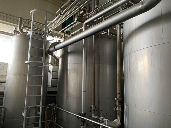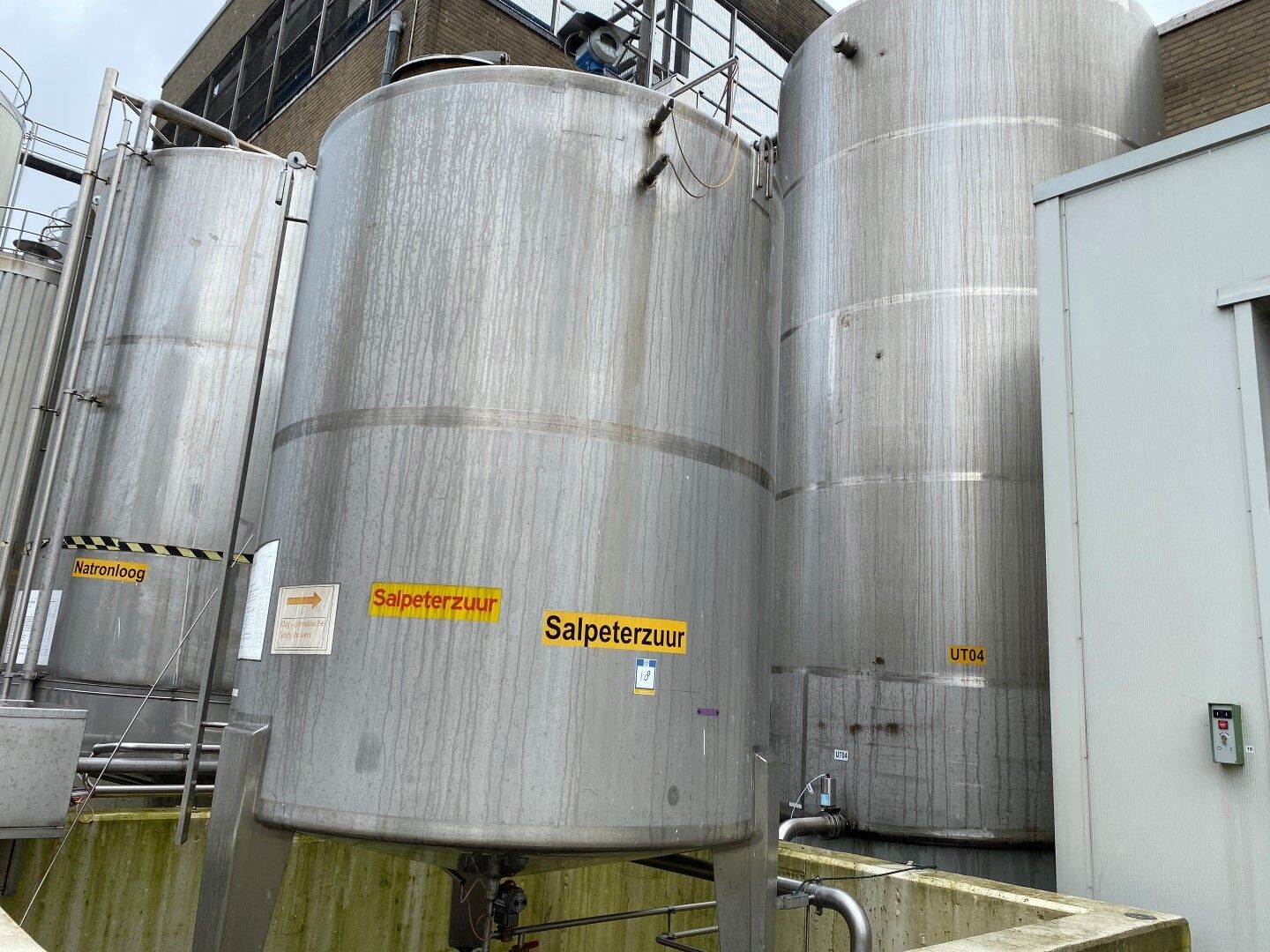 Complete CIP Unit. Bestaande uit: een voorspoel watertank, een loogtank, verwarmd door stoom, inclusief recirculatiepomp. Zuurtank, verwarmd door stoom en inclusief recirculatiepomp. Spoeltank voor schoon water en een water verzameltank. Compleet met al het leidingwerk en ca. 52 kleppen, merk Alfa-Laval model: SRC. Elke tank heeft zijn eigen mangat en kijkglas. Inclusief RVS looprek en trap om de tanks van bovenaf te bekijken. 6 uitgaande leidingen en retourleidingen naar de fabriek, elke leiding heeft zijn eigen pomp (5x 7,5 en 1x 5,5 kW vermogen), merk: Alfa- Laval, model: LKH / FM3. Externe I-O-schakelkast. Optioneel in deze aanbieding: een ontvangst-, opslag- en distributiesysteem voor loog- en zuurconcentraat. Toelichting optioneel systeem: een vrachtwagen brengt het concentraat waarna het in de concentraattank wordt gepompt voor verdere distributie naar de CIP unit of naar andere plaatsen in de fabriek. Bestaande uit een afsluitbare RVS ontvangst box, tank- en verdeelpomp.