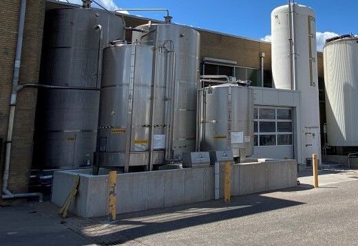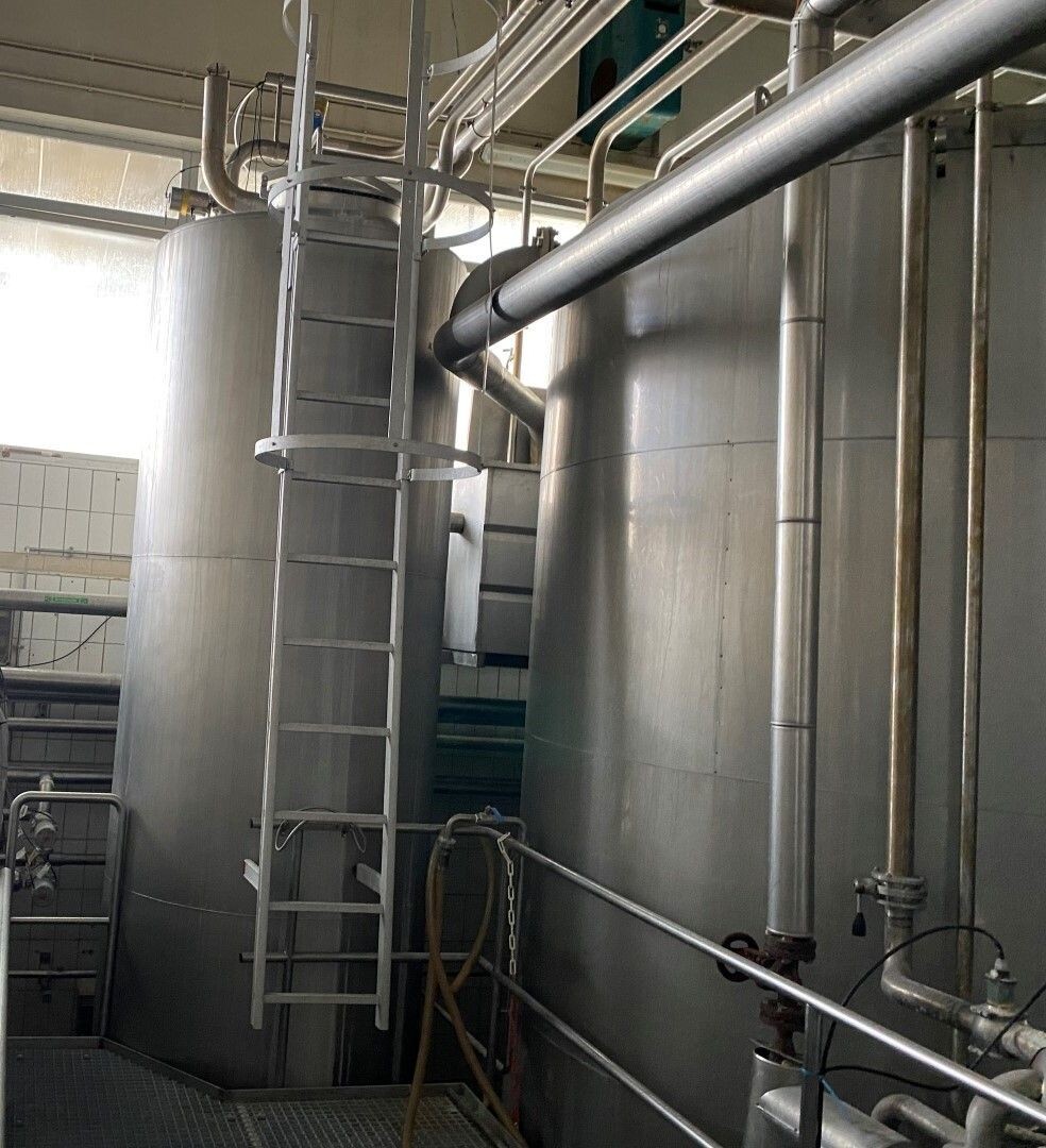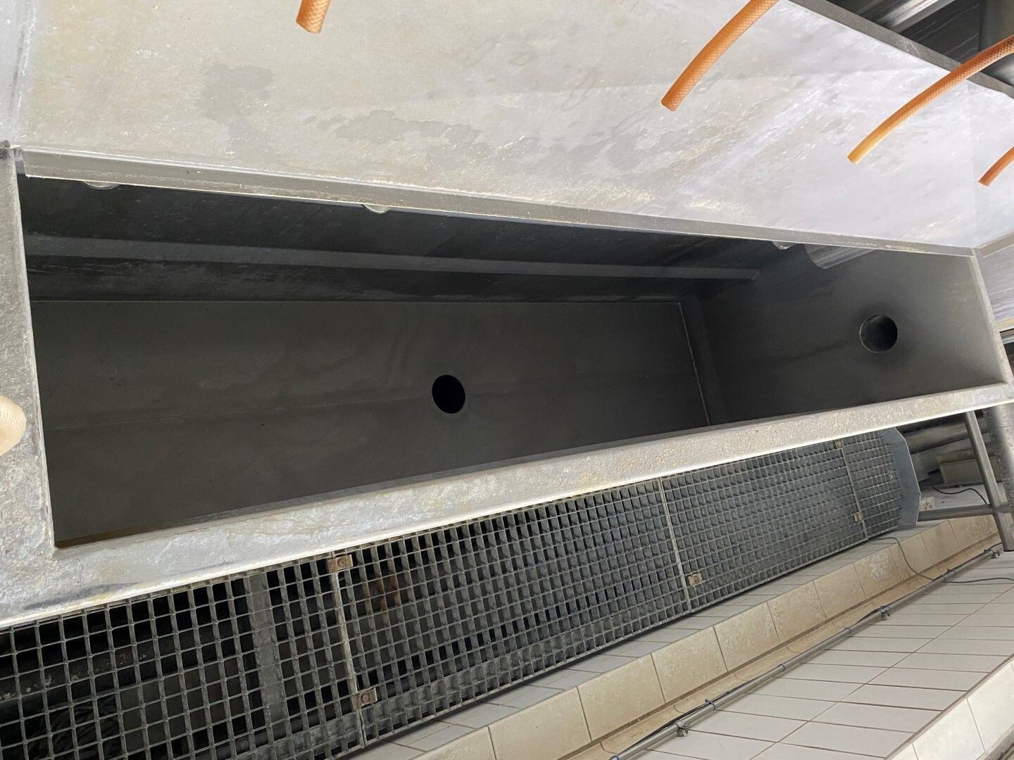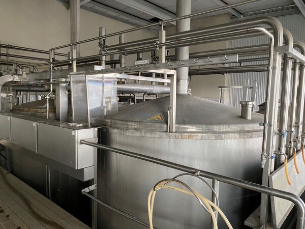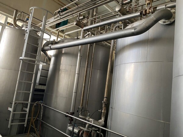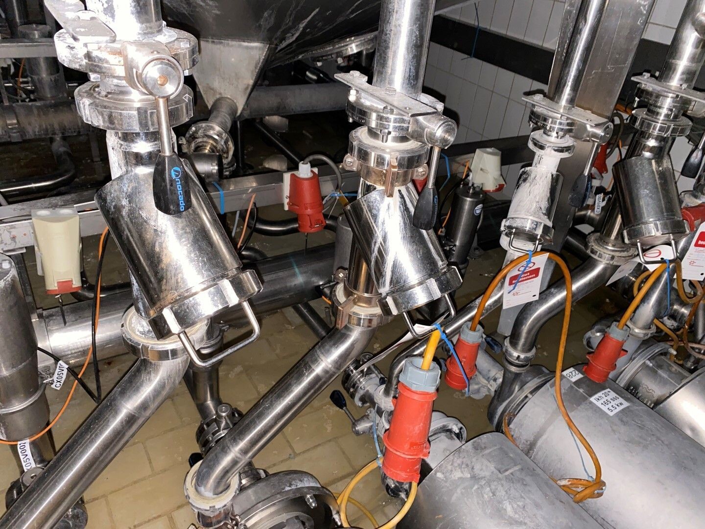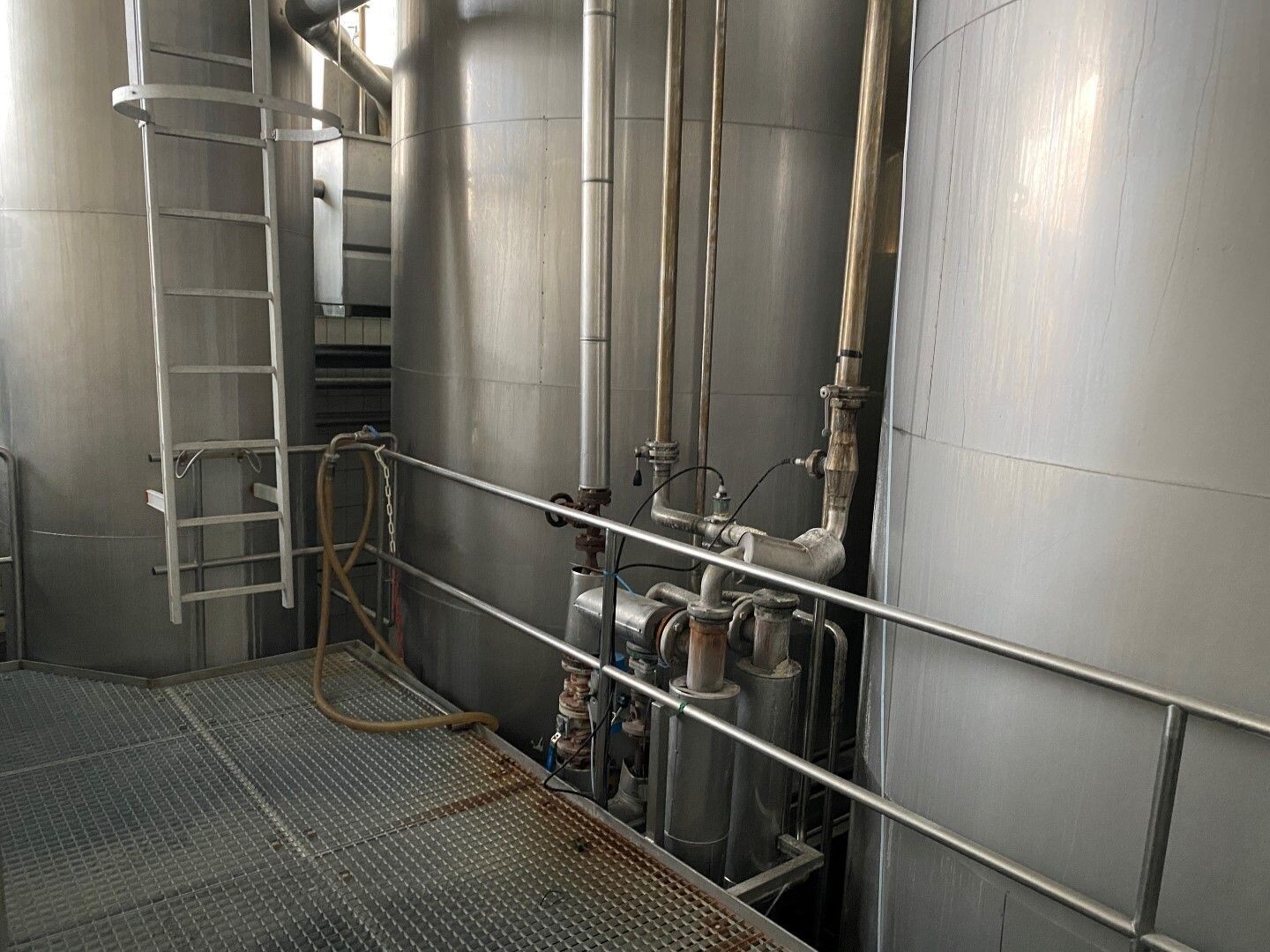 Complete CIP Unit. Bestaande uit: een voorspoel watertank, een loogtank, verwarmd door stoom, inclusief recirculatiepomp. Zuurtank, verwarmd door stoom en inclusief recirculatiepomp. Spoeltank voor schoon water en een water verzameltank. Compleet met al het leidingwerk en ca. 52 kleppen, merk Alfa-Laval model: SRC. Elke tank heeft zijn eigen mangat en kijkglas. Inclusief RVS looprek en trap om de tanks van bovenaf te bekijken. 6 uitgaande leidingen en retourleidingen naar de fabriek, elke leiding heeft zijn eigen pomp (5x 7,5 en 1x 5,5 kW vermogen), merk: Alfa- Laval, model: LKH / FM3. Externe I-O-schakelkast. Optioneel in deze aanbieding: een ontvangst-, opslag- en distributiesysteem voor loog- en zuurconcentraat. Toelichting optioneel systeem: een vrachtwagen brengt het concentraat waarna het in de concentraattank wordt gepompt voor verdere distributie naar de CIP unit of naar andere plaatsen in de fabriek. Bestaande uit een afsluitbare RVS ontvangst box, tank- en verdeelpomp.