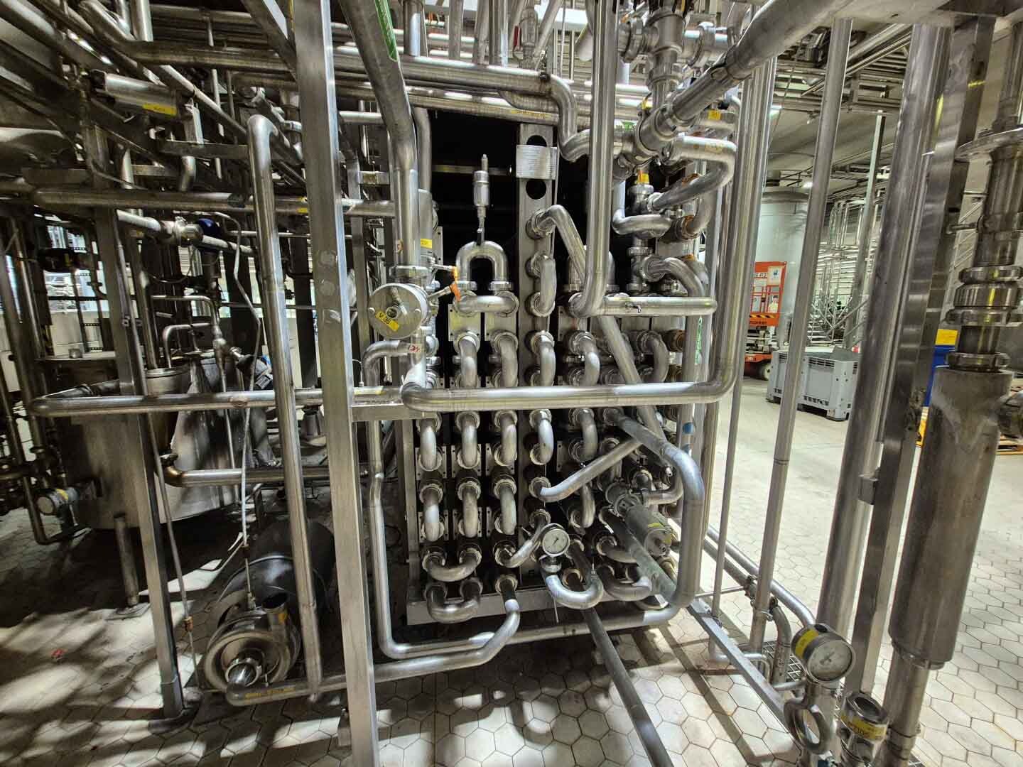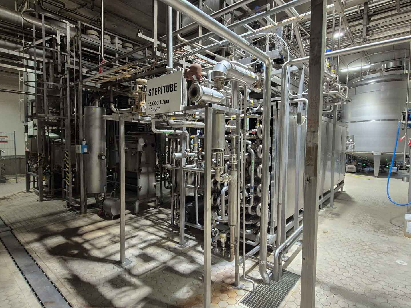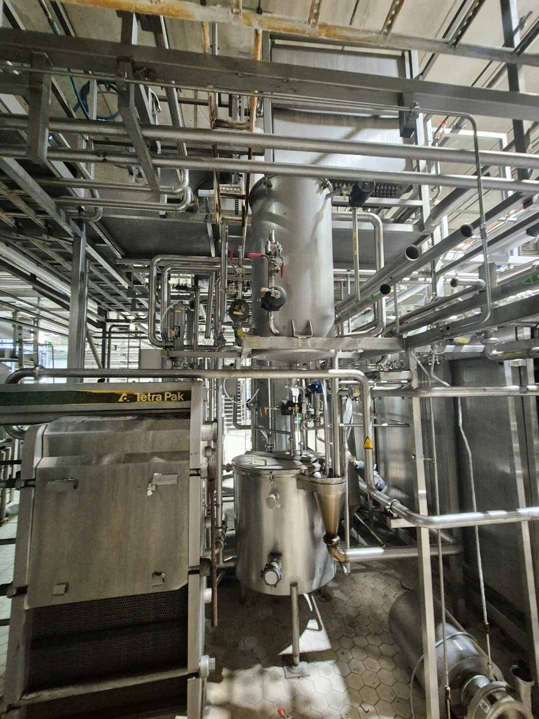 Volledige UHT-eenheid met indirect verwarmingssysteem. Indirect via buisvormige warmtewisselaar Alfa Laval Steritube B13 (Multitube). Eiwitstabilisator bij 95°C - 60 seconden en duurverhitter bij 137°C voor 2/4 seconden. Uitgang bij 25°C of via 1 sectie plaatkoeler Alfa Laval C8 voor ESL-melk 4°C uit. Met balanstank, product centrifugaalpomp, waterpompen, product- en stoomkleppen en leidingen. Stroomopwaarts geplaatst een niet-aseptische 2-traps homogenisator Tetra Pak ALH 30. 3 zuigers, zuigerdiameter: 63 mm met keramische coating, 200 bar. Huidige motorvermogen 90 kW. Inclusief een dubbelwandige koelbare afvalwatertank ETA van 2000 liter. Siemens ET200M remote control box en schakelkast met Danfoss FC302 (frequentieregelaars van 4kW & 75kW), PI&D en documentatie beschikbaar.