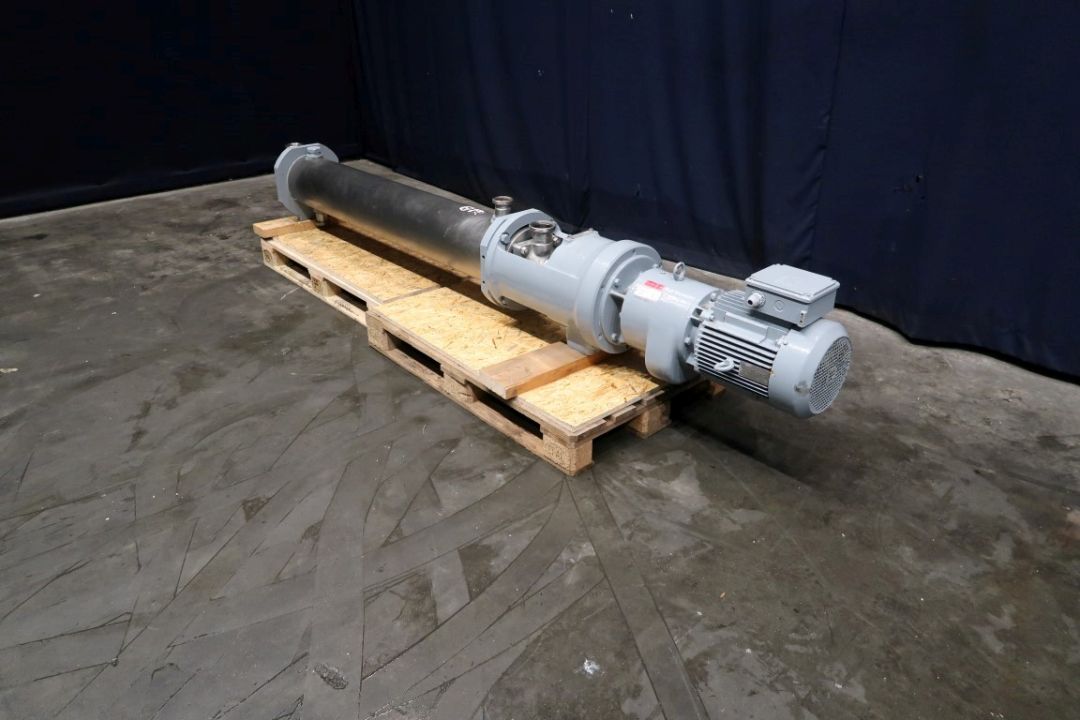 Sraped Surface heatexchanger with 1 product cylinder, in stainless steel, tube diameter: 165 mm, length 1,830 mm. Rotor with 4 scrapers. Surface per tube 0,84 m² and volume per tube 40 ltr. Pressure: 150 psi (10 bar). Temperature: 400 °F (200 °C). Drive motor: 10 kW. Previous used for heating/cooling of food products (sauces/concentrate). Total dimensions 300 x 50 x 45 cm. This SSHE was originally mounted on top of STN14966.