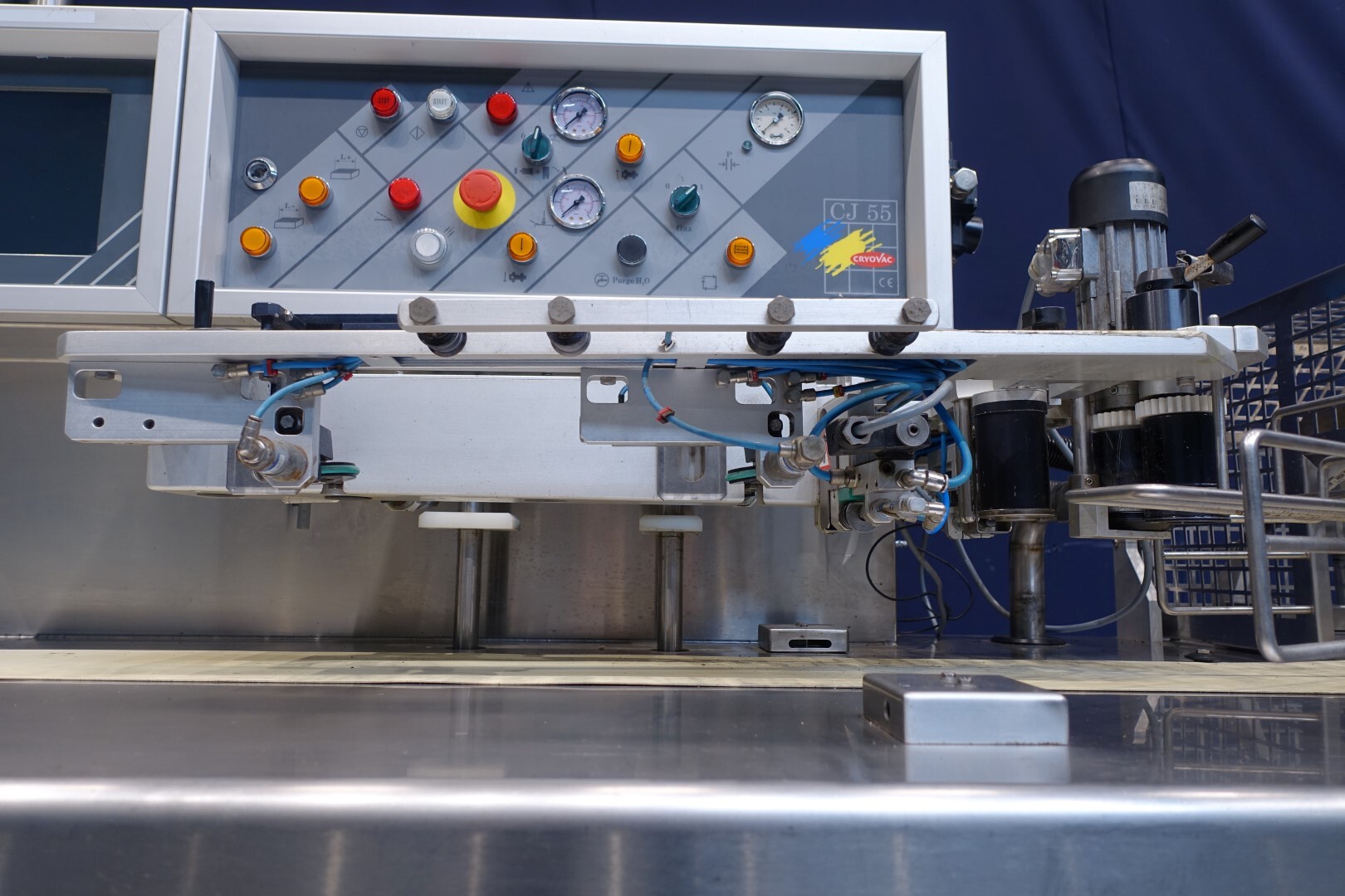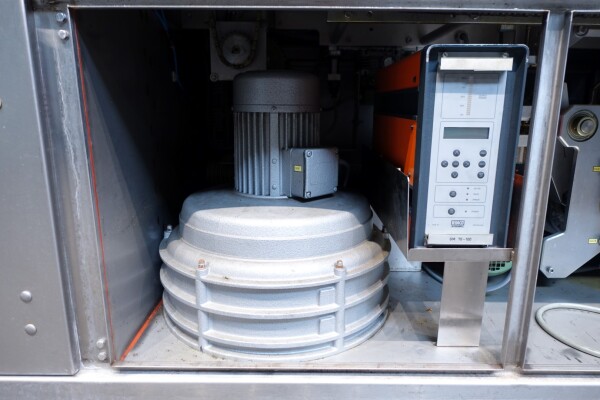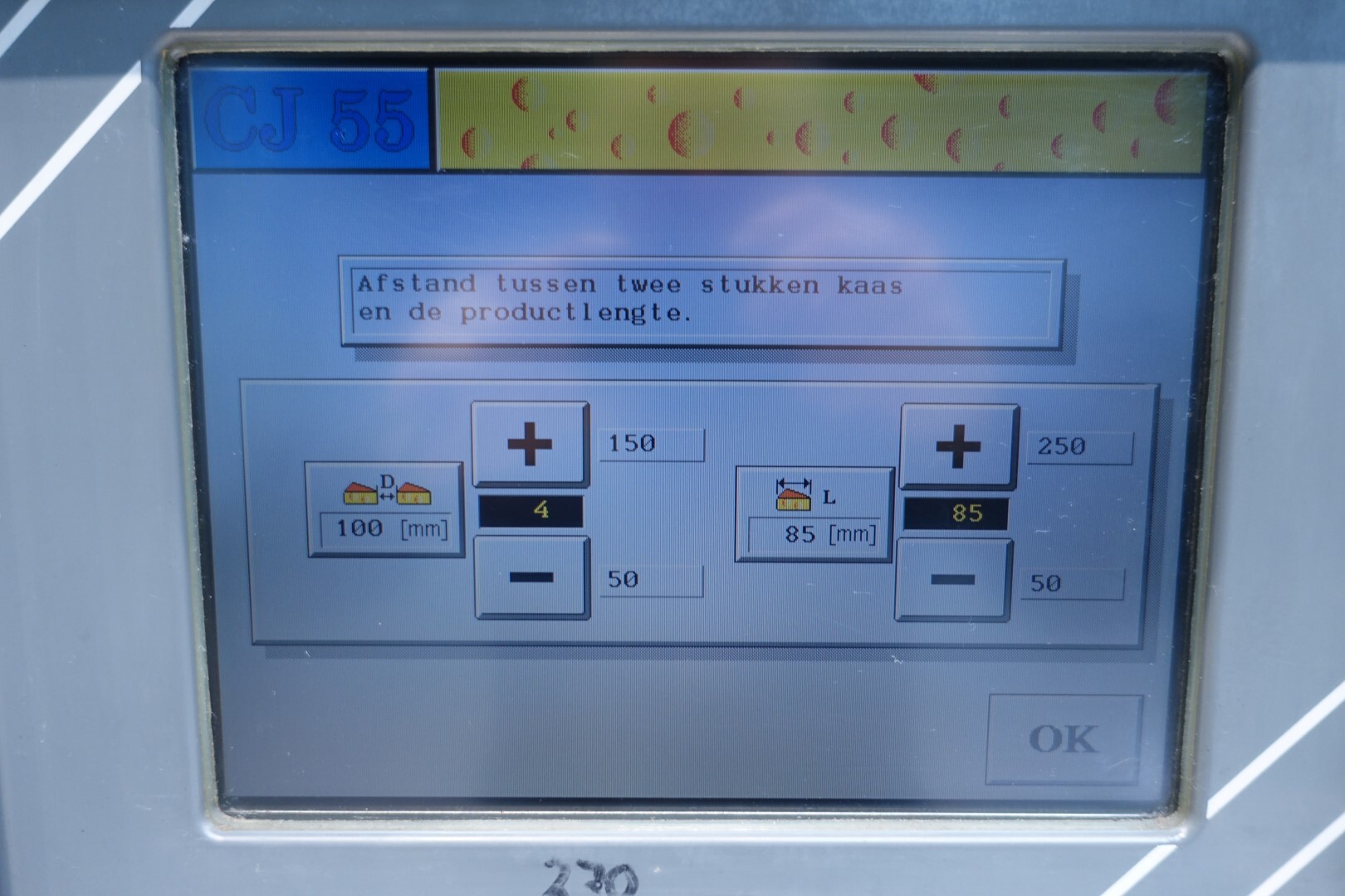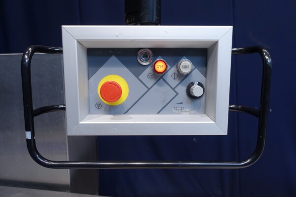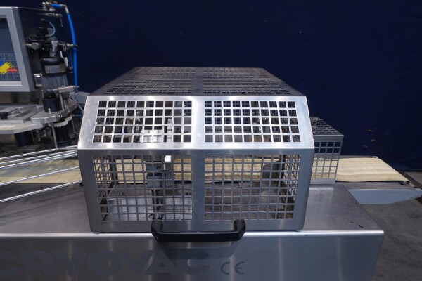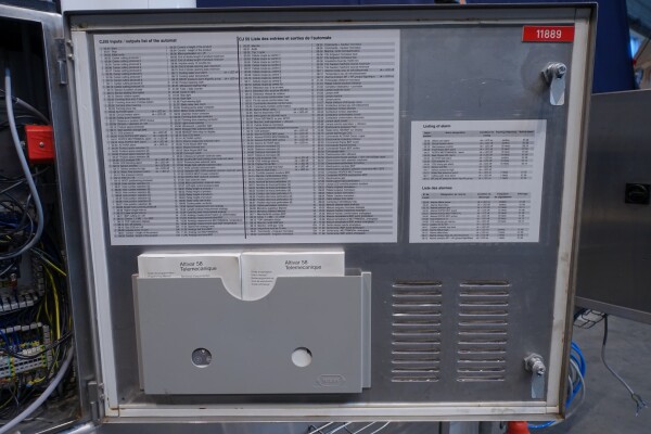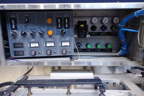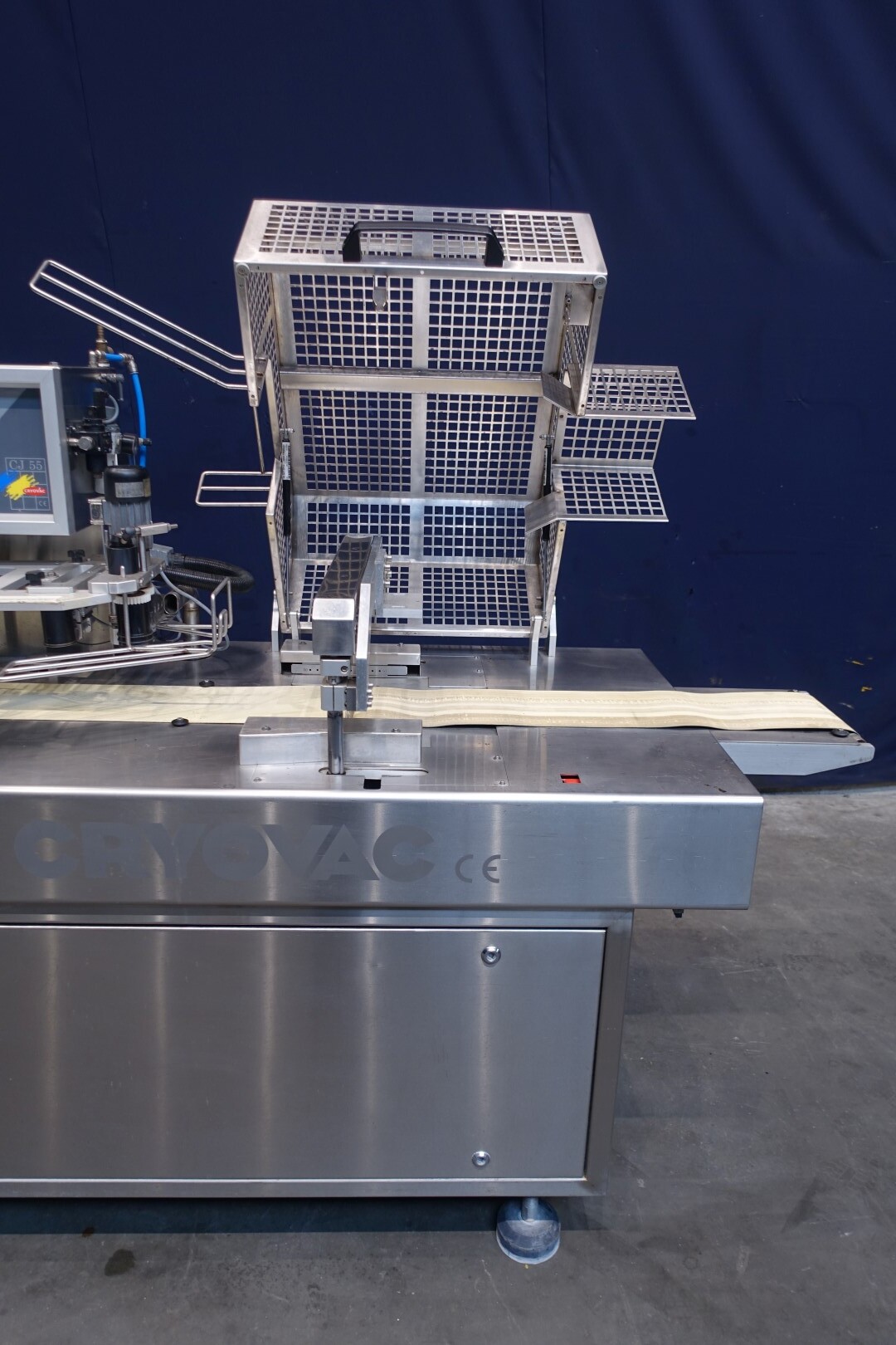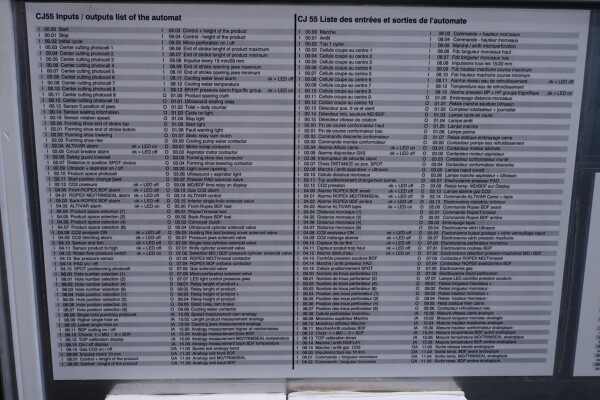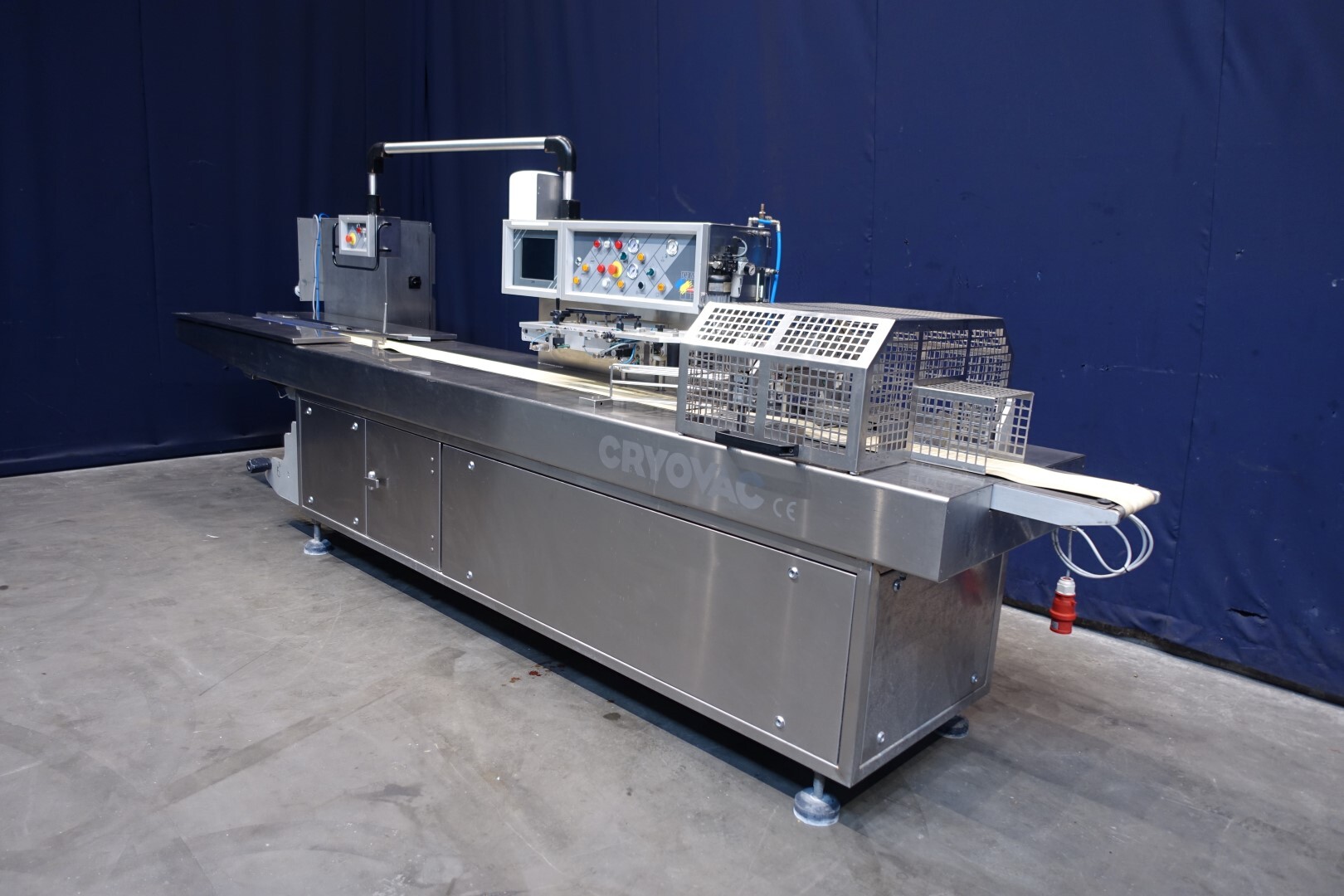 Horizontale Flow Wrapping machine. Productafmetingen: min. 50-150 mm tussen de porties en 20-250 mm lengte van de porties. Aan- en afvoerband. De machine kan de kaas alleen of kaas op een schaaltje in een plastic folie verpakken met een conserveringsgas of met een krimpfolie die naderhand strak rond het product wordt getrokken door een heet waterbad of krimptunnel. Breedte transportband 20 cm - lengte 500 cm. Staat van de machine: goede en werkende bedieningselementen.