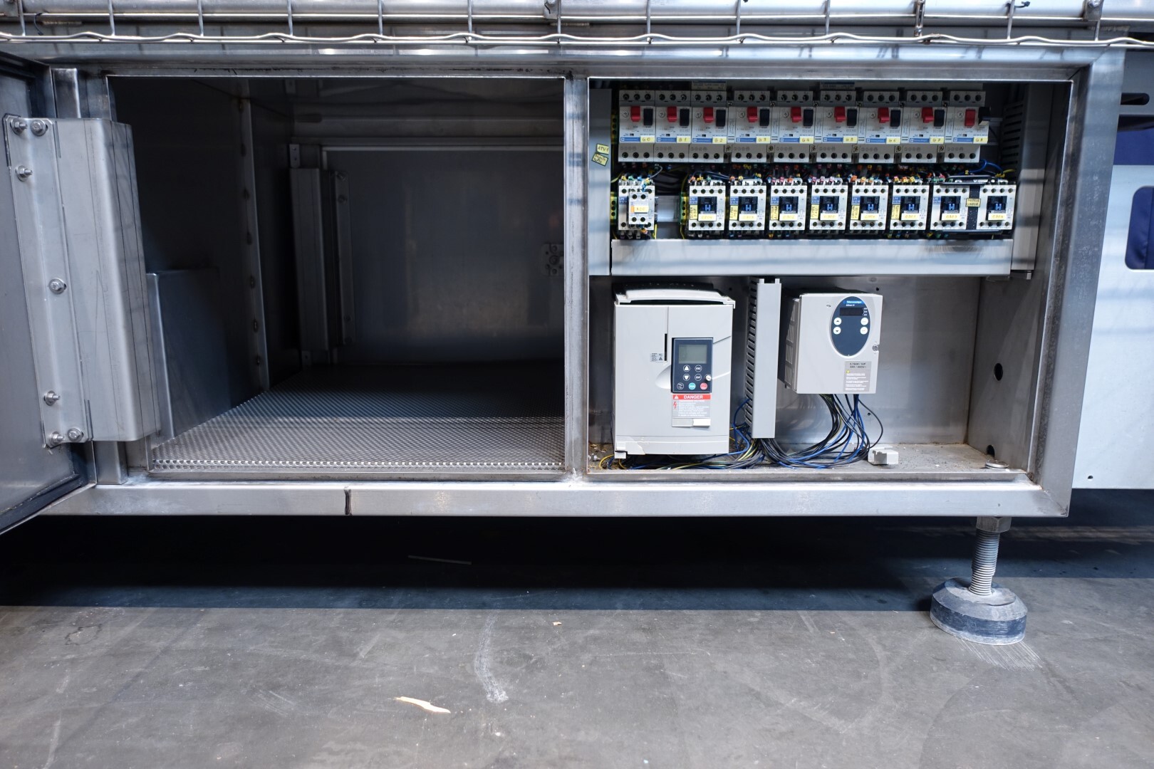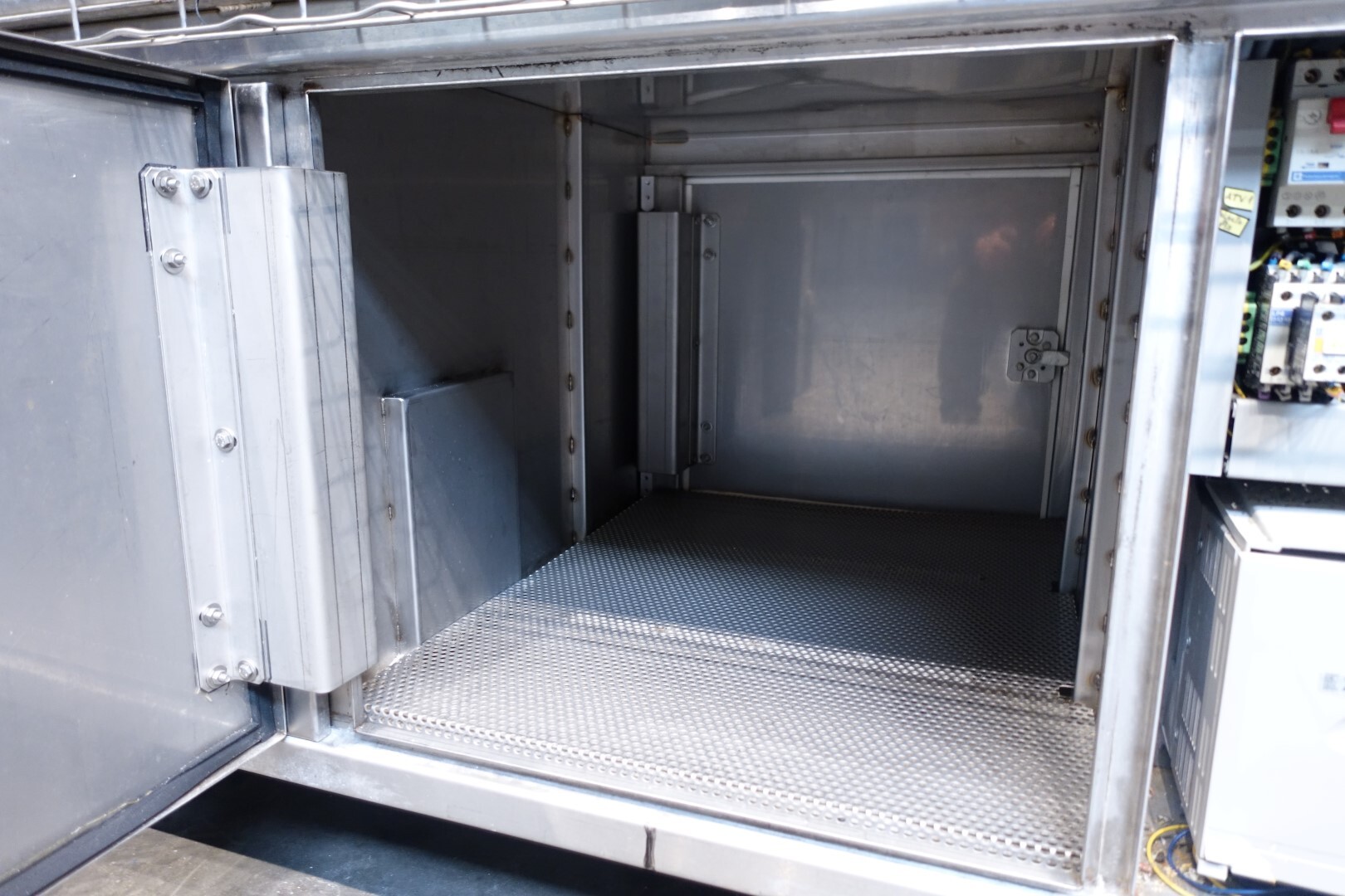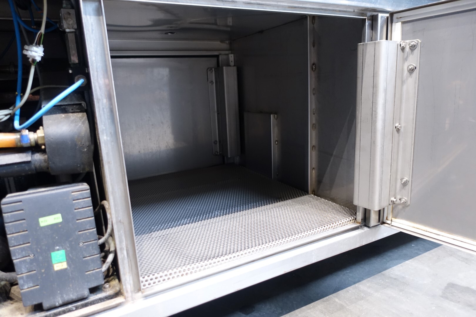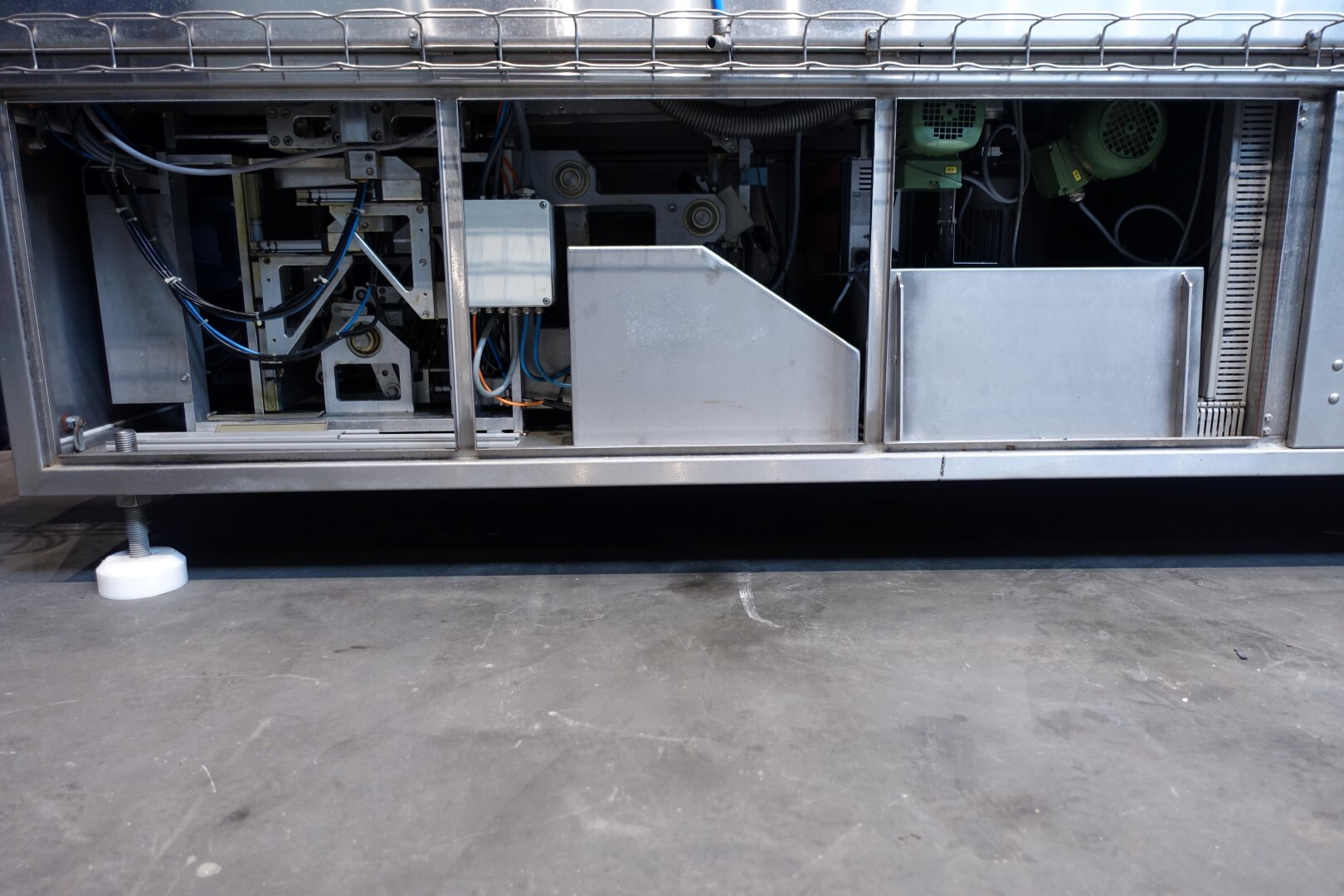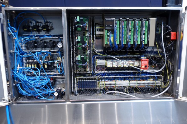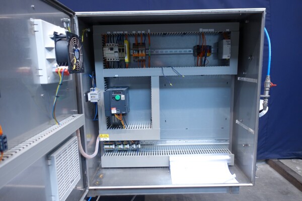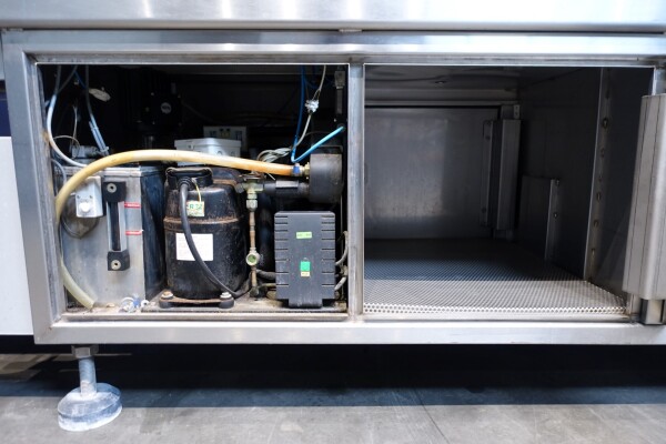 Horizontale Flow Wrapping machine. Productafmetingen: min. 50-150 mm tussen de porties en 20-250 mm lengte van de porties. Aan- en afvoerband. De machine kan de kaas alleen of kaas op een schaaltje in een plastic folie verpakken met een conserveringsgas of met een krimpfolie die naderhand strak rond het product wordt getrokken door een heet waterbad of krimptunnel. Breedte transportband 20 cm - lengte 500 cm. Staat van de machine: goede en werkende bedieningselementen.