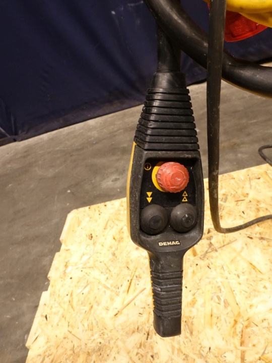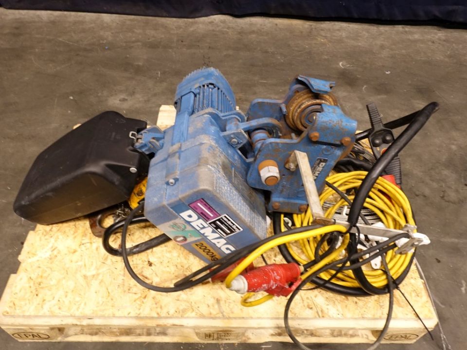 Crane previous used for lifting out the bowl of a separator. Max lifiting capacity 2.000 kg. Including push trolley. Motor power: 0,42 kW - 2,5 A - 2800 rpm.