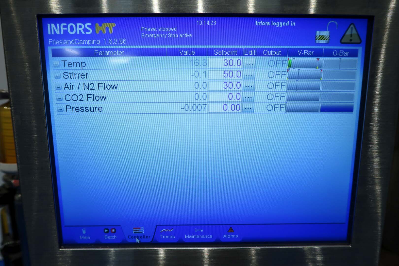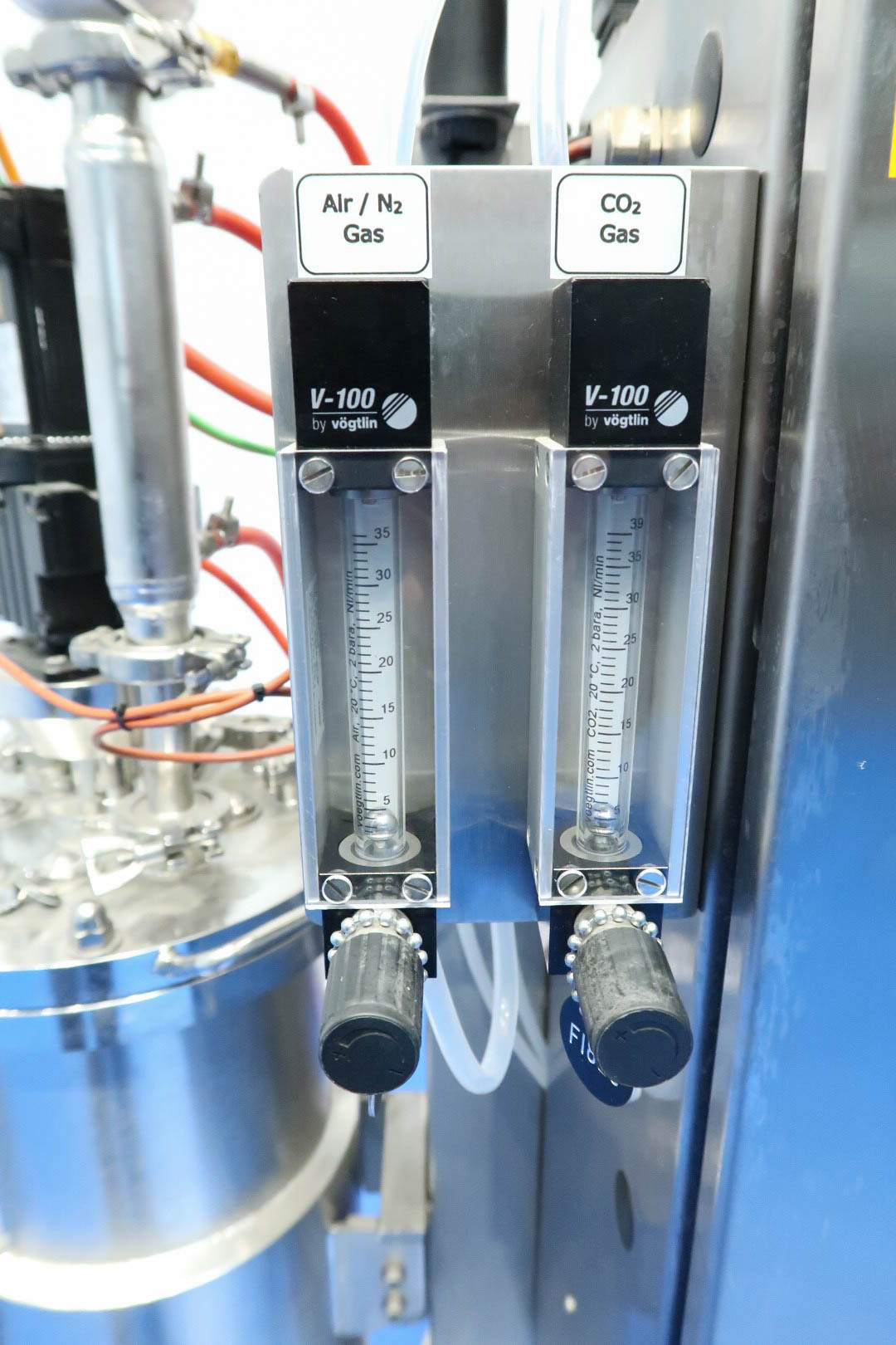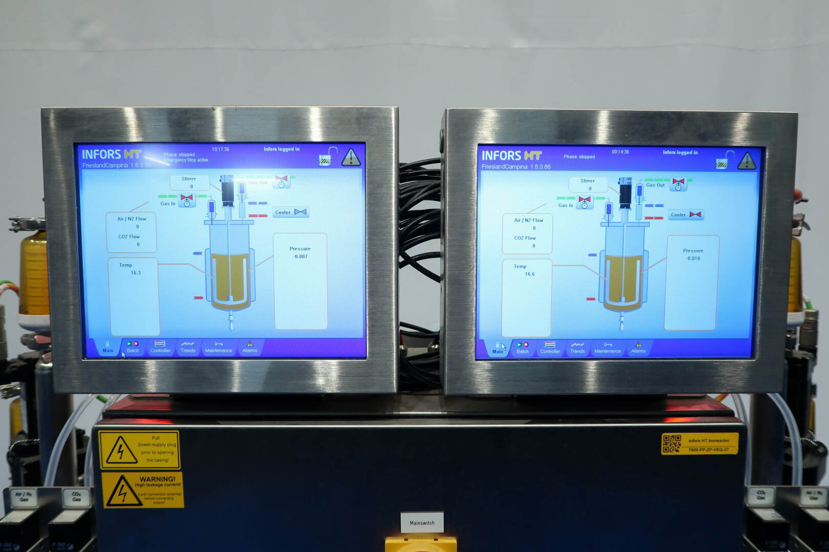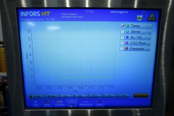 De dubbele bioreactor is eerder gebruikt voor schimmeltoepassingen en bestaat uit twee vaten met elk een werkvolume van 20 liter en een totaal volume van 30 liter per vat, inclusief een mantel van 2 liter. Beide vaten zijn vervaardigd uit hoogwaardig roestvrij staal (SS 316 / 1.4404 en 304L / 1.4307) en zijn uitgerust met een uitgebreide reeks systemen en sensoren, waaronder een lucht/N₂-gassysteem, een CO₂-gassysteem, temperatuursensoren in zowel het vat als de mantel, en een druksensor in het deksel. Elk vat beschikt over een ovaal kijkglas, een interne lamp en een U-vormige roerder aangedreven door een frequentiegeregelde servomotor. Het systeem omvat tevens twee Tool-Temp AG TT-133 waterbad-voorverwarminstallaties met een vermogen van 13,9 kW per stuk. De bioreactoren worden bediend en bewaakt via Siemens/Infors besturingssystemen met twee HMI-touchscreens.
