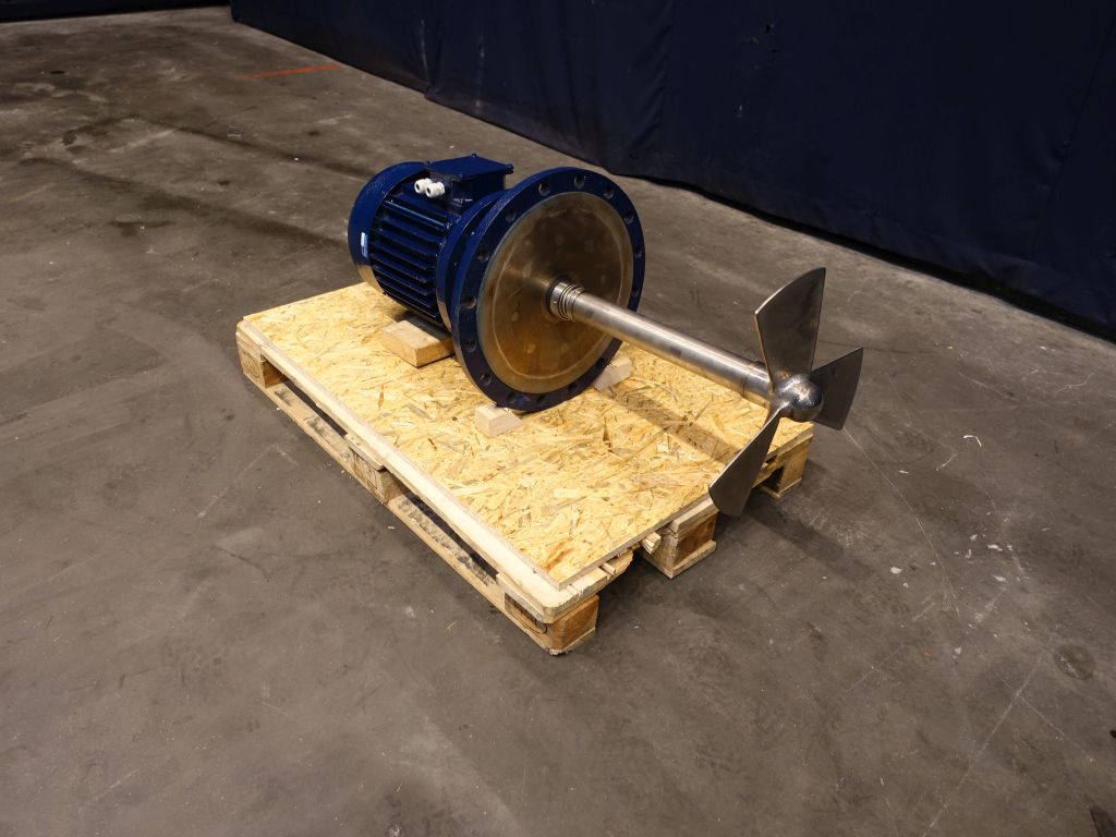 Propellor agitator, Motor 5,5 kW - 870 rpm, shaft length: 60 cm 1 propellor on the shaft, propellor diameter: 60 cm, 3 blades. Flange for mounting on a tank.