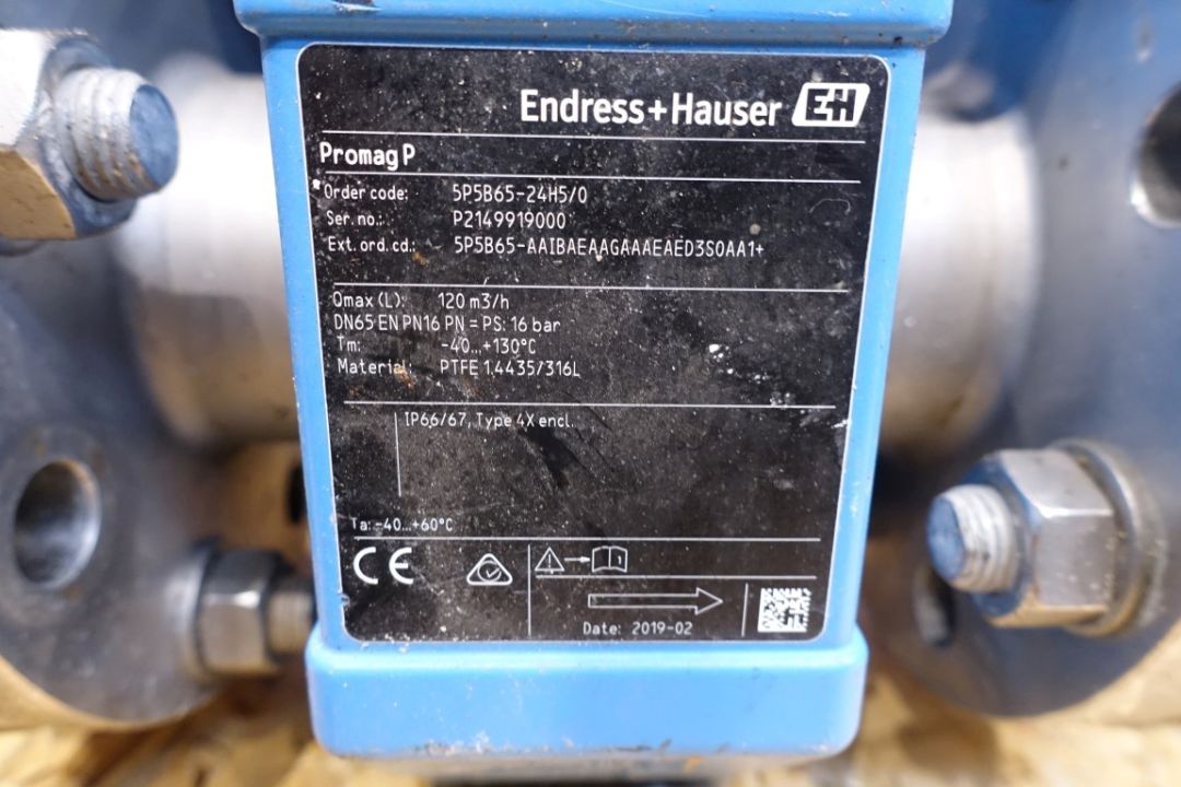 Magnetic flow transmitter. Connections: DN65/DN65, Flange. Electronic display. Endress & Hauser Promag 500.