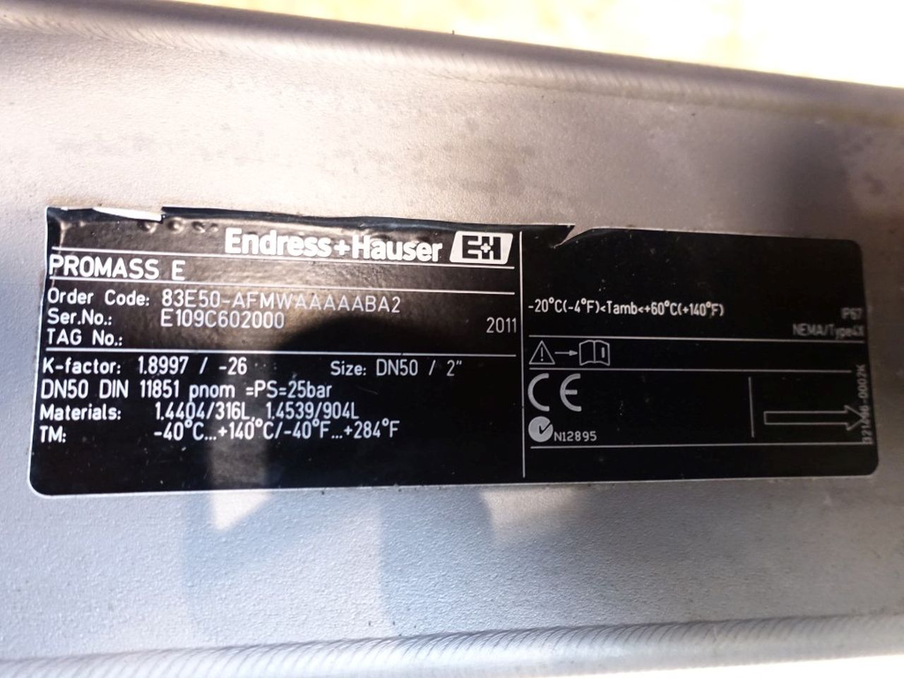 Mass flow transmitter. Connections: DN50, DIN. Electronic head with display.
